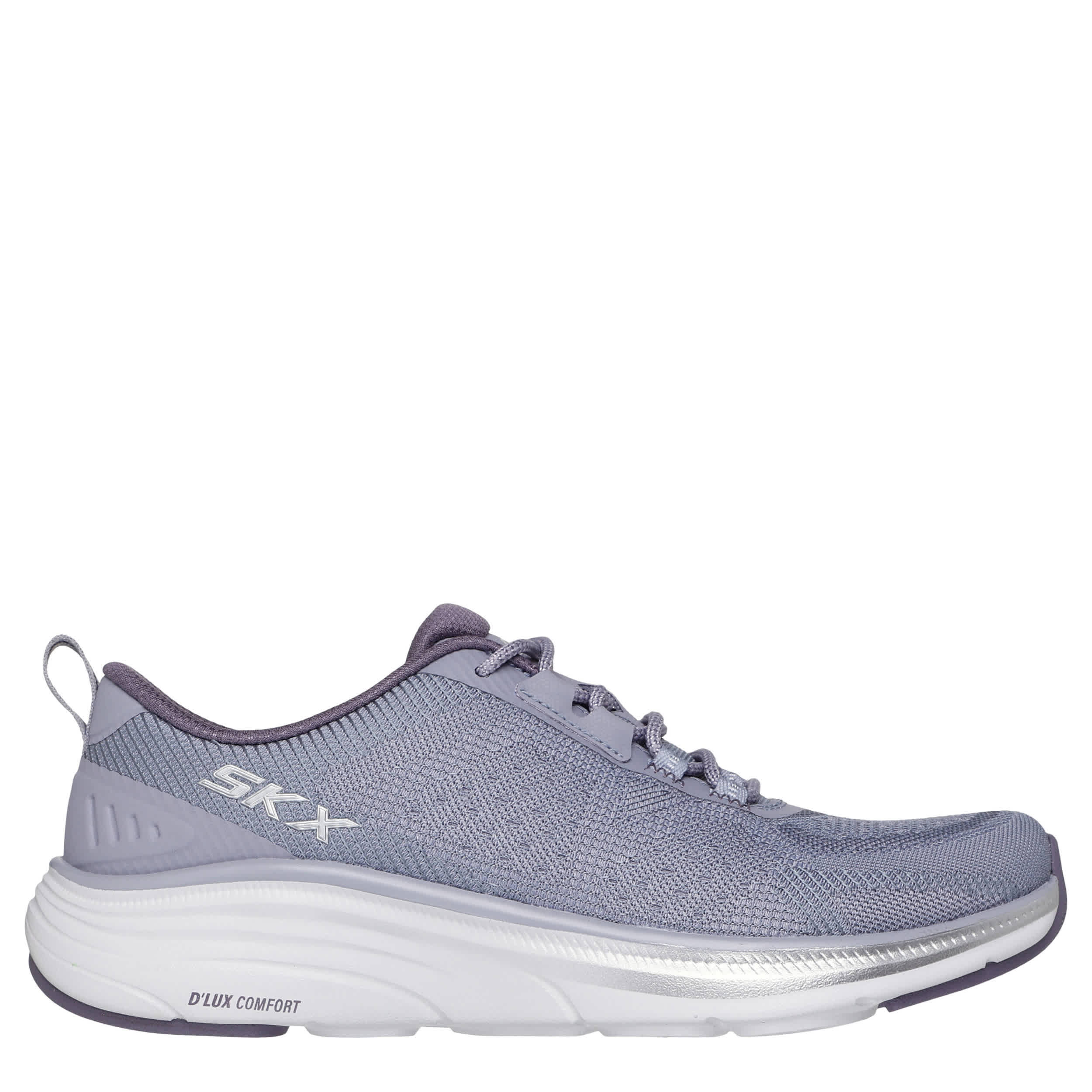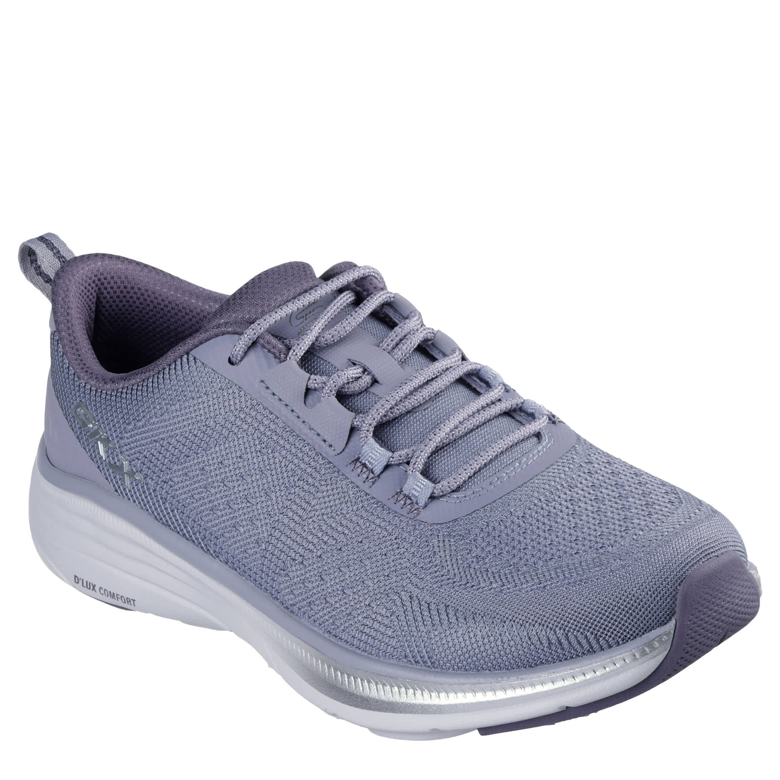 Slow down in the Relaxed Fit®: D'Lux Comfort 2.0 - Highkey slip-on sneaker from Skechers. Featuring an engineered mesh upper with a metallic trim, this vegan sneaker offers a bit more room with its sporty comfort. The Skechers Air-Cooled Memory Foam® takes care of the rest, while the flexible outsole delivers traction to move well.