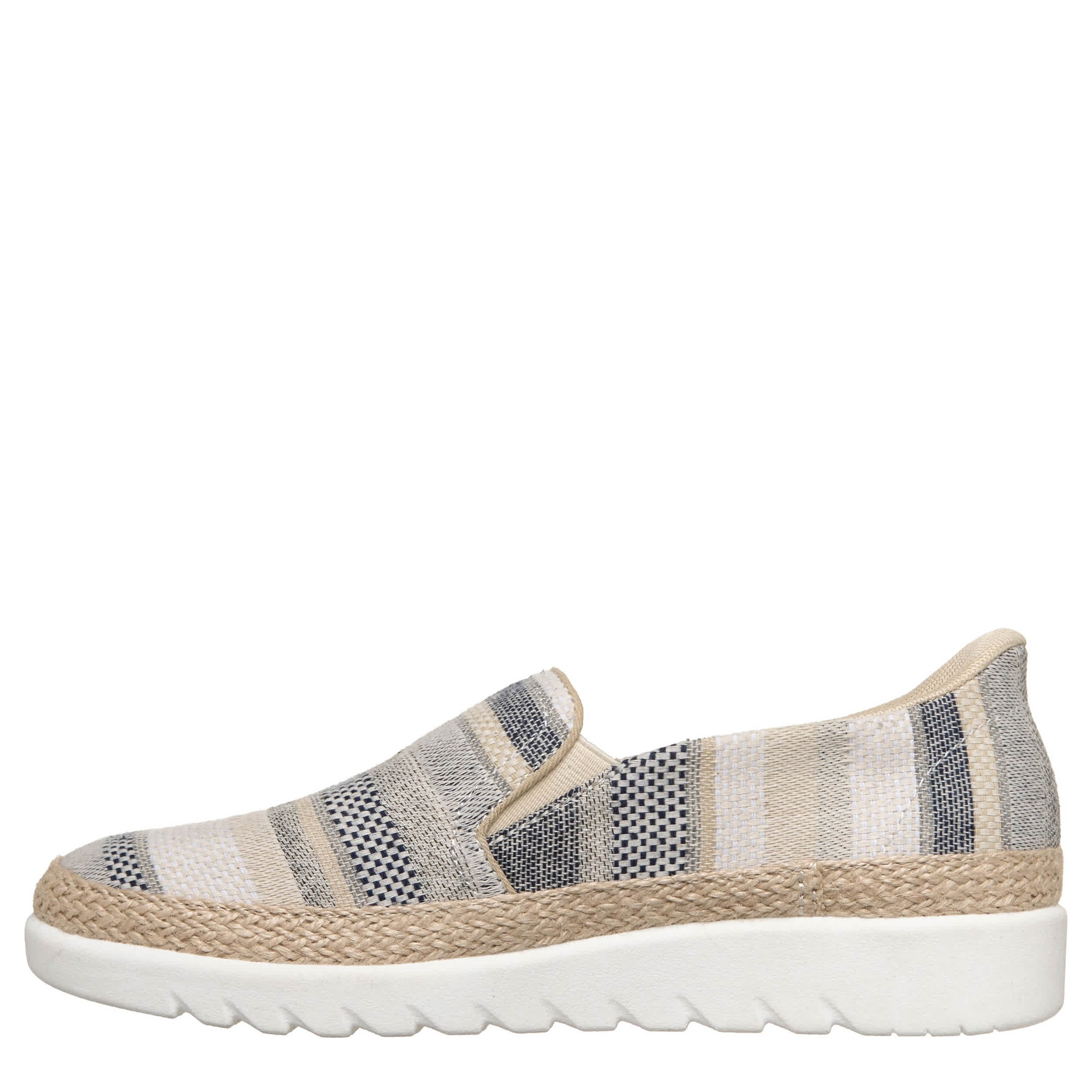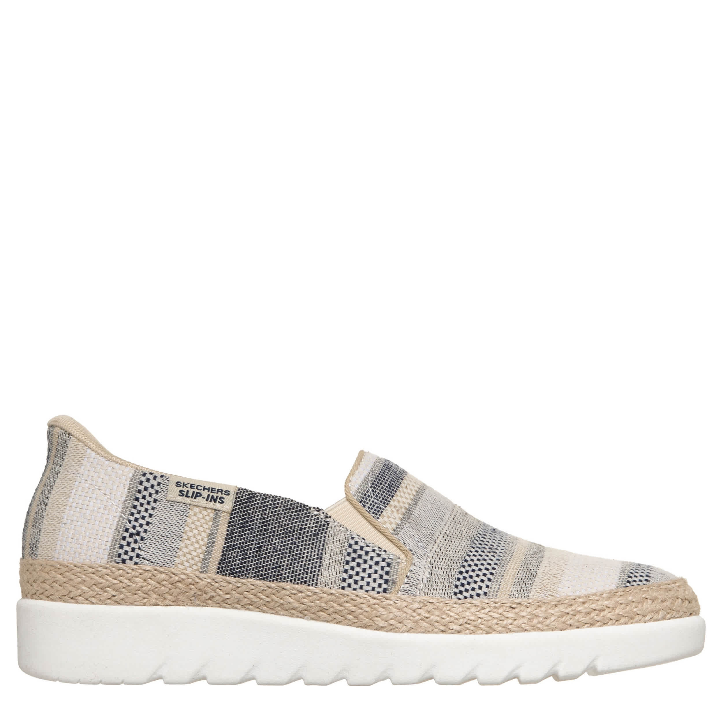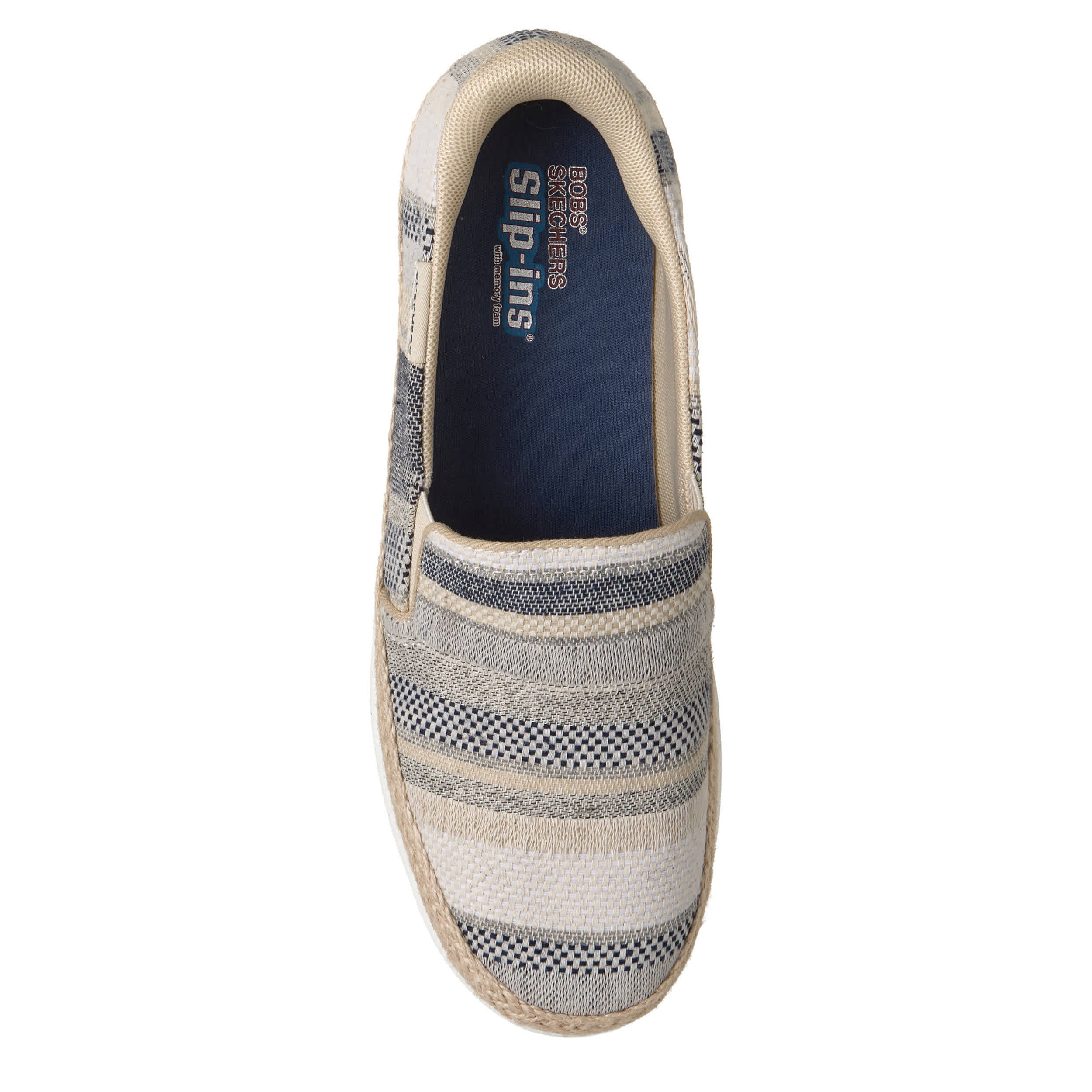 Comfy boho style in the Skechers Hands-Free Slip-ins®: BOBS® from Skechers® Flexpadrille HI - Chic Chaser slip-on sneaker. With a striped upper featuring the Heel Pillow® for a secure fit, this vegan shoe is a great addition to your everyday style with a shock-absorbing midsole. The Skechers Memory Foam™ insole cushions every step while the flexible outsole adds flexible traction to your travels.