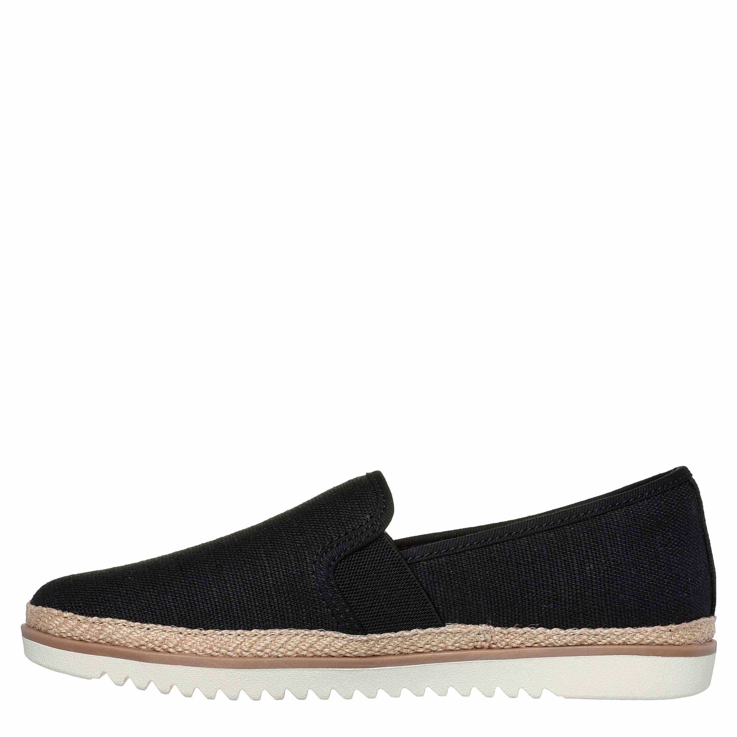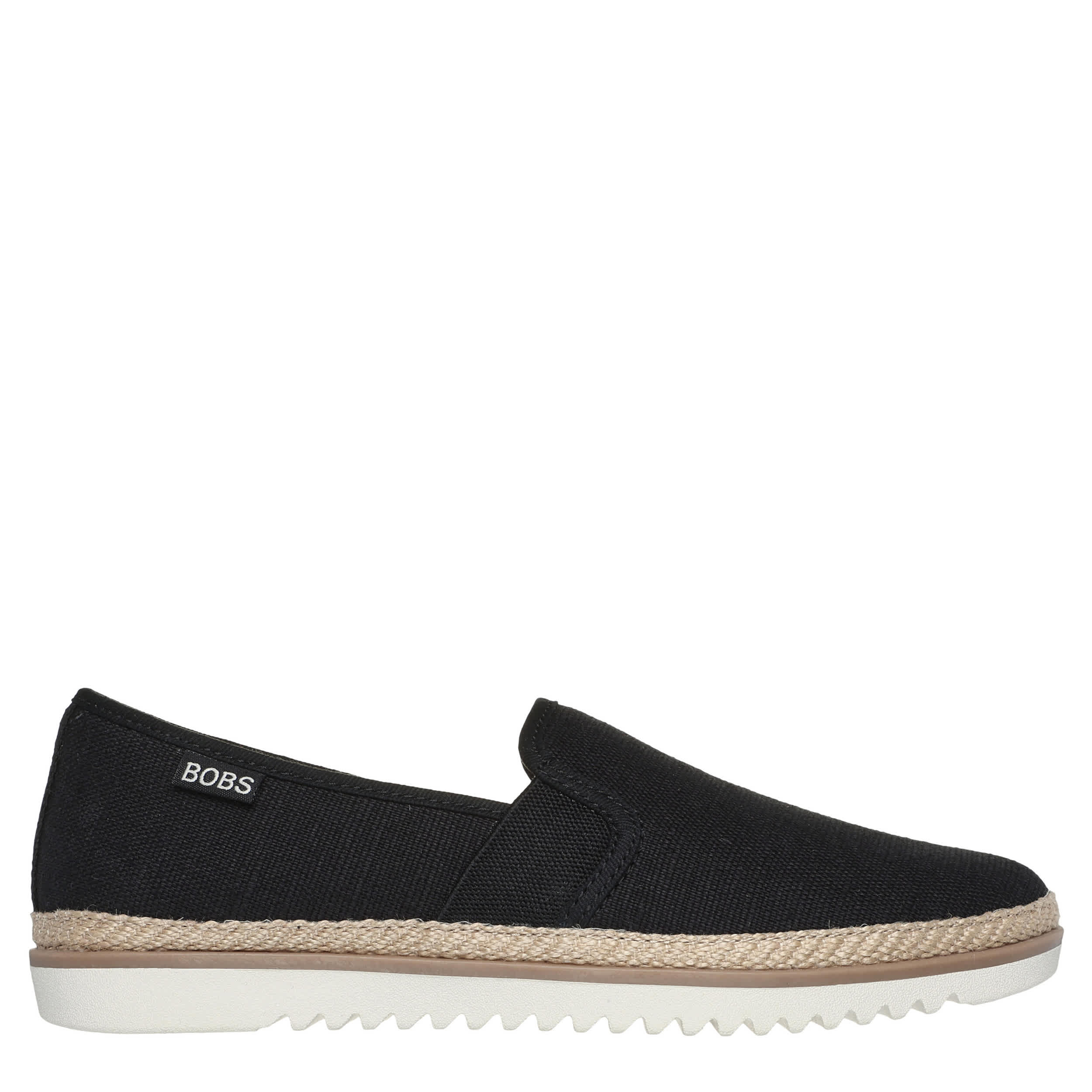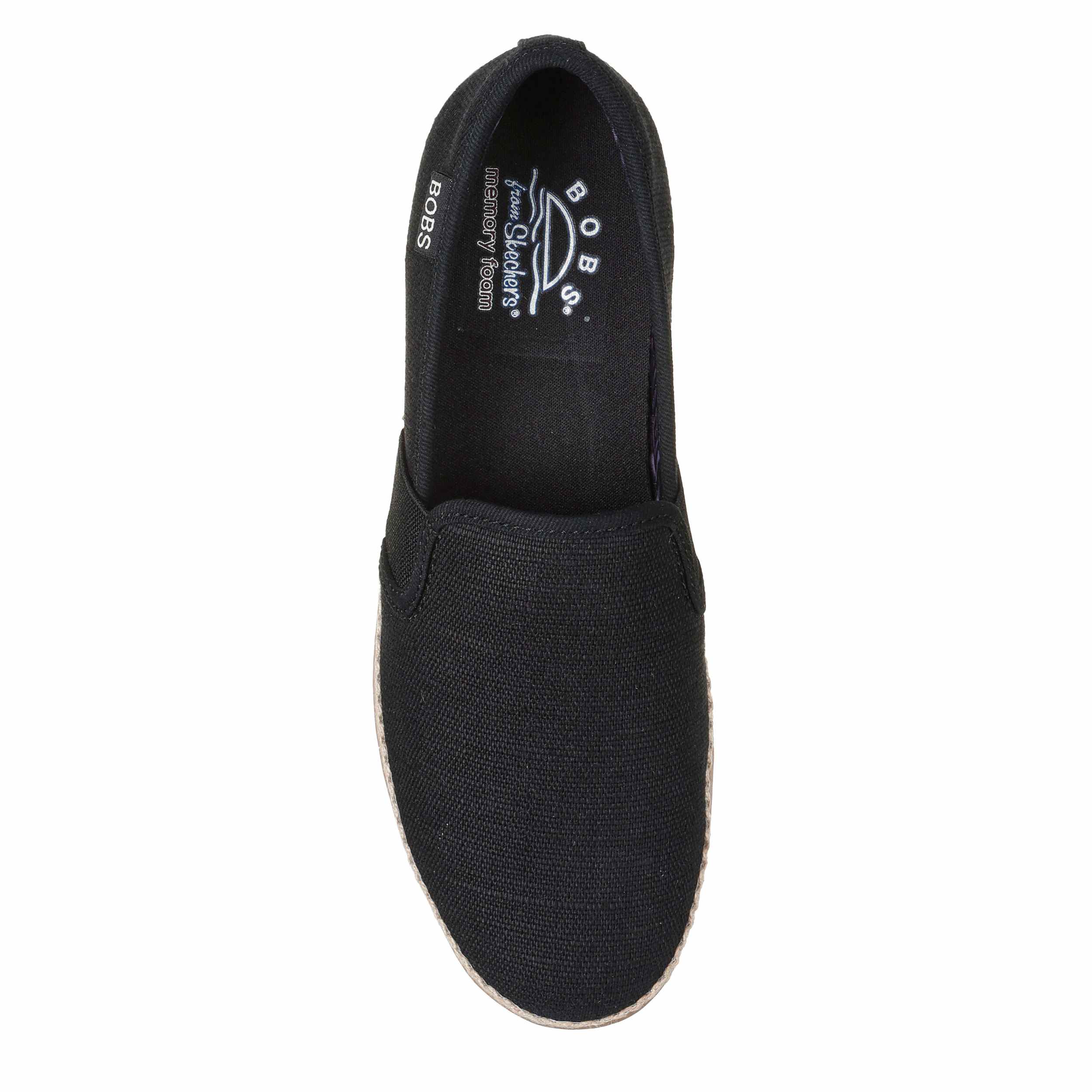 Sink into your time away in the Skechers BOBS Flexpadrille Lo women's slip-on sneaker. With a linen upper featuring a jute trim at the midsole, this slip-on shoe is a great addition to your everyday style with easy entry twin gore panels. The Skechers Memory Foamâ„¢ insole cushions every step while the flexible outsole adds sawtooth traction to your travels.