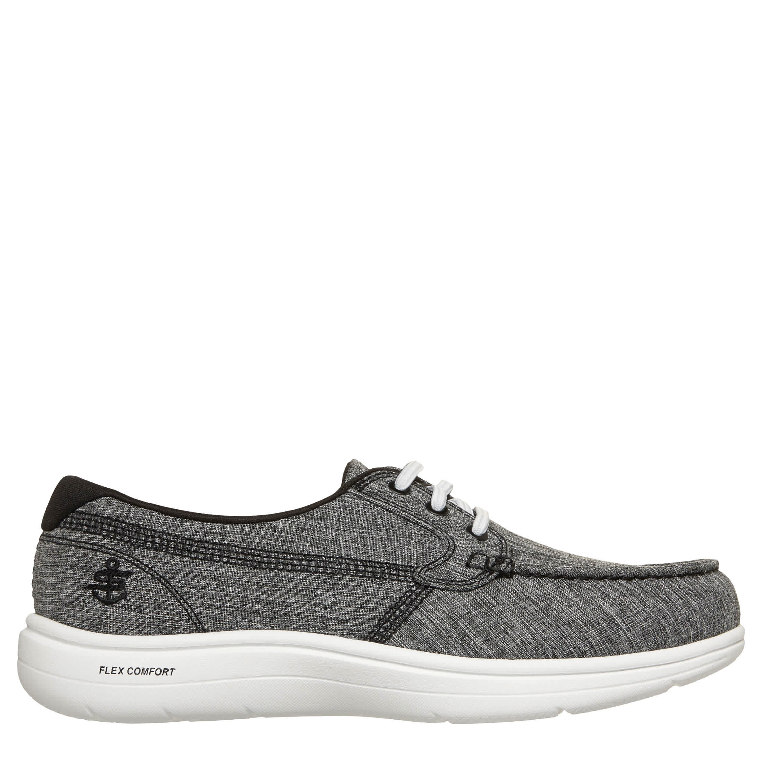 Ship away with the Skechers On-The-GO® Flex Radiant - Sirena women's boat shoe. Featuring a vegan linen upper with a Skechers anchor logo for extra flair, this style is machine washable for easy maintenance. The high-rebound Skechers Air-Cooled Goga Mat™ insole and lightweight ULTRA GO® cushioning give breezy comfort, while the outsole provides flexible traction everywhere.