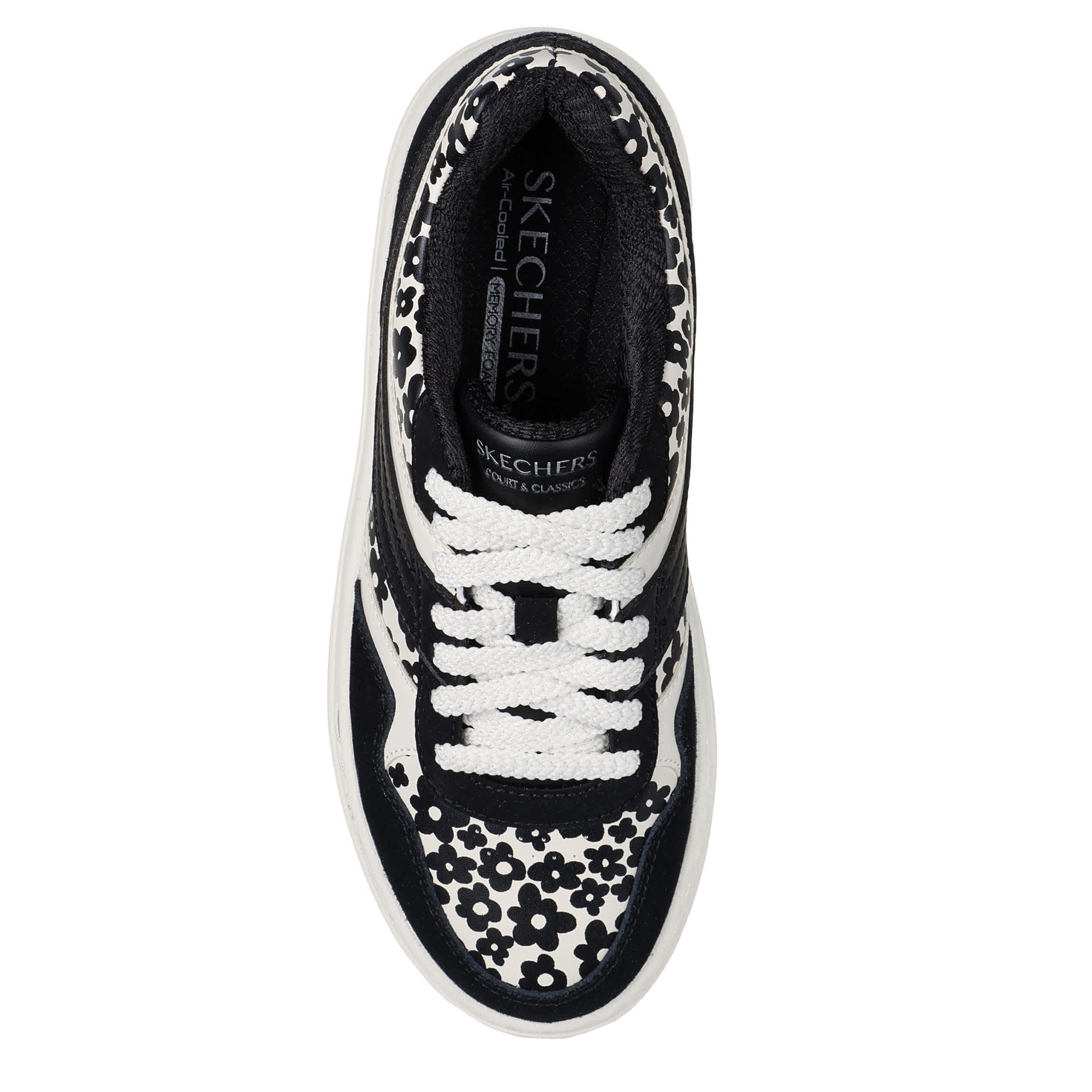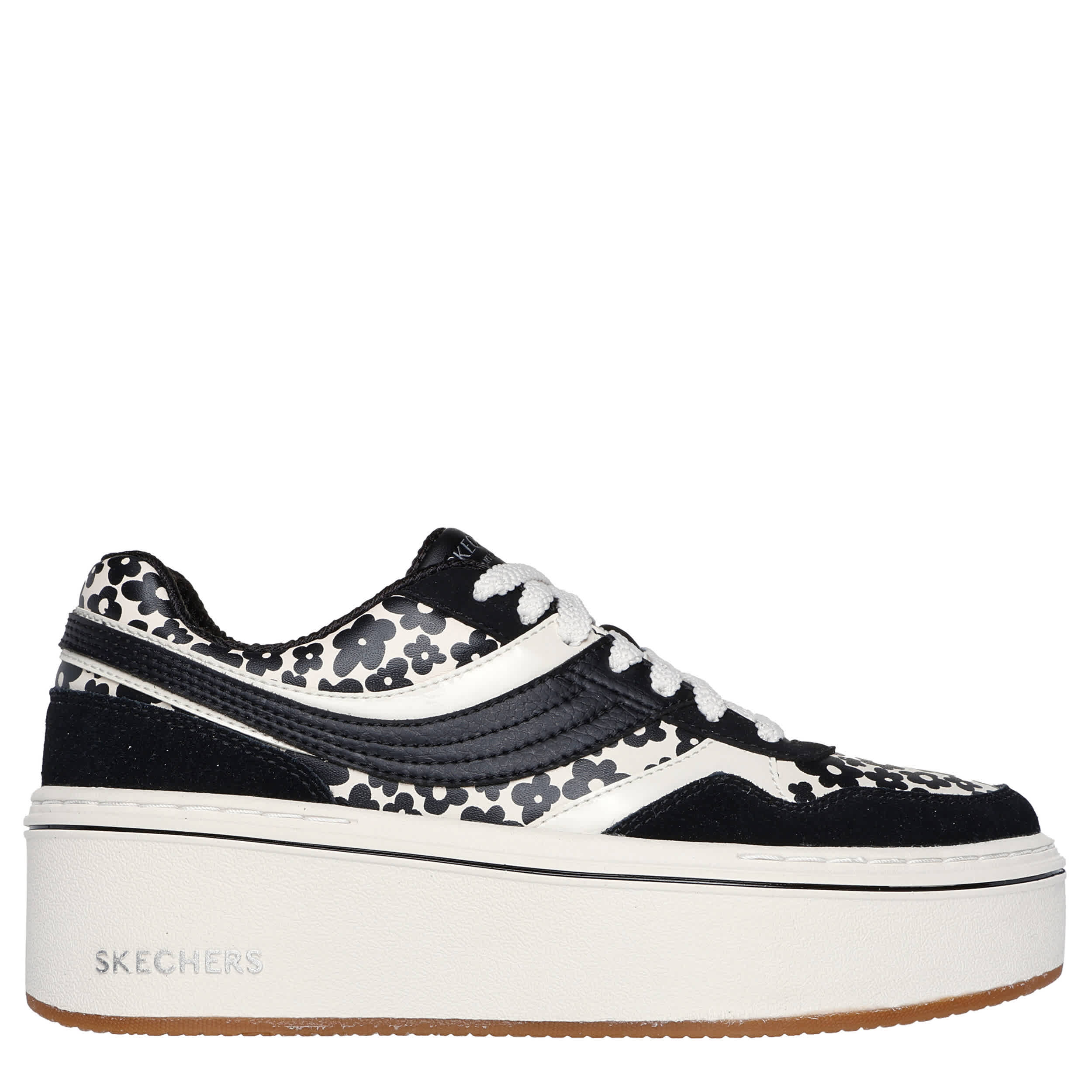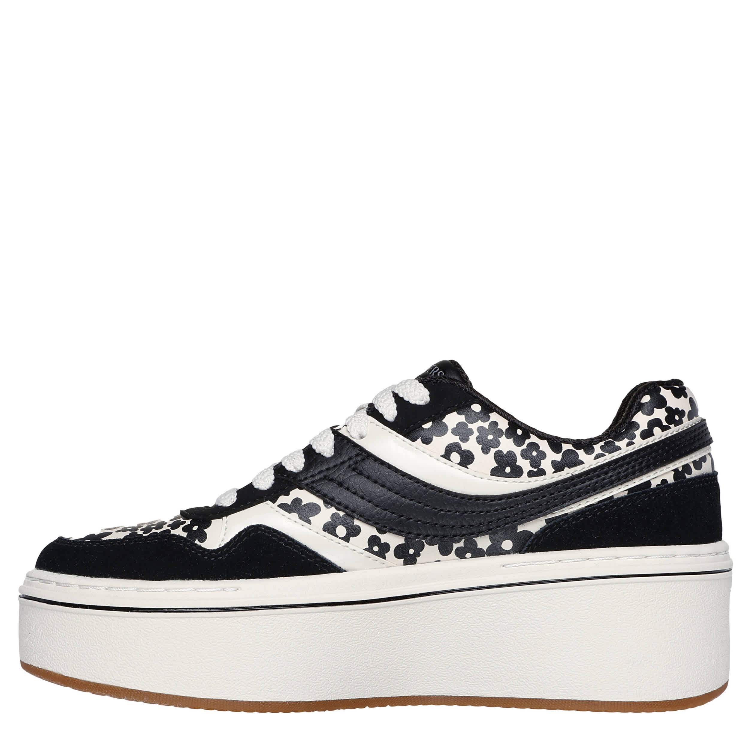 Give the panda trend a floral twist with the Paloma - Daring Daisy sneaker from Skechers. Featuring a daisy-printed faux leather upper with genuine suede overlays, this court sneaker handles fashion flexibly. The Skechers Air-Cooled Memory Foam® insole cushions every step while the platform midsole adds 2¼" worth of height.