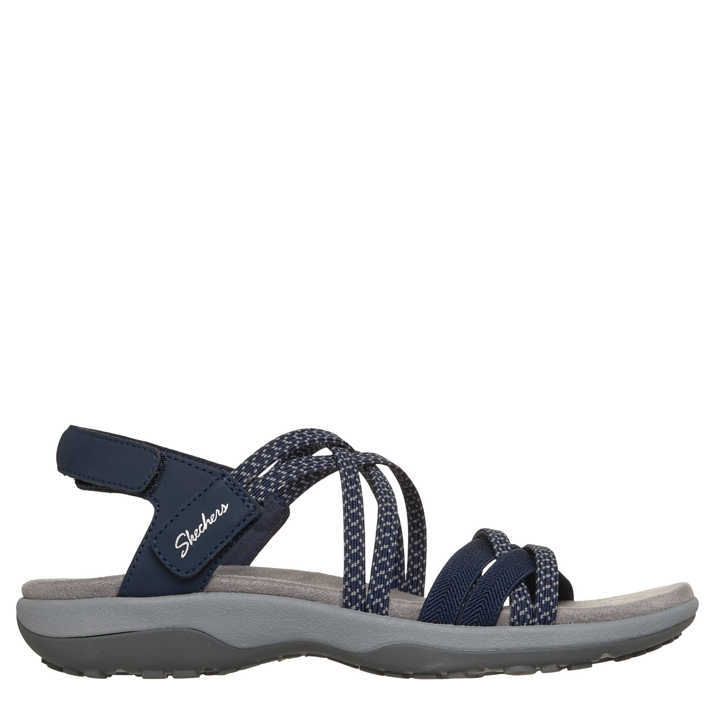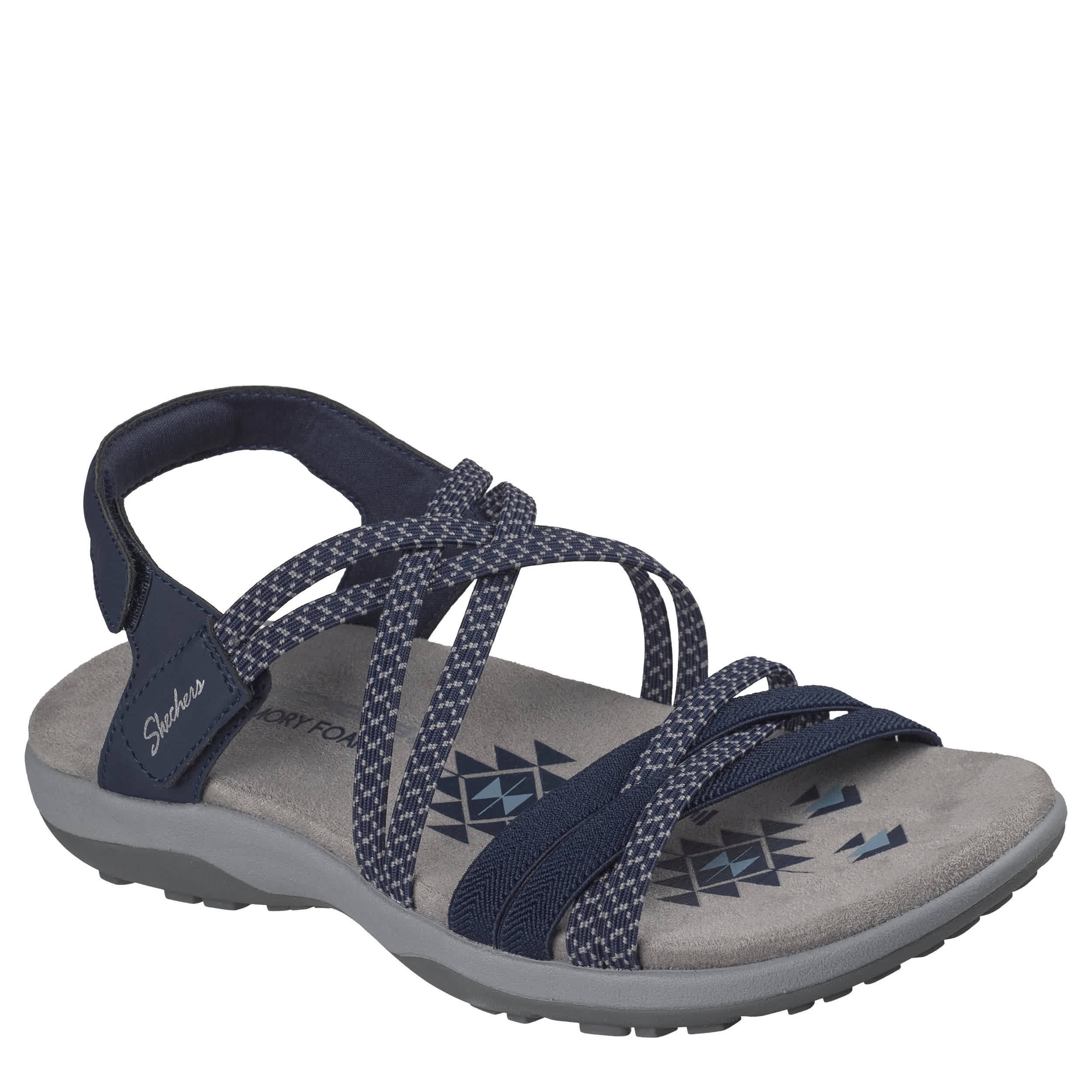 Keep the memories going in the Reggae Slim - Summer of Fun 2 women's sandal from Skechers. With a multi-strap Stretch Fit® upper featuring a crisscross design, this slingback sandal is laid-back and easy to wear. The Skechers Memory Foam™ footbed cushions every step while a flexible outsole & midsole absorb shock.