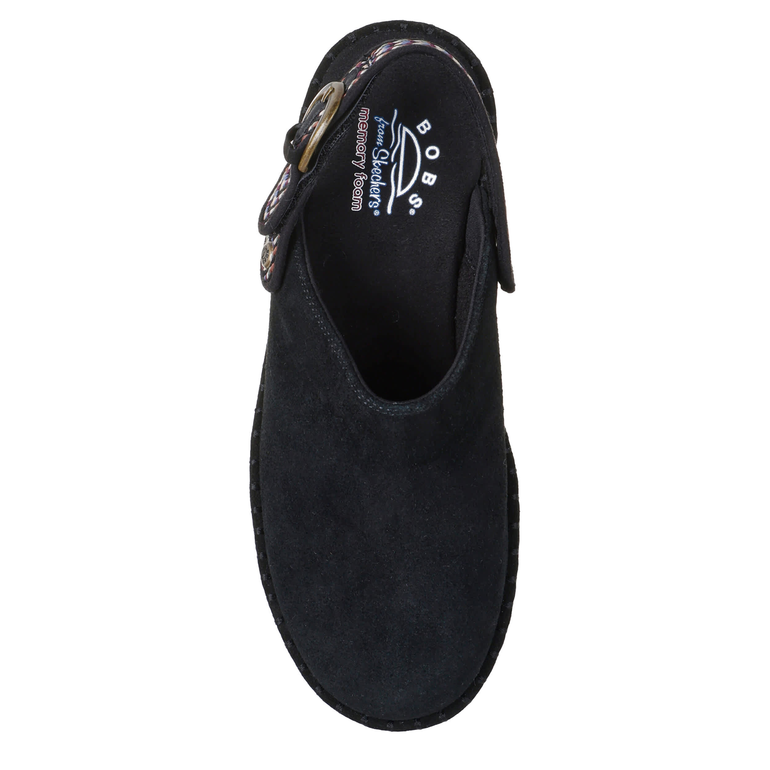 Comfort and style in the BOBS® from Skechers® Rosey Rise - Casual Cozies clog. With a suede upper featuring an adjustable woven heel strap and stitched detailing, this fashion clog fits your casual look. The Skechers Memory Foam™ cushions every step while the outsole adds flexible traction.