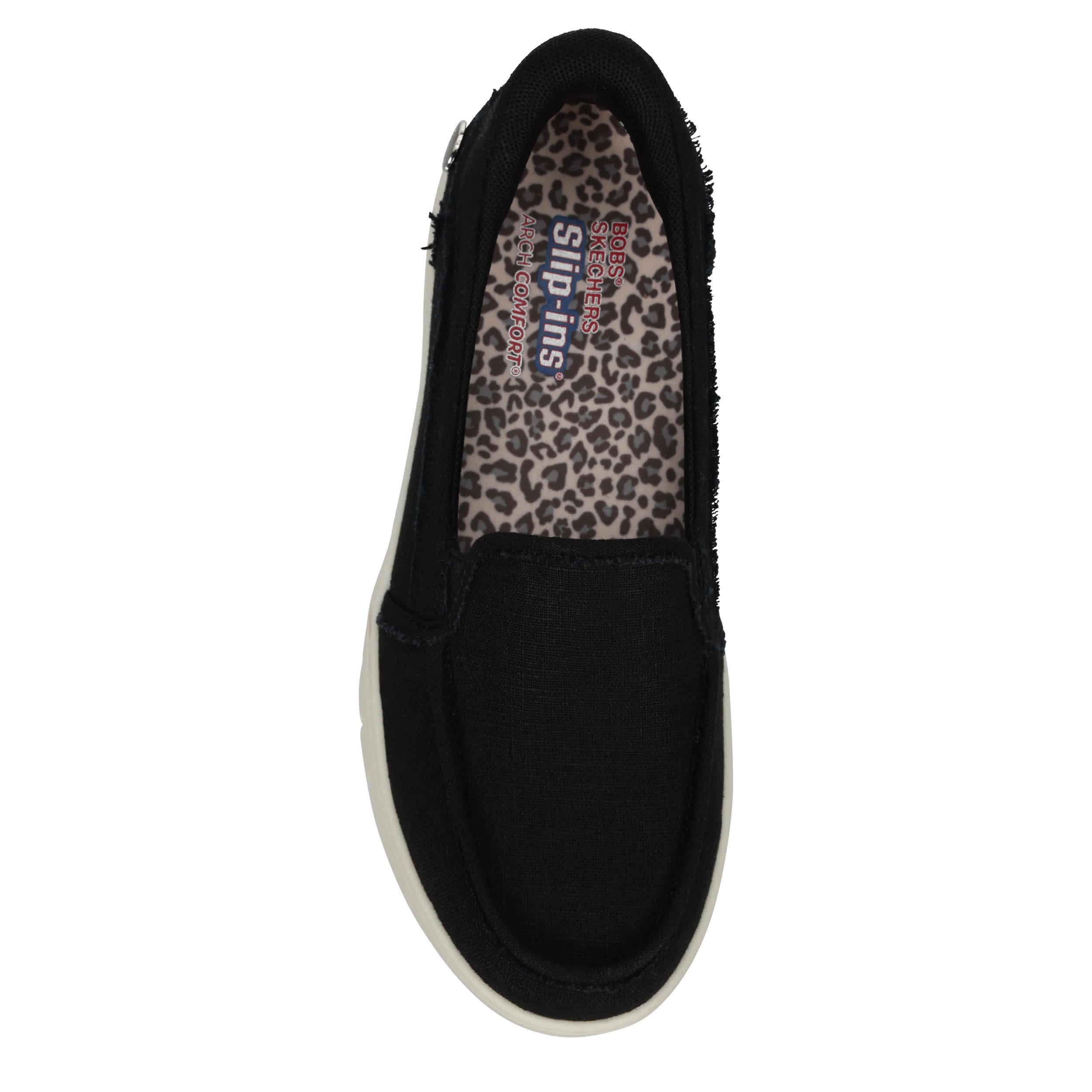 Classic style in the Skechers Hands-Free Slip-ins®: BOBS® from Skechers® Arch Comfort® Sunfest - Too Swift women's loafer. With a lightweight canvas upper and the Heel Pillow® for a secure fit, this easy-going slip-in is vegan. The removable Skechers Arch Comfort® insole offers podiatrist-certified arch support.