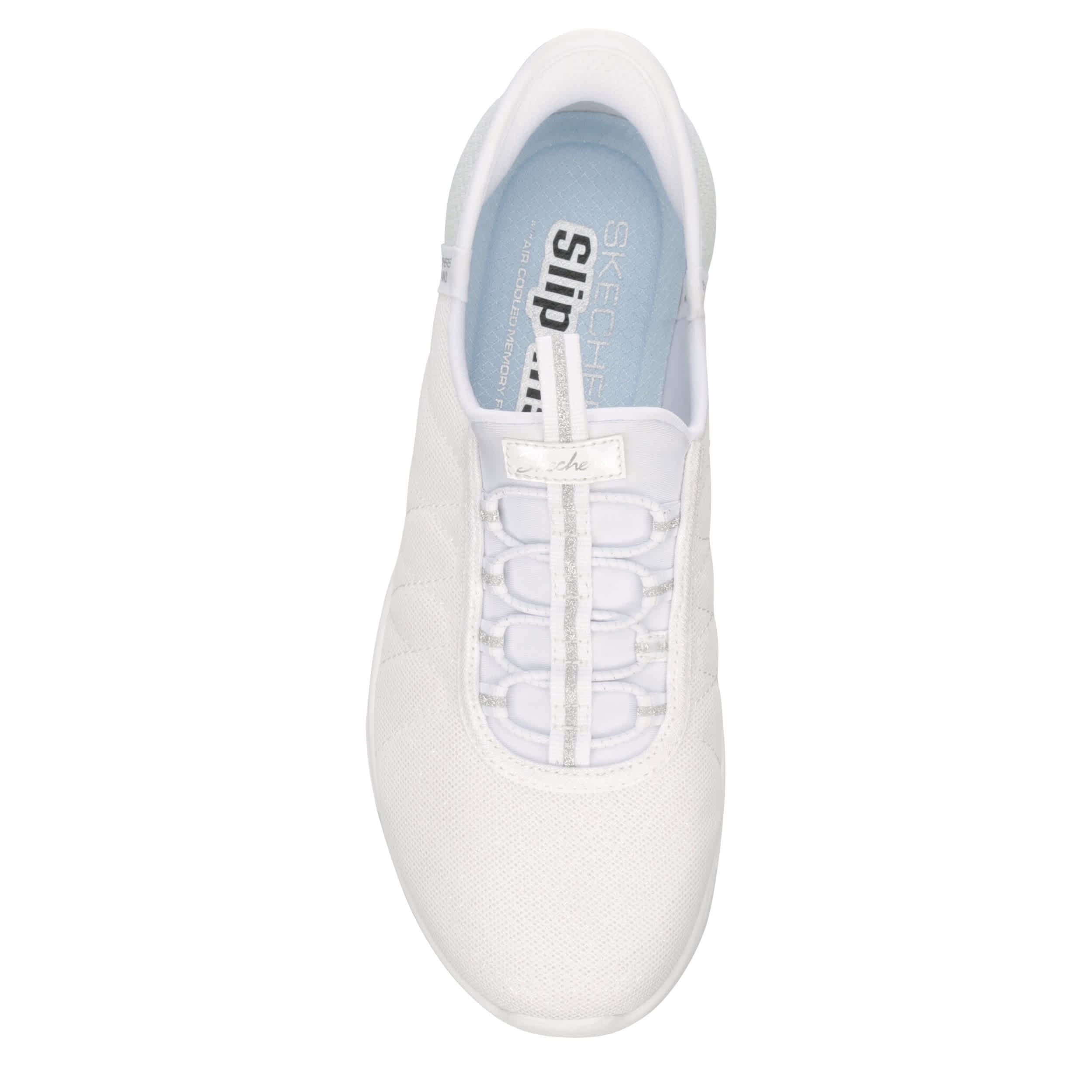 Pace yourself in the superbly comfy Slip-ins: Brilliance - Night Shift women's sneaker from Skechers. Featuring a sparkle mesh upper with the exclusive Heel Pillow™ Pillow for a secure fit, this Skechers Hands Free Slip-in® ismachine washable for easy maintenance. The Skechers Air-Cooled Memory Foam® insole cushions every step, while outsole offers flexible traction.
