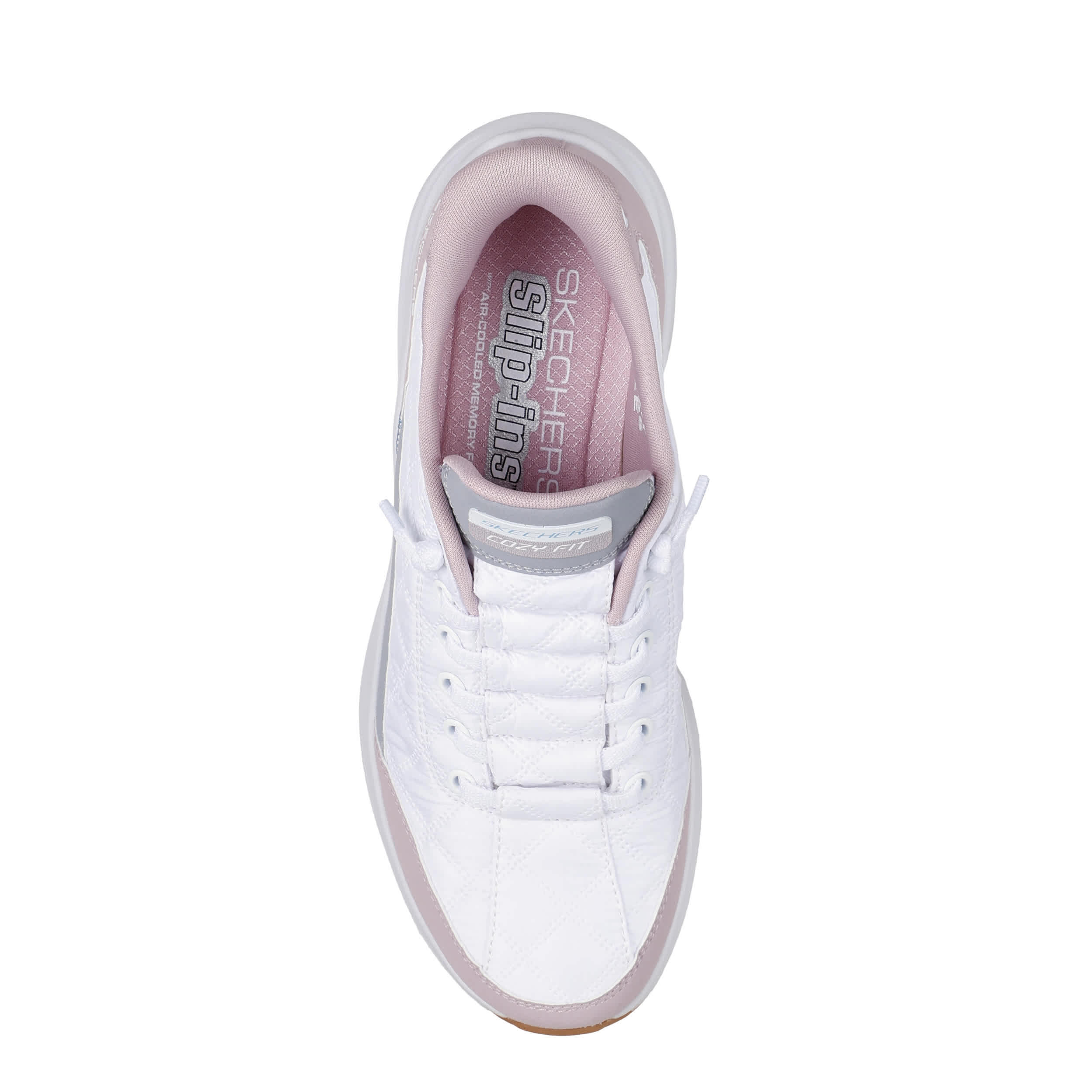 Surround yourself in comfort with the Skechers Hands Free Slip-ins®: Contour Foam™ - Cozy Fit™ training shoe. Featuring a quilted Cozy Fit™ upper with the exclusive Heel Pillow™ for a secure fit, this vegan shoe offers cool contrast with an overlay design. Cushioning with the Skechers Air-Cooled Memory Foam® is premium, while maintenance is easy because it's machine washable.