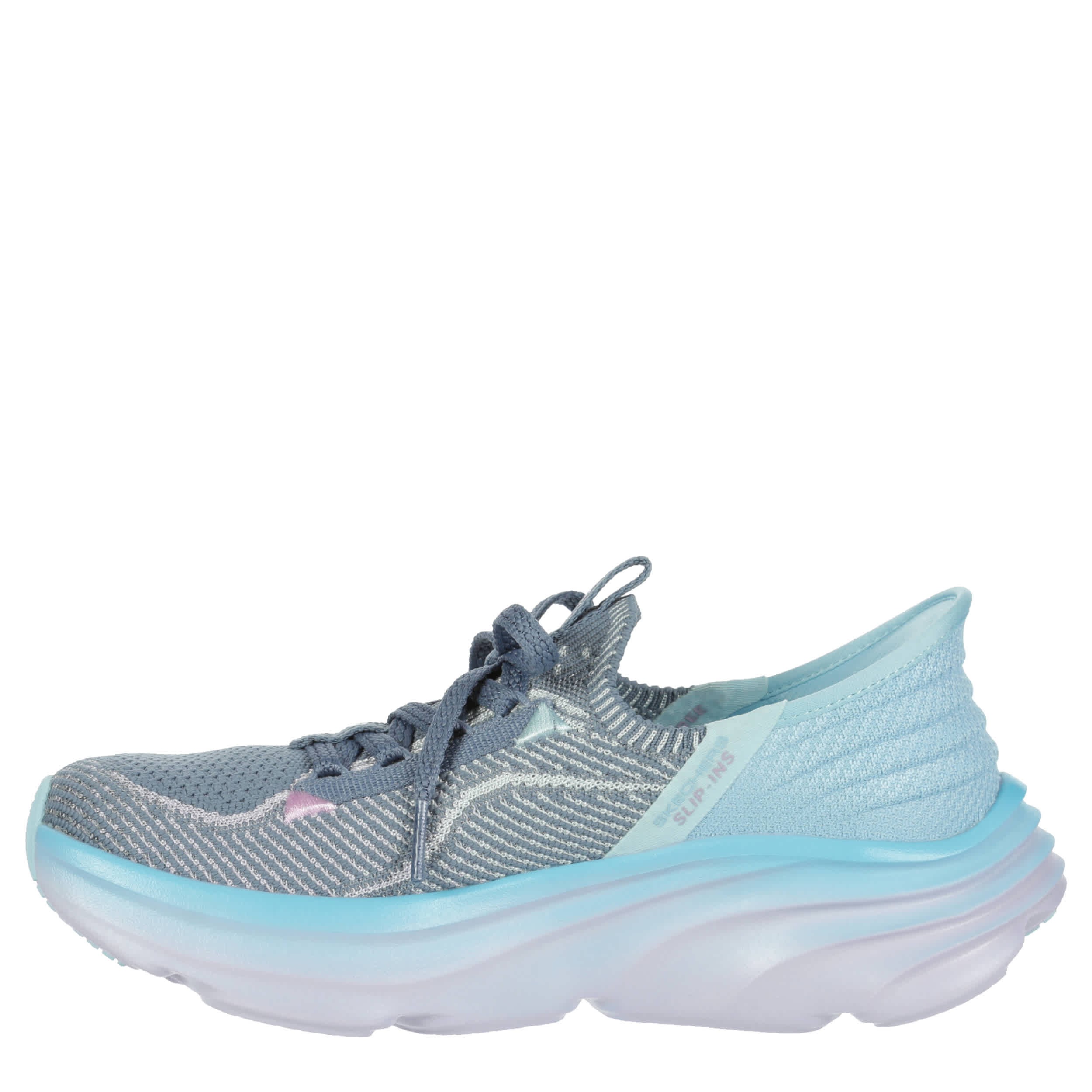 Light, sport and cool - the Slip-ins RF: D'Lux Vapor - Evening Glowing women's running shoe from Skechers. Featuring a color trim and an exclusive Heel Pillow™ for a secure fit, this roomy shoe is so easy to manage. The Skechers Air-Cooled Memory Foam® & Vapor Foam™ midsole provide lightweight, premium cushioning.
