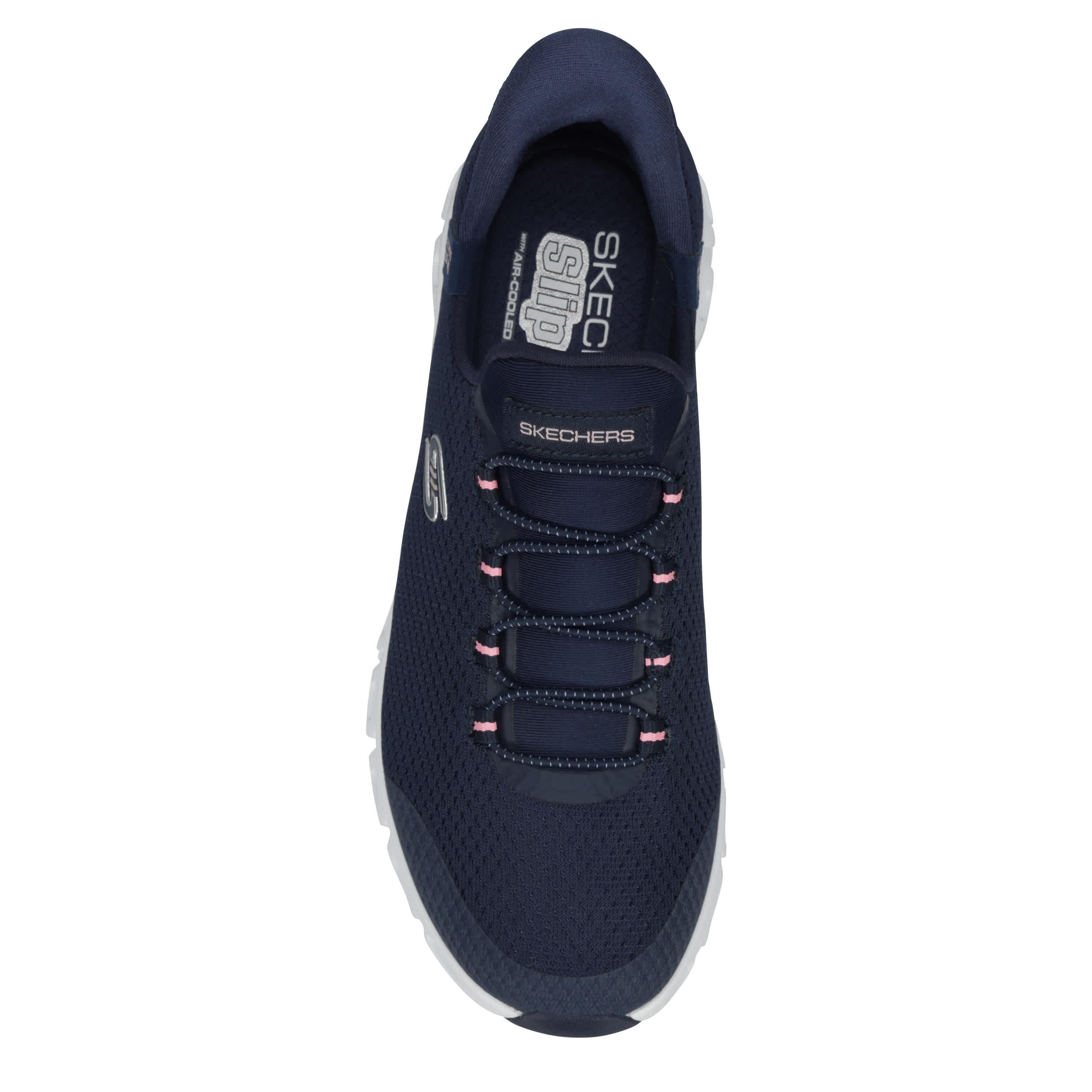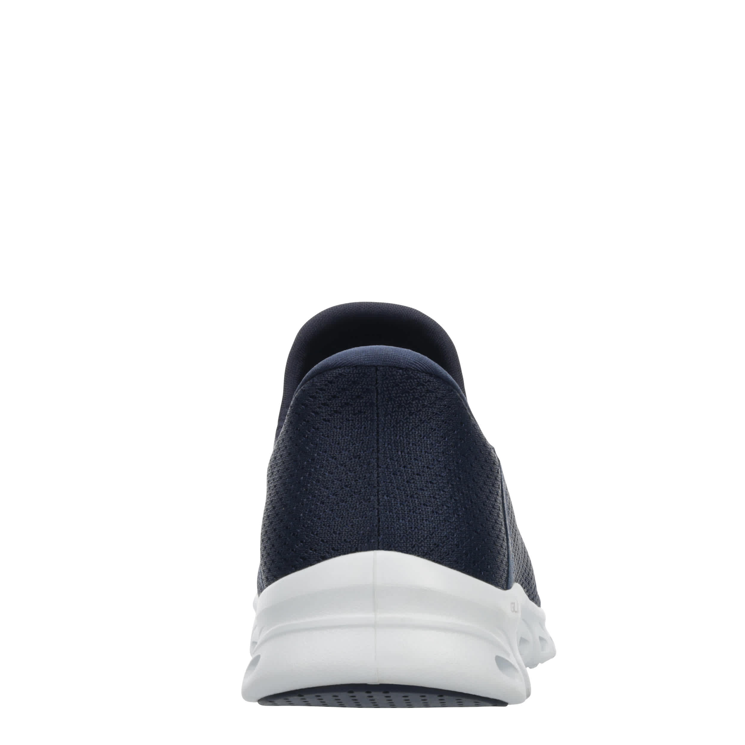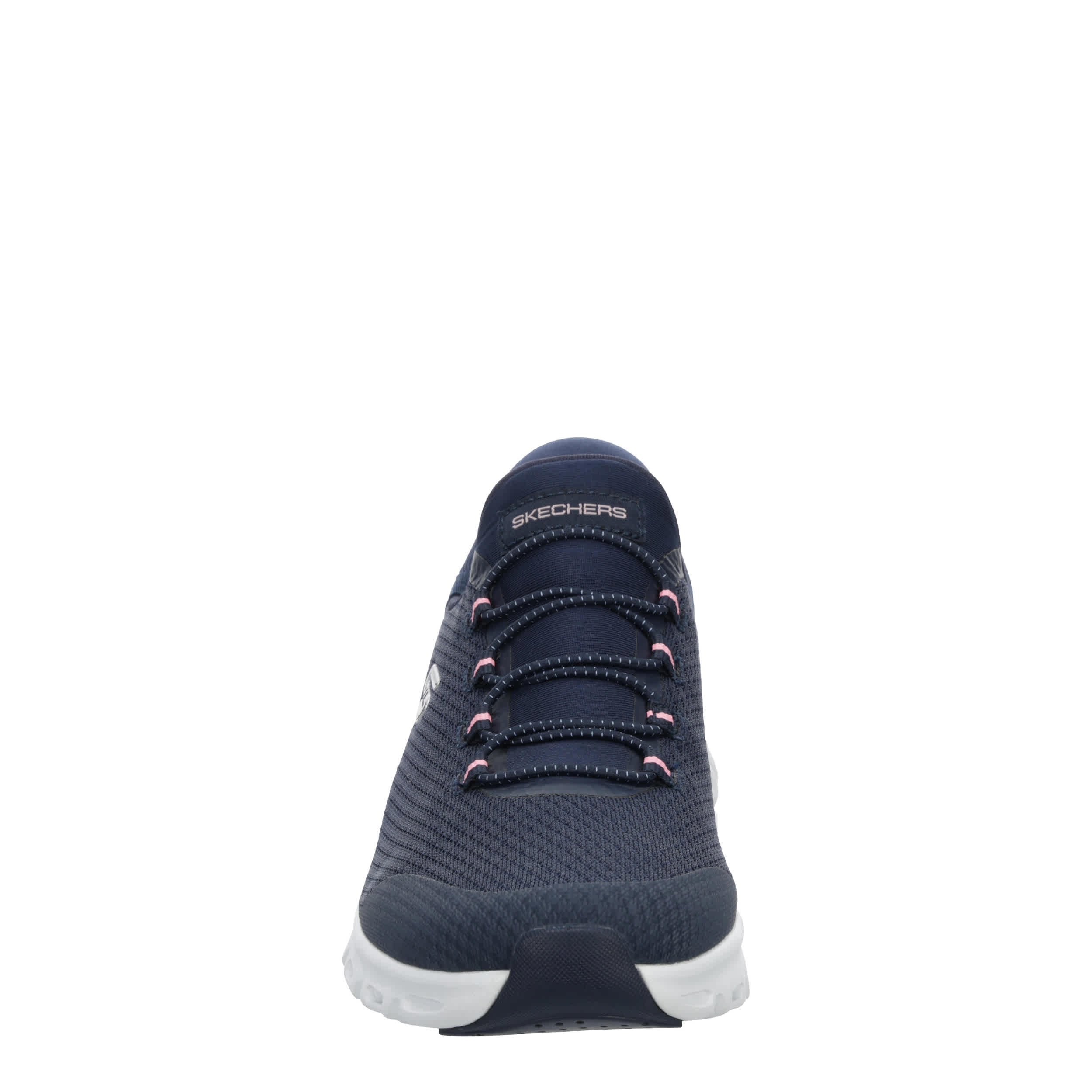 Fix your comfort level in the Skechers Hands Free Slip-ins®: Glide-Step® - Pursuit running shoe. Featuring a breathable upper with a secure exclusive Heel Pillow™, this vegan shoe provides natural momentum courtesy of the Glide-Step® geometric midsole. The Skechers Air-Cooled Memory Foam® cushions every stride, while the outsole offers flexible traction.