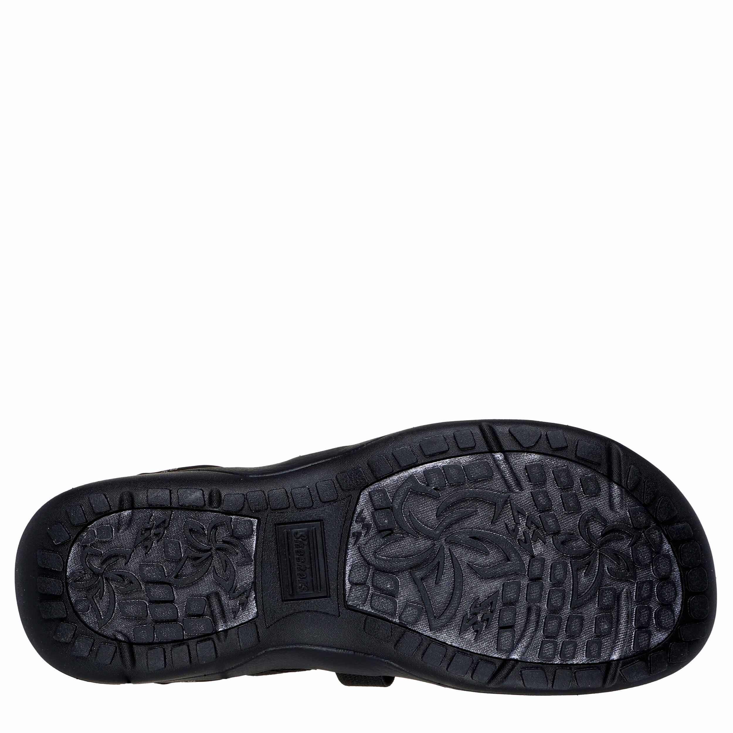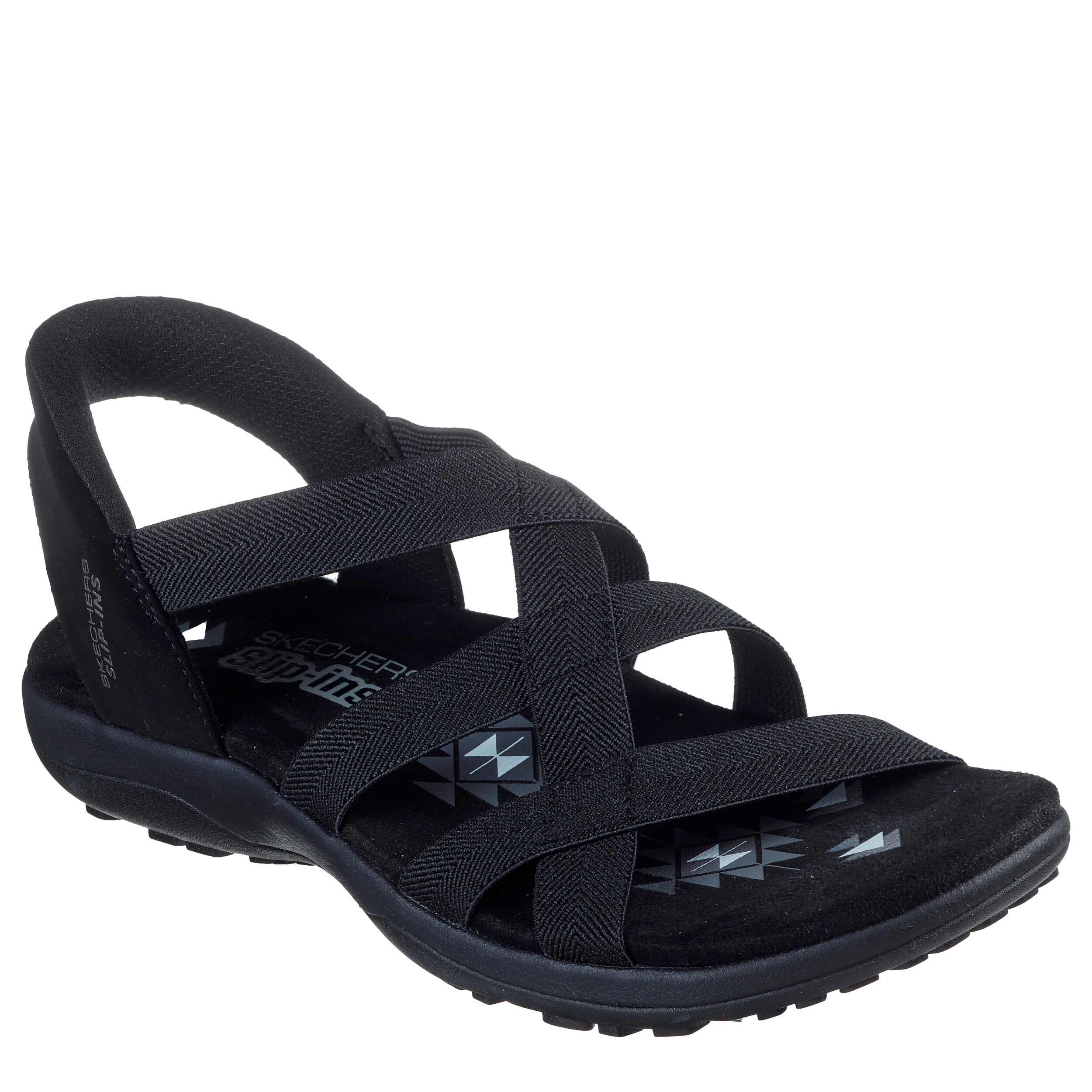 Sink into the breezy comfort of the Slip-ins: Reggae Slim - Stretch Flex women's sandal from Skechers. With a Stretch Fit® vegan upper featuring the Heel Pillow™ for a padded, secure fit, this Skechers Hands Free Slip-in® has a built-in 1" heel. The contoured footbed cushions every step, while the outsole offers flexible traction.