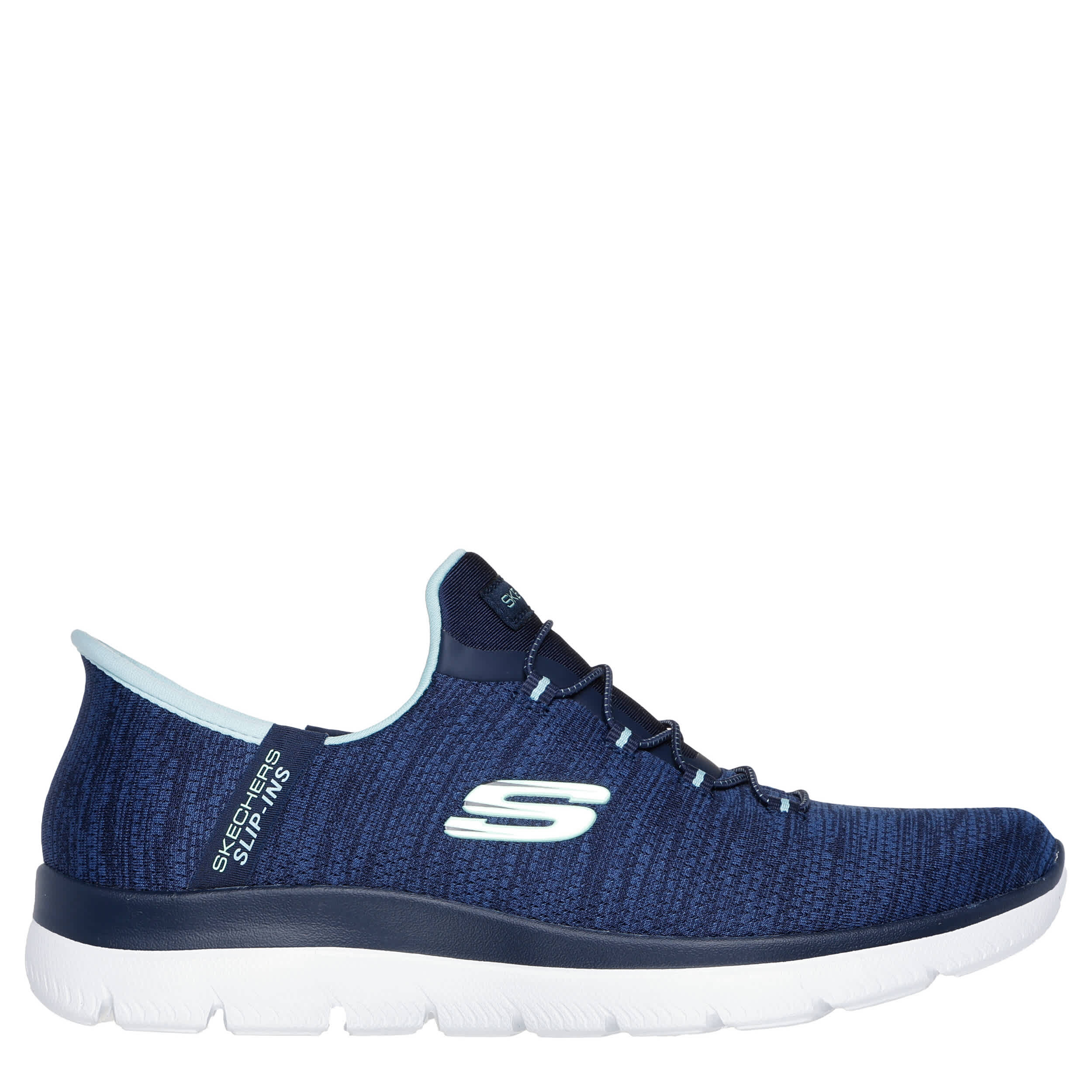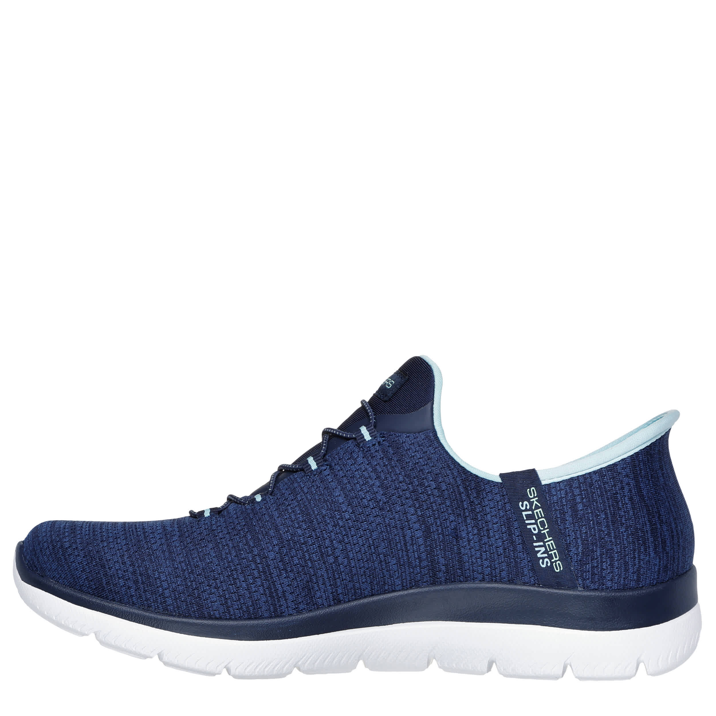 Be comfortable on the trail or at the gym with the Skechers Slip-ins: Summits - Dazzling Haze women's running shoe. With a heathered jersey knit upper featuring an Exclusive Heel Pillow for a secure fit, this Skechers Hands Free Slip-in is machine washable for easy maintenance. The Skechers Air-Cooled Memory Foam insole cushions your foot, while the outsole provides flexible traction.