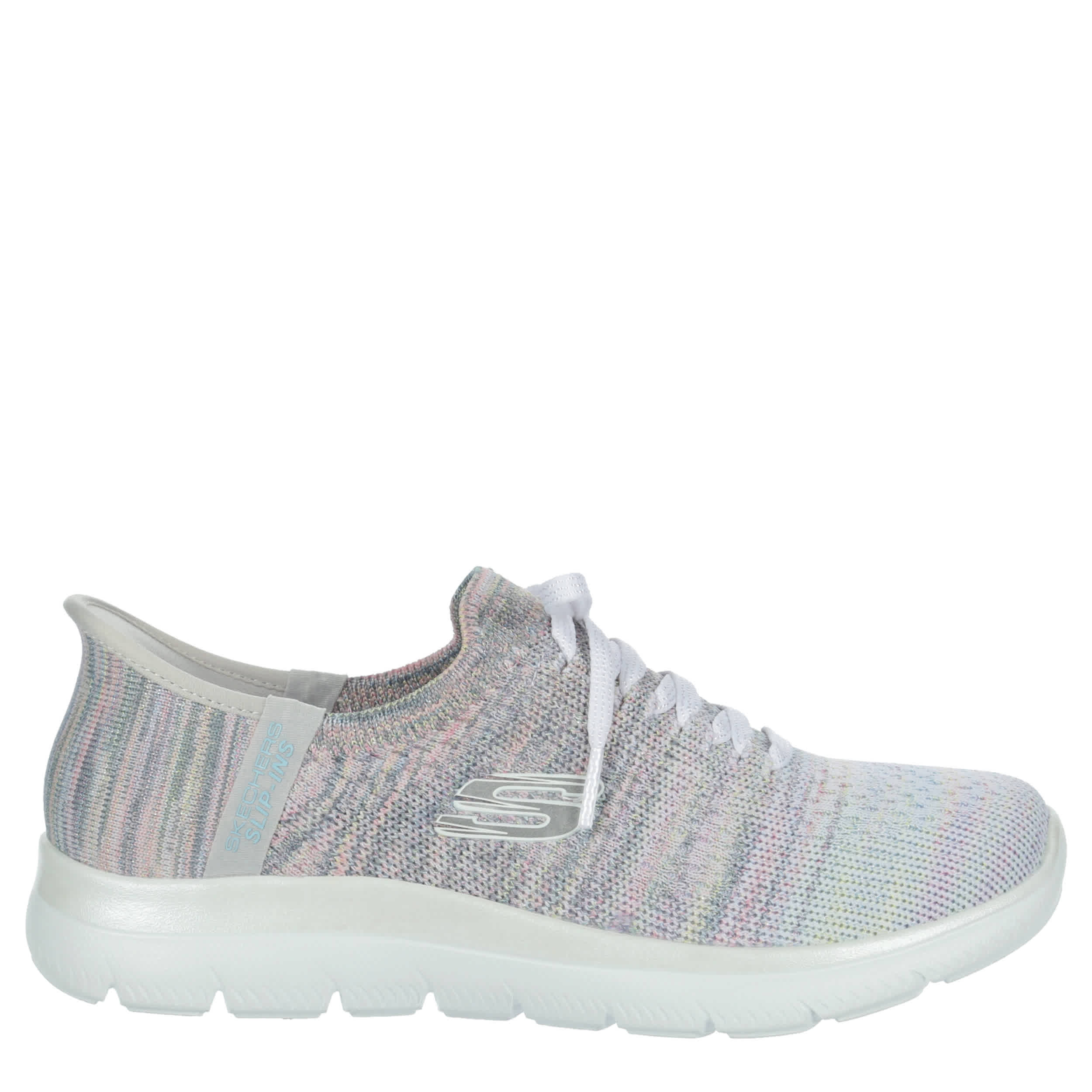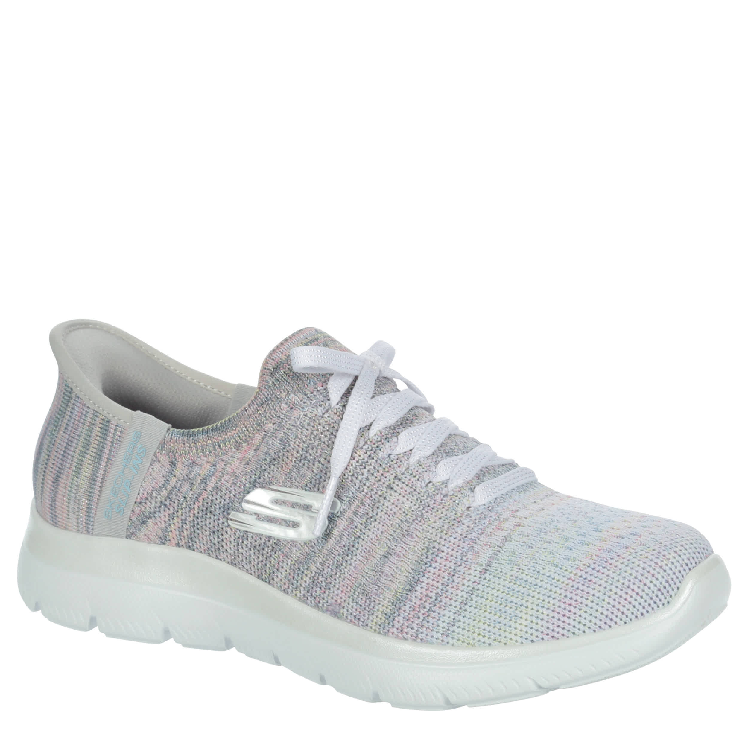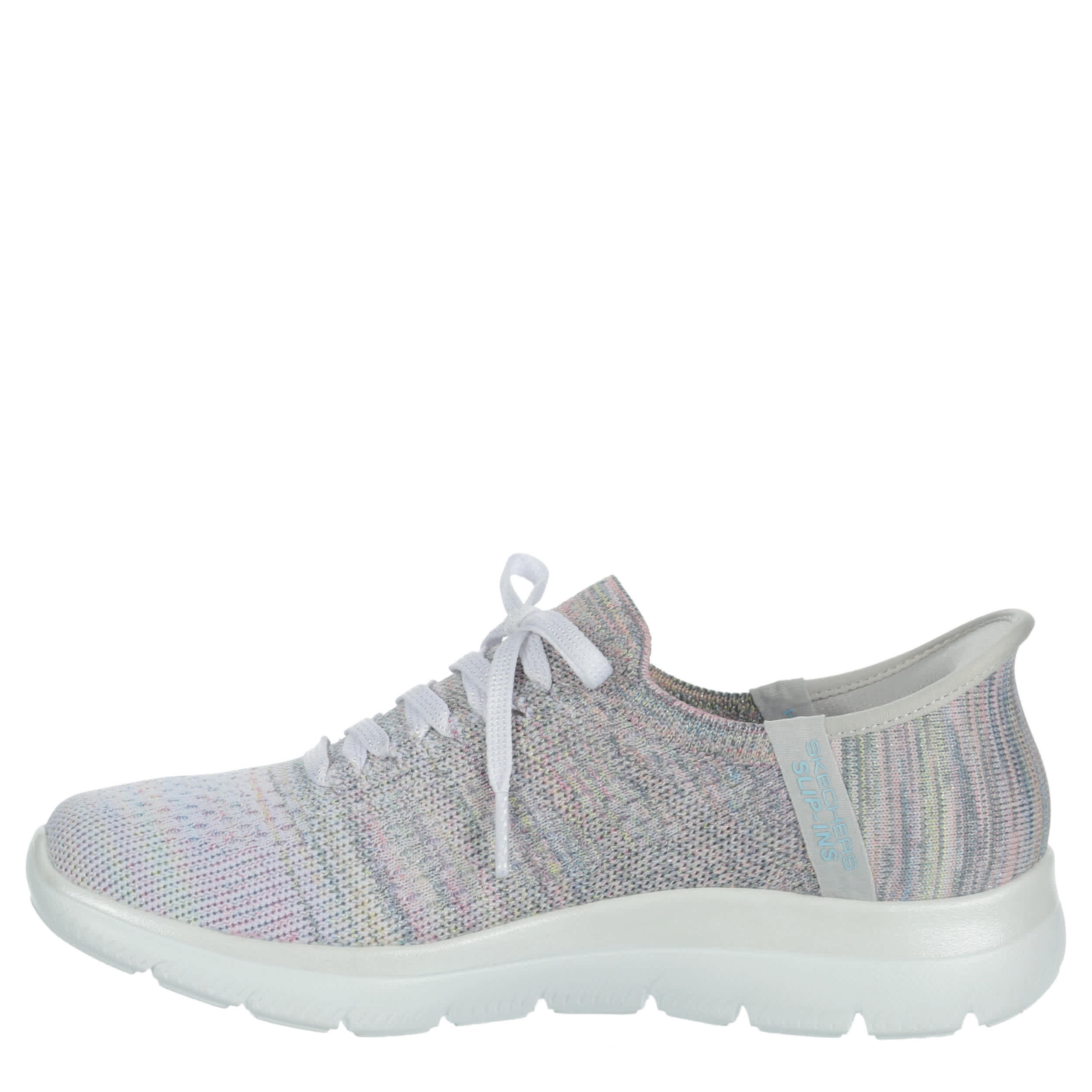 Platinum comfort helps you pick up the pace in the Skechers Hands Free Slip-ins®: Summits - Mystic Glow running shoe. With a Stretch Fit® upper featuring an exclusive Heel Pillow™ for a secure fit, this vegan shoe is so easy to wear. The Skechers Air-Cooled Memory Foam® cushions your foot, while the outsole provides flexible traction.