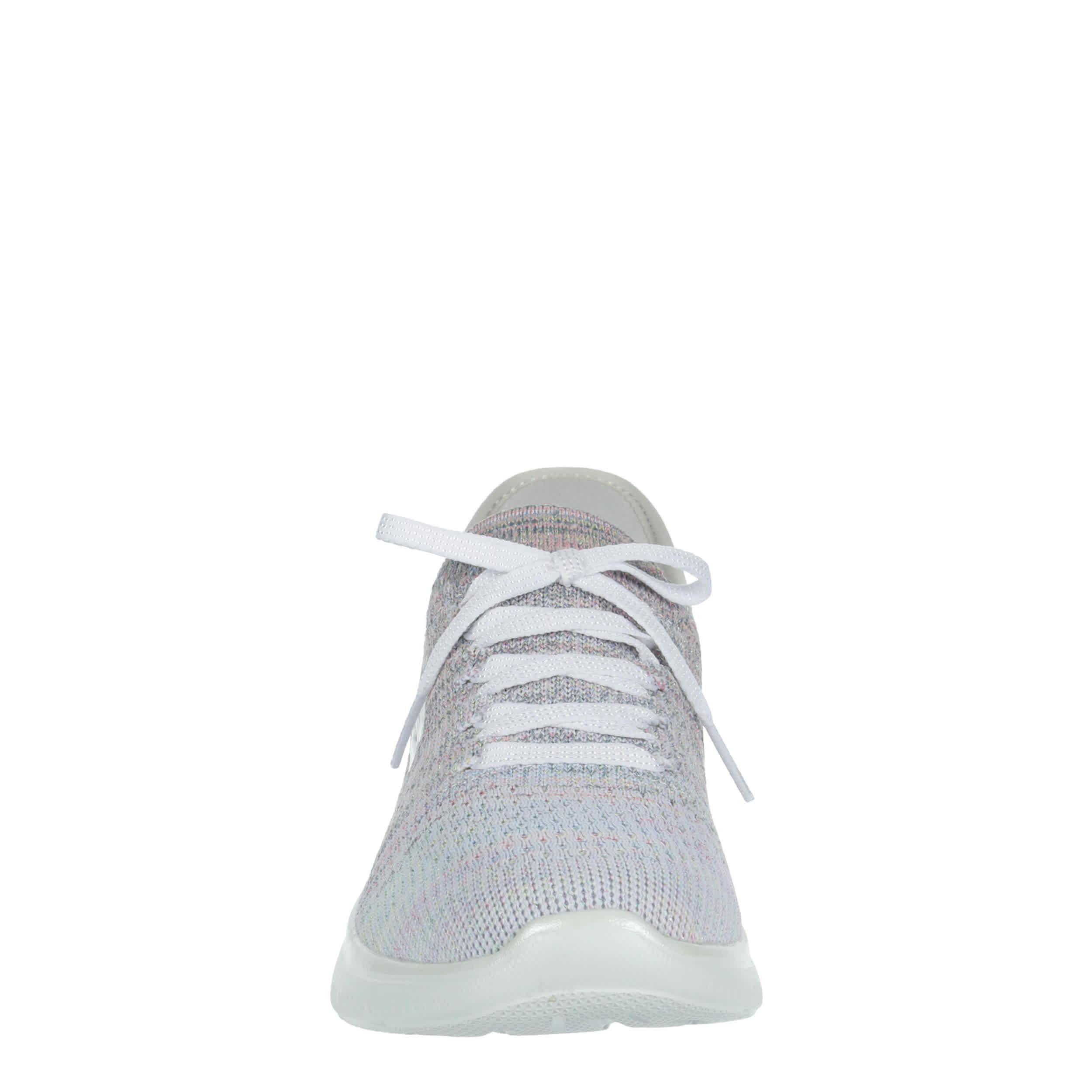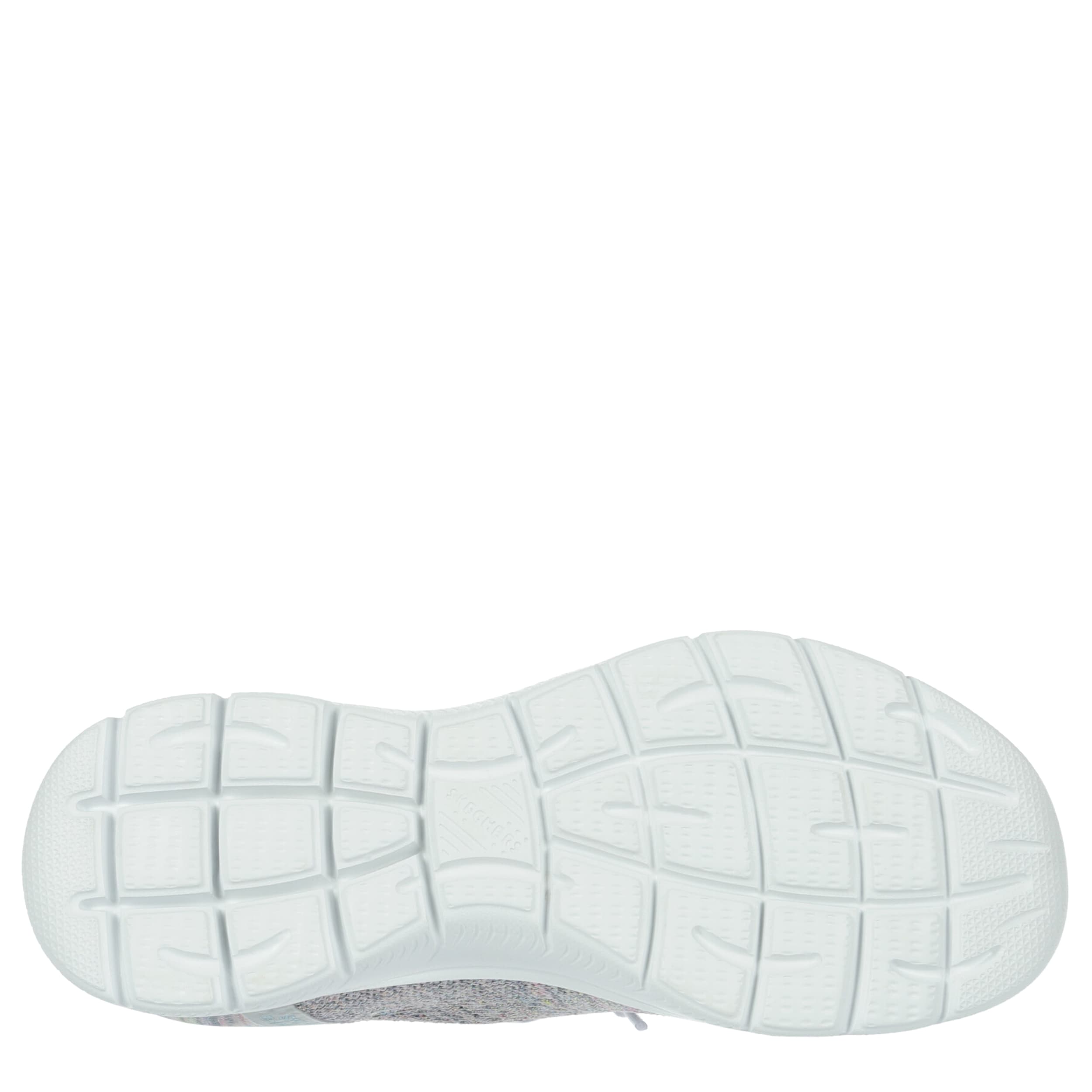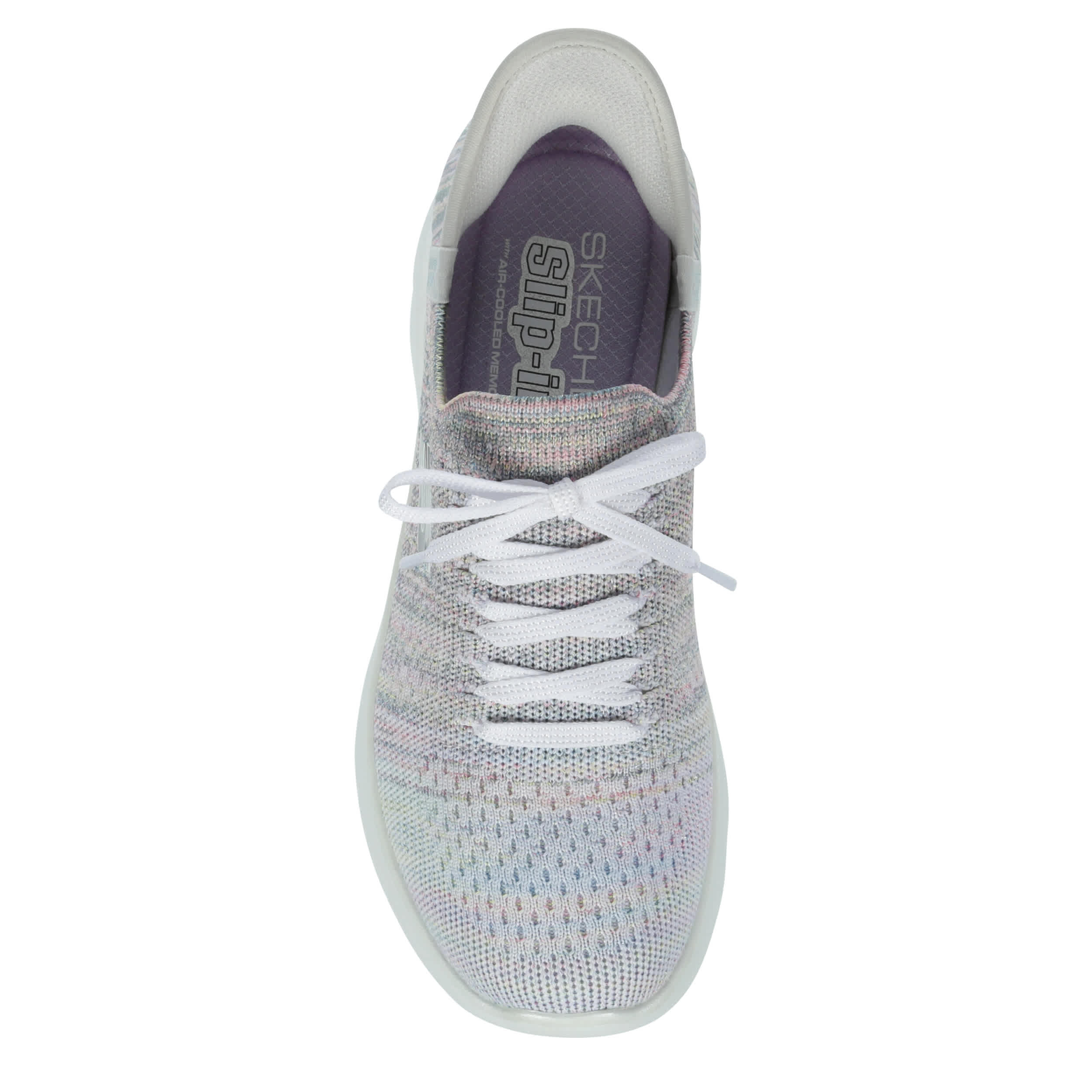 Platinum comfort helps you pick up the pace in the Skechers Hands Free Slip-ins®: Summits - Mystic Glow running shoe. With a Stretch Fit® upper featuring an exclusive Heel Pillow™ for a secure fit, this vegan shoe is so easy to wear. The Skechers Air-Cooled Memory Foam® cushions your foot, while the outsole provides flexible traction.