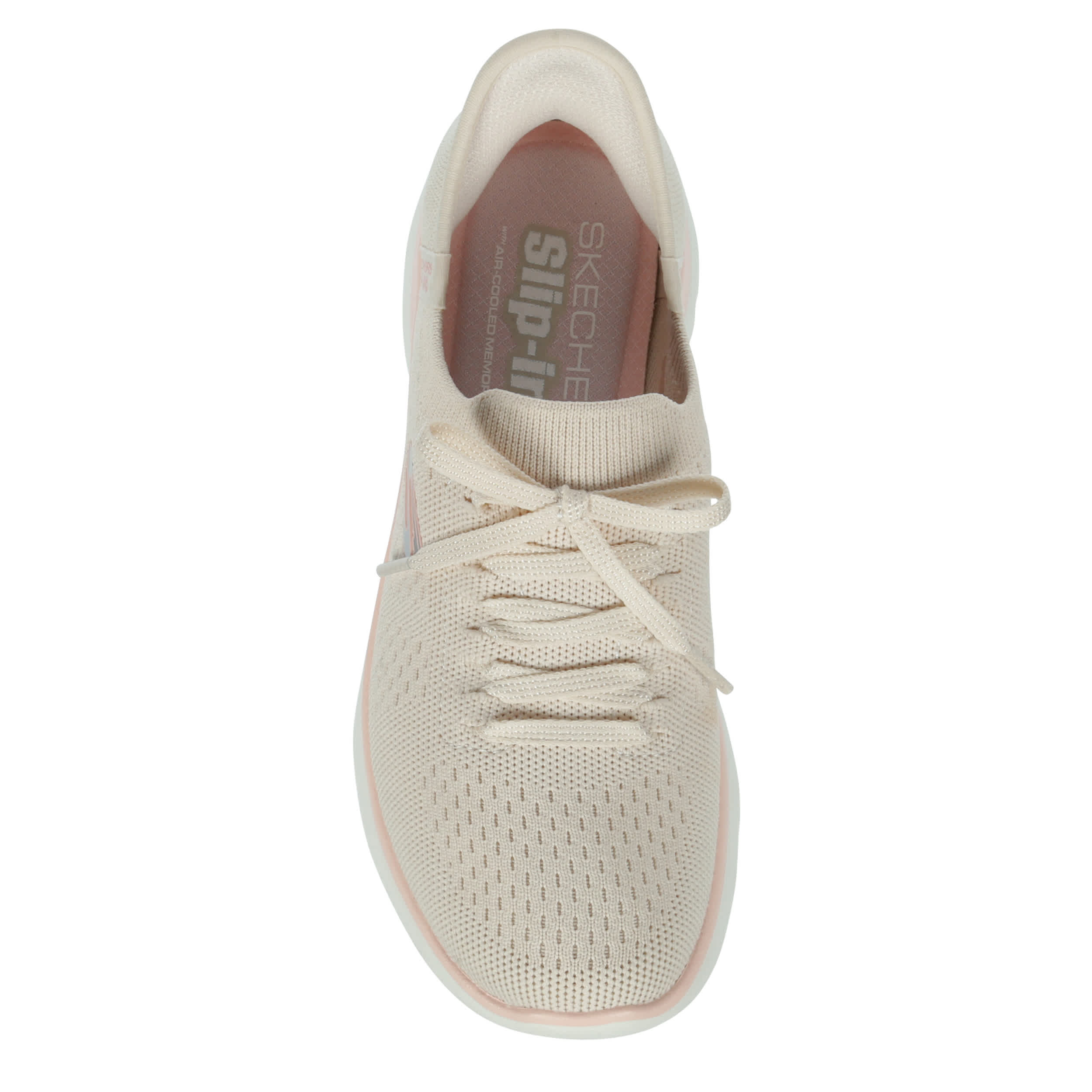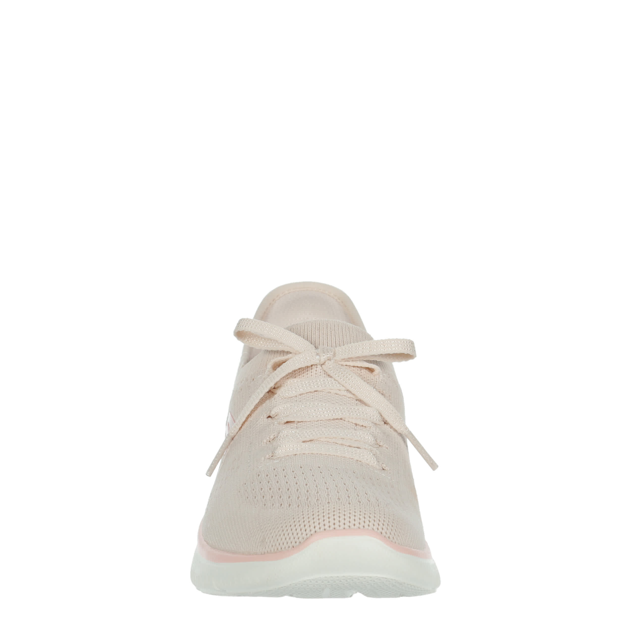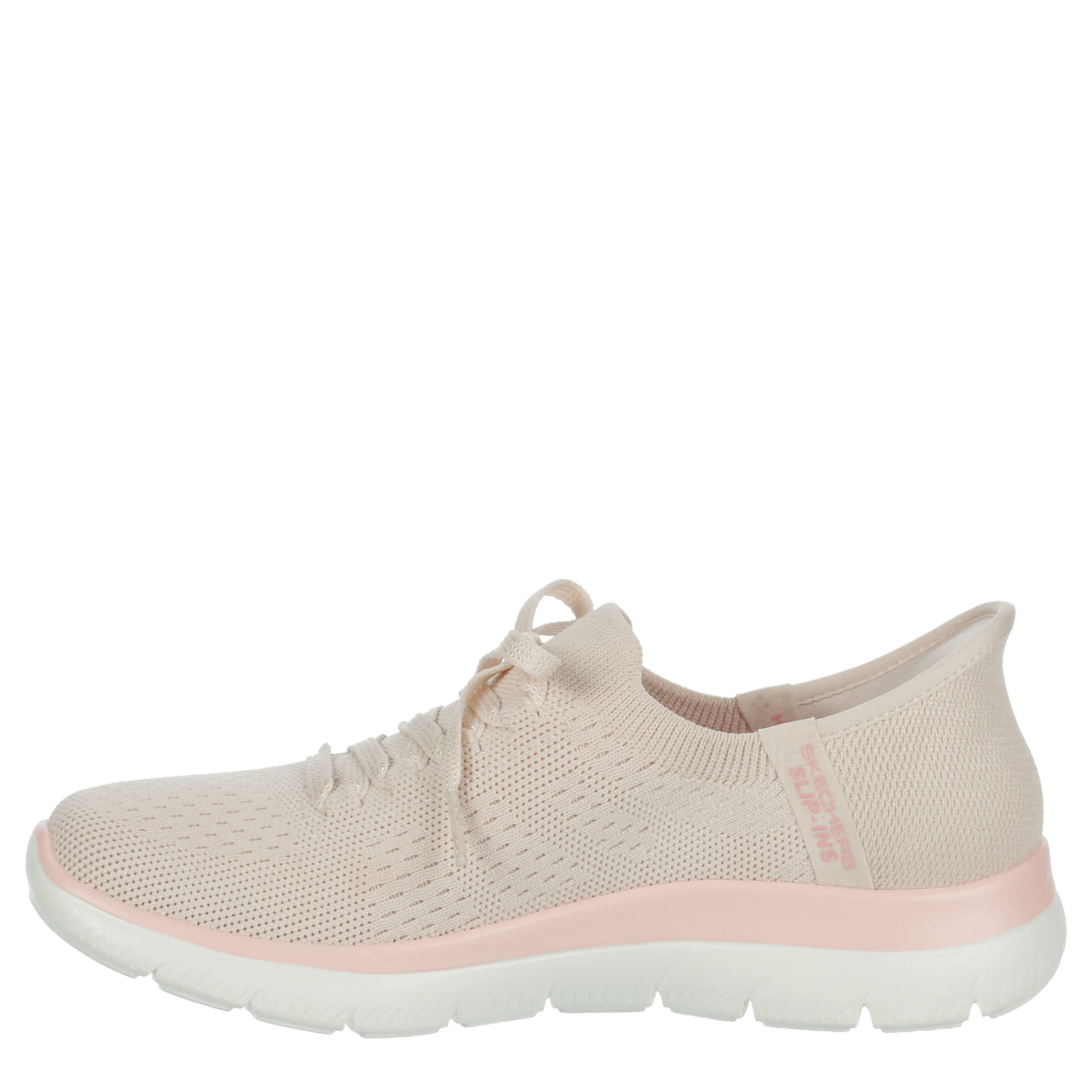Easy & light start to the day in the Skechers Hands Free Slip-ins®: Summits - New Daily running shoe. With a Stretch Fit® upper featuring an exclusive Heel Pillow™ for a secure fit, this vegan shoe is machine washable for low maintenance. The Skechers Air-Cooled Memory Foam® cushions your foot, while the outsole provides flexible traction.