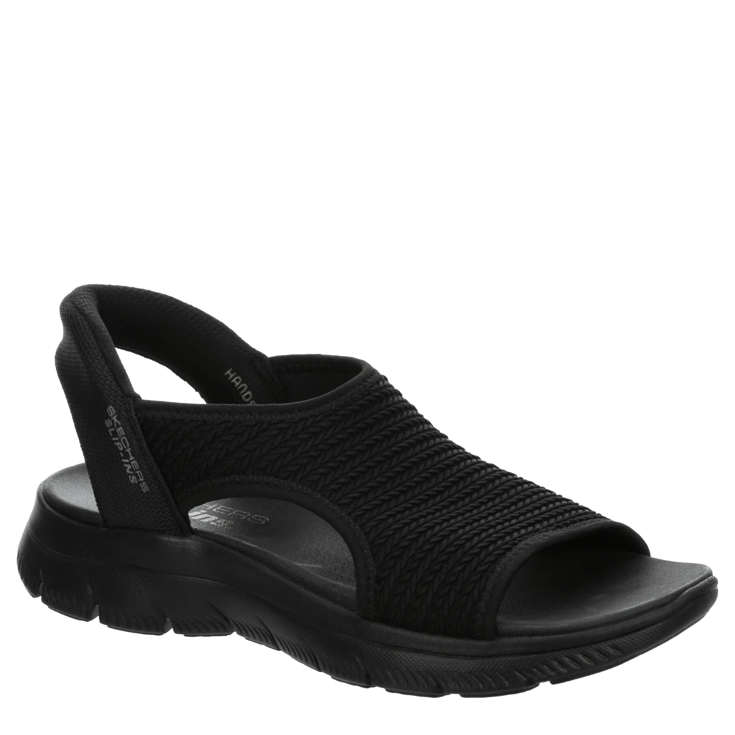 Start summer in the Hands Free Slip-ins®: Summits - Sweetly Evolved women's sandal from Skechers Modern. With a breezy knit upper featuring the Hands-free Skechers Slip-ins® back heel for a secure fit, this machine washable wedge is low maintenance. Comfort and a slight wedge heel complete an amazing experience.