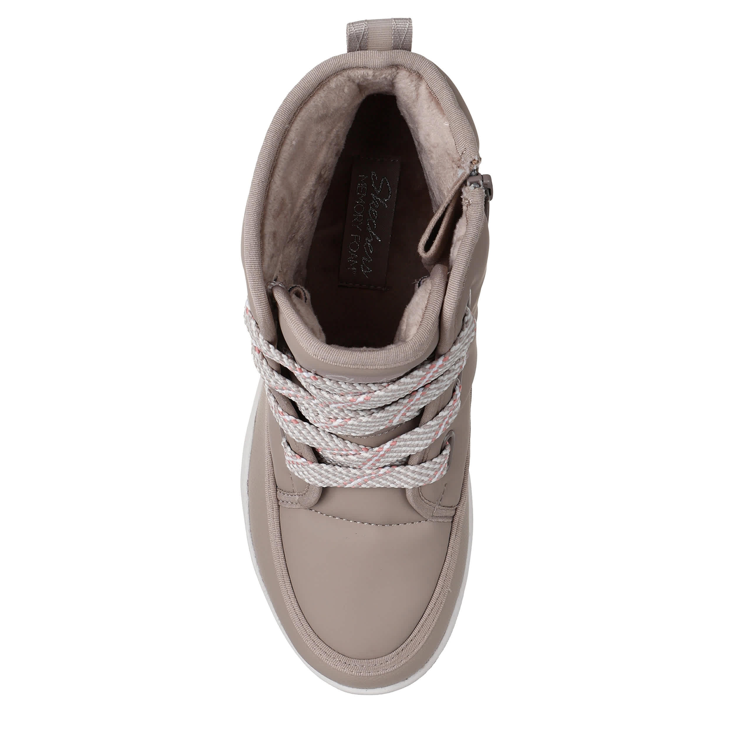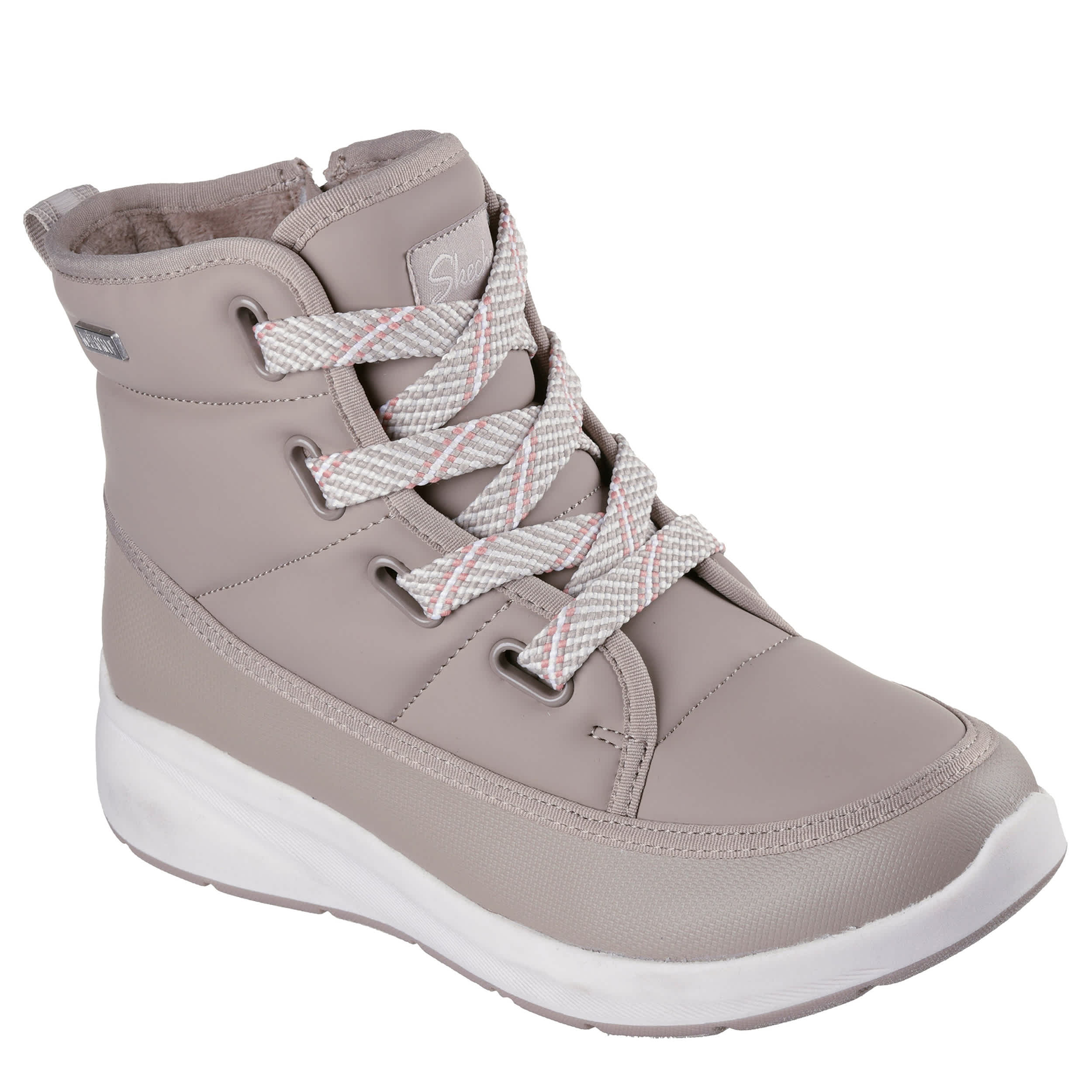 Don't let the cold cramp your style in the comfy Skechers Waterproof Relaxed Fit: Tahoe weather boot. With a puffer-style synthetic upper featuring a rear pull tab for easy entry, this roomy boot is seam-sealed waterproof with a lace-up front. The Skechers Memory Foamâ„¢ cushioning leaves you feeling refreshed while the outsole ensures flexible traction.