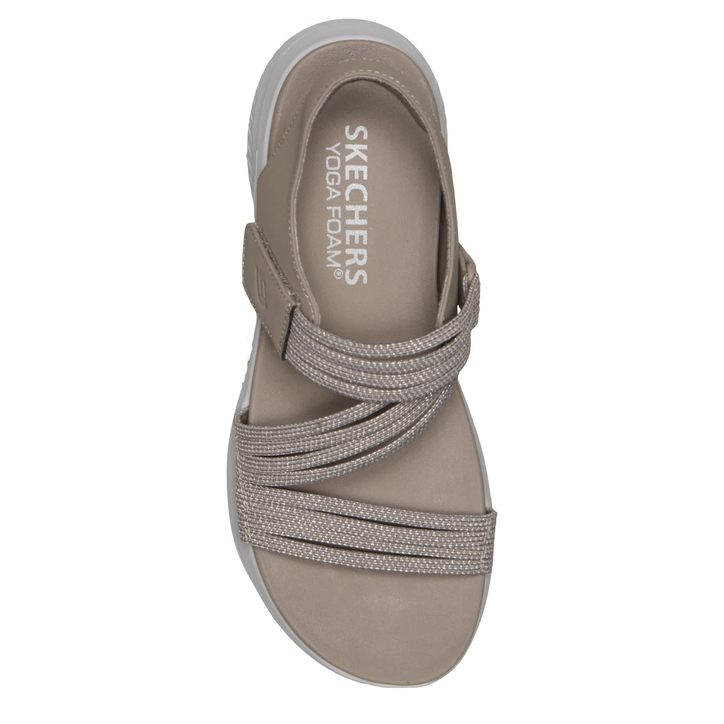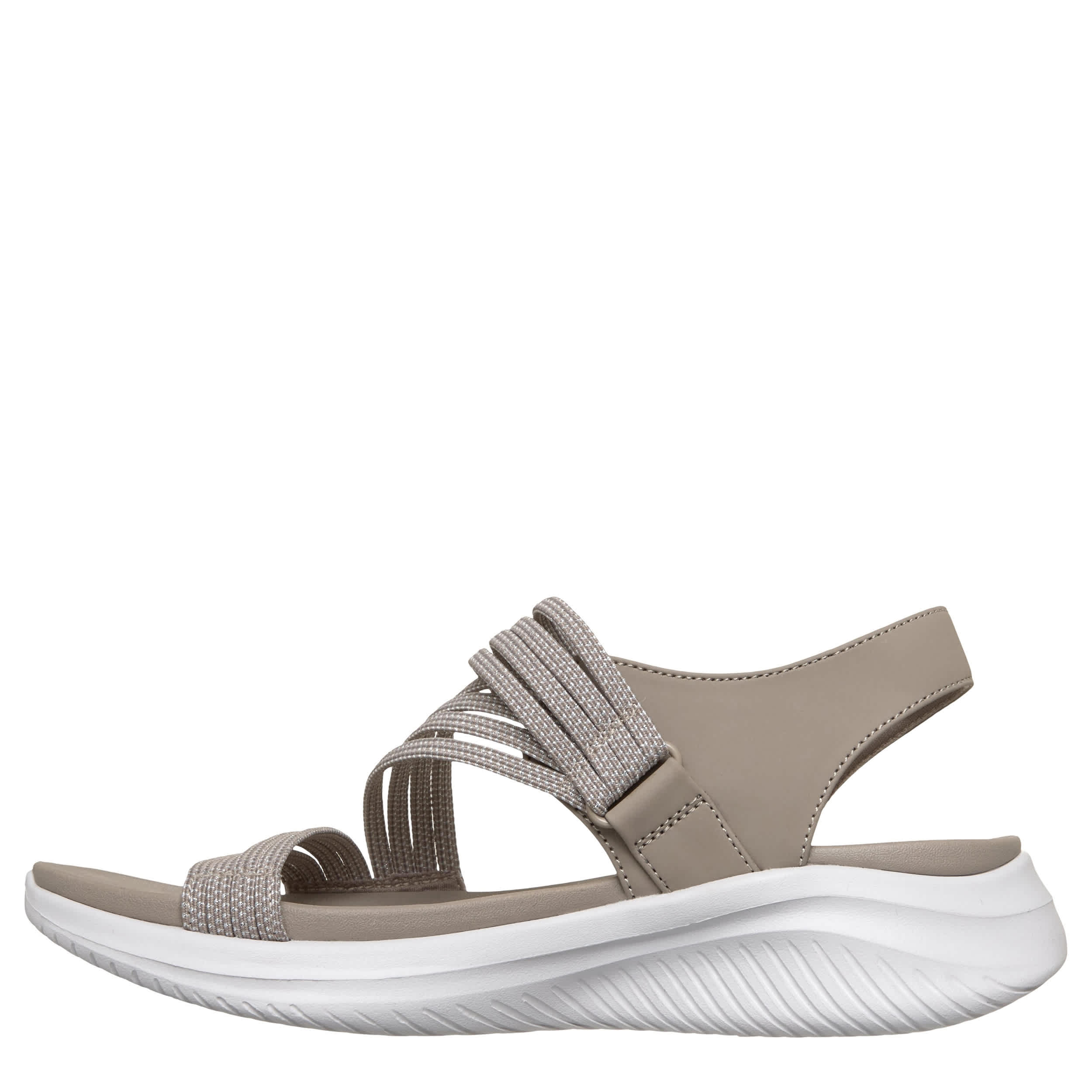 Treat your weekends to the Skechers Ultra Flex 3.0 Sandal - Sunday Candy. With a stretchy upper featuring metallic goring, this vegan sandal is low maintenance and machine washable. The Yoga Foam® footbed cushions your foot, while the outsole offers flexible traction.
