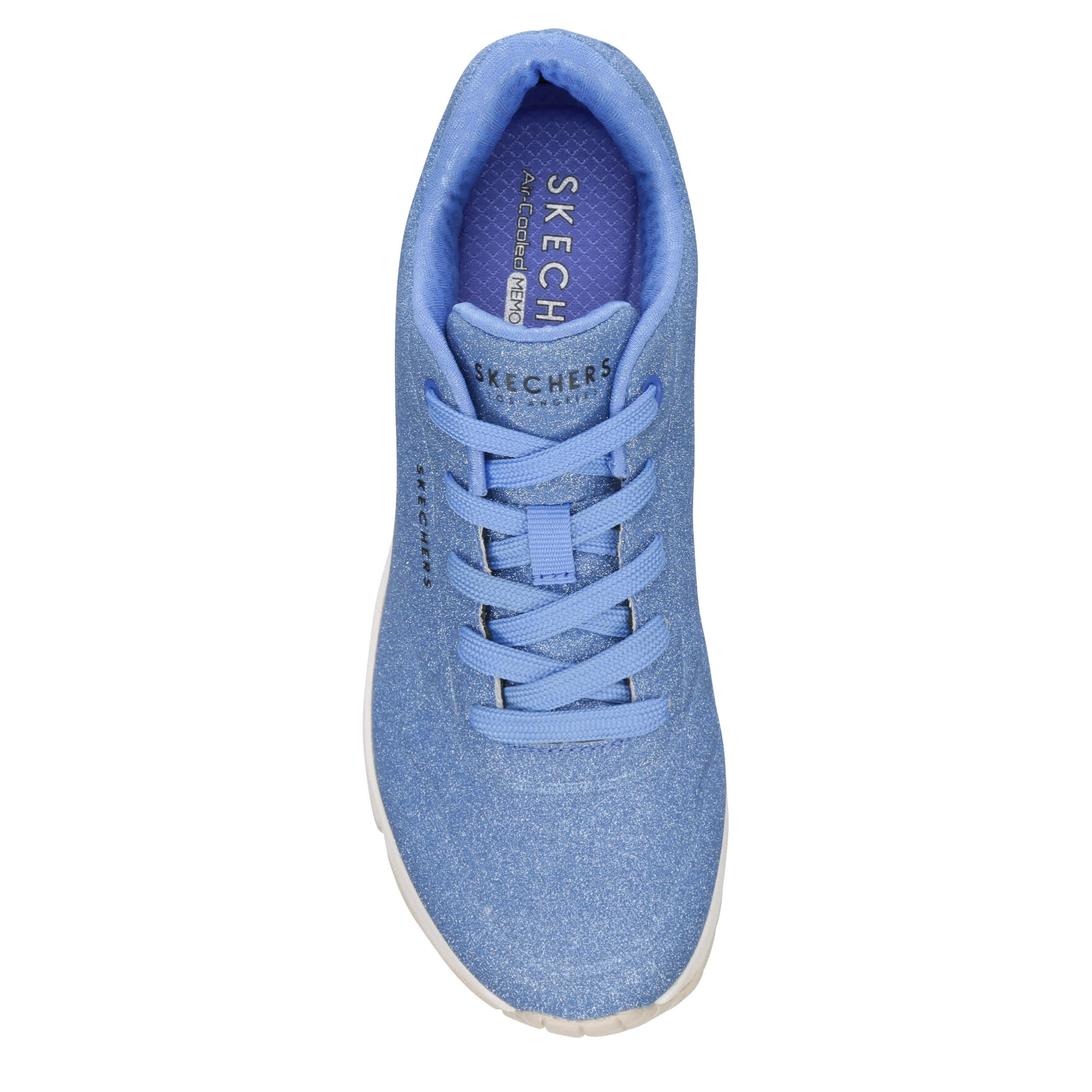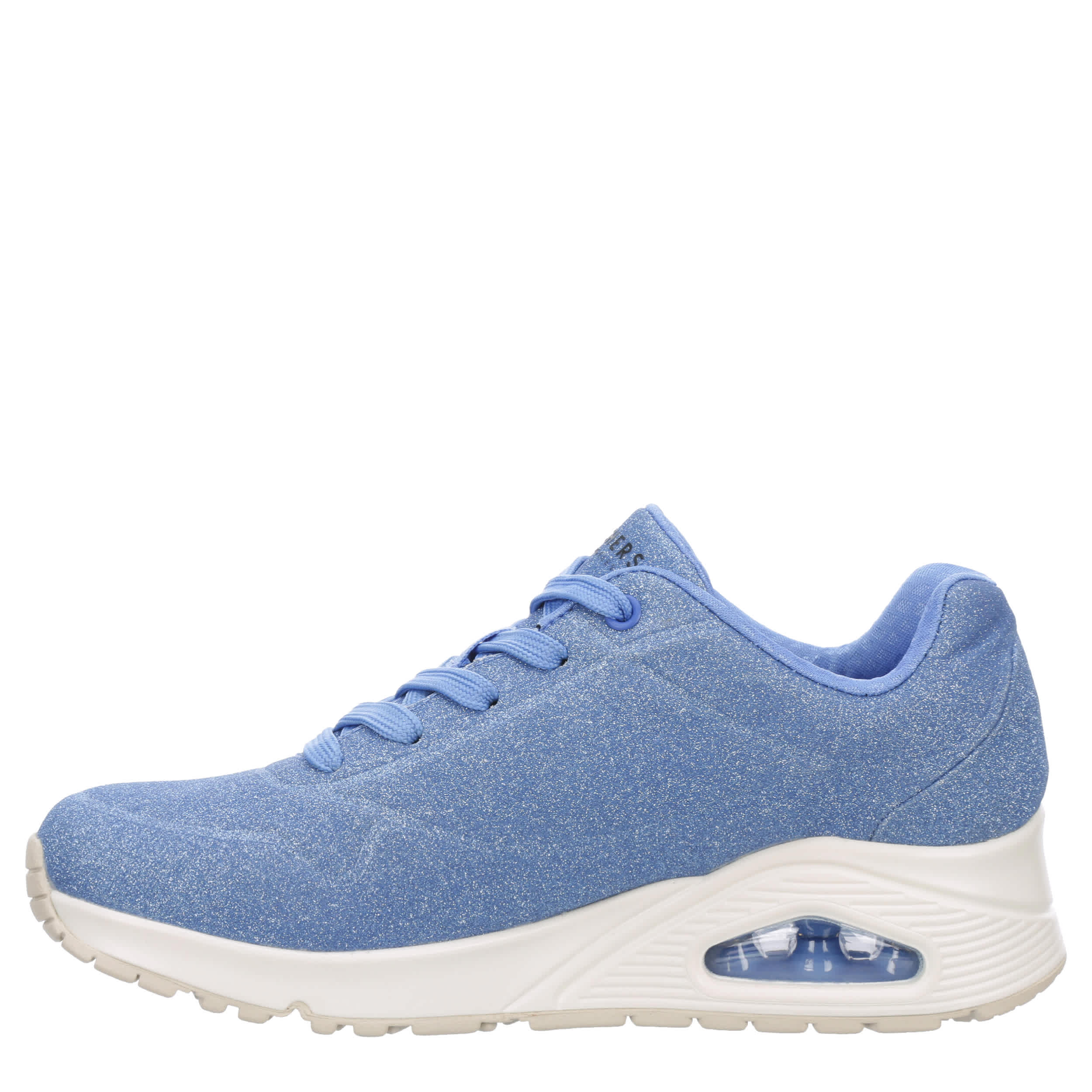 Sparkle for summer, everyday, in the Skechers Street™ Uno - Glitter Bomb sneaker. Featuring a synthetic glitter upper, this lace-up shoe adds a fun pop of shine to your wardrobe. The Skechers Air-Cooled Memory Foam® insole & Skech-Air® midsole cushion every step, while the outsole offers flexible traction.