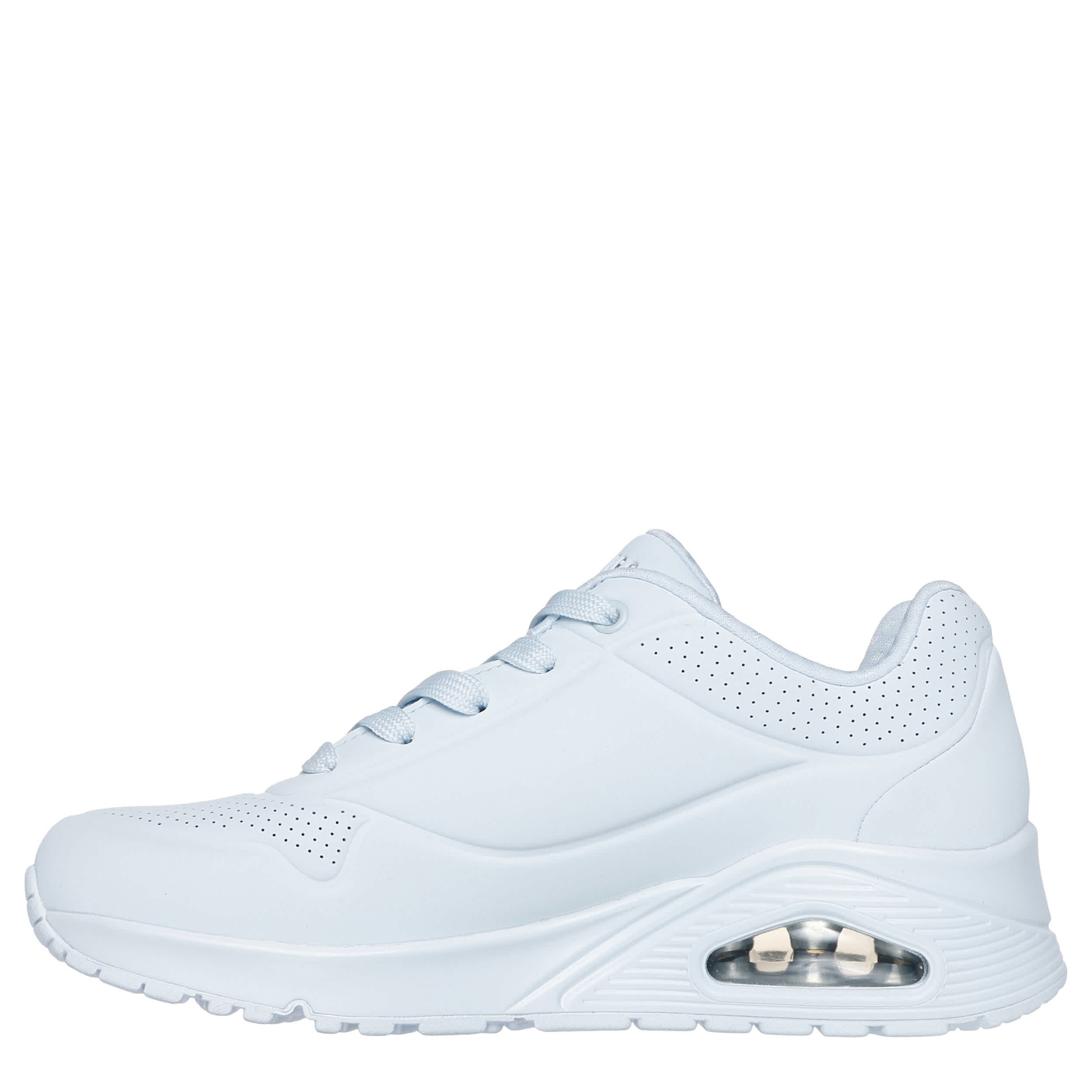Elevate your casual look with the Skechers Street Uno - Stand On Air women's sneaker. With a perforated upper featuring bold color for extra style, these sneakers look great with everything. The Skechers Air-Cooled Memory Foam insole & Skech-Air midsole cushion every step, while the rubber outsole offers flexible traction.