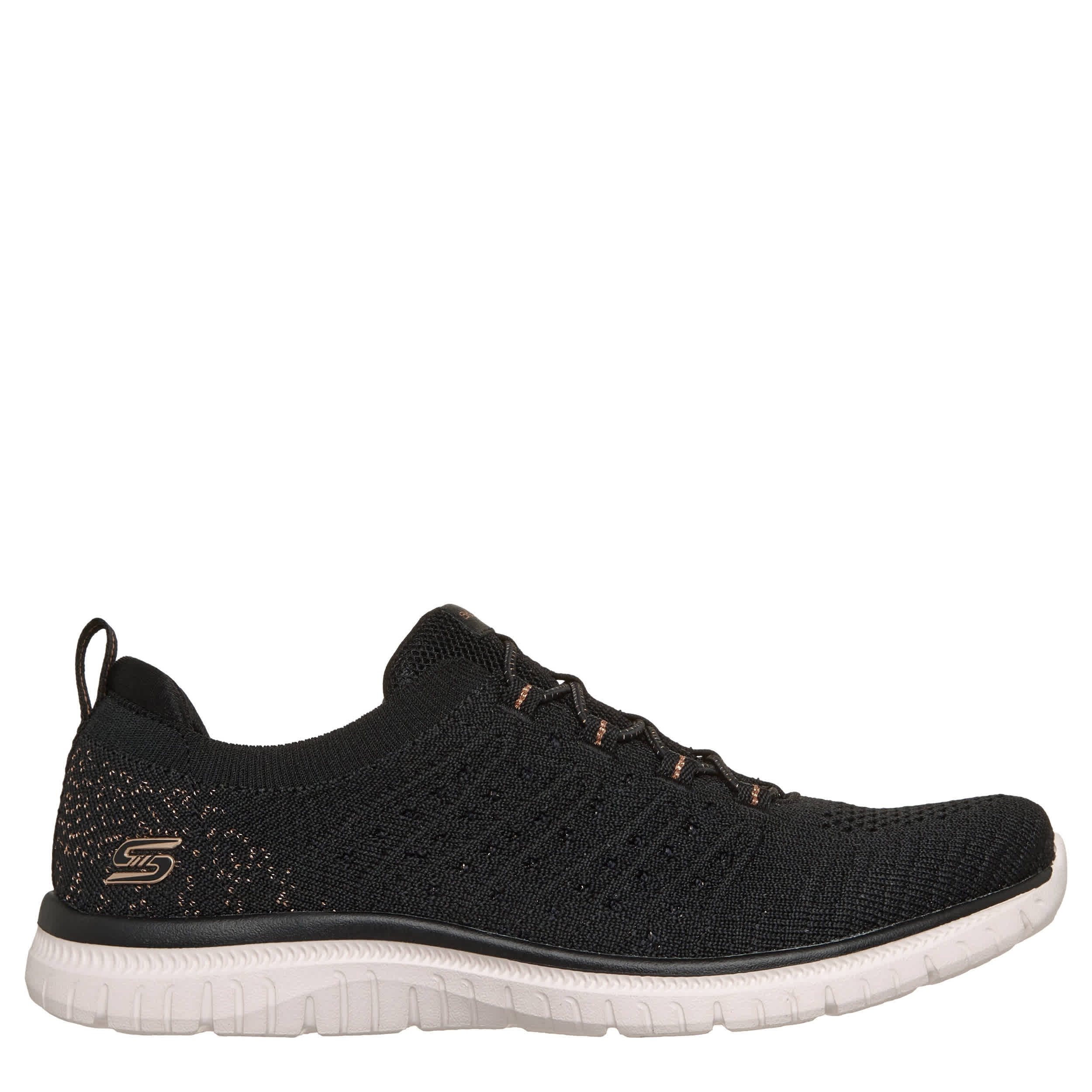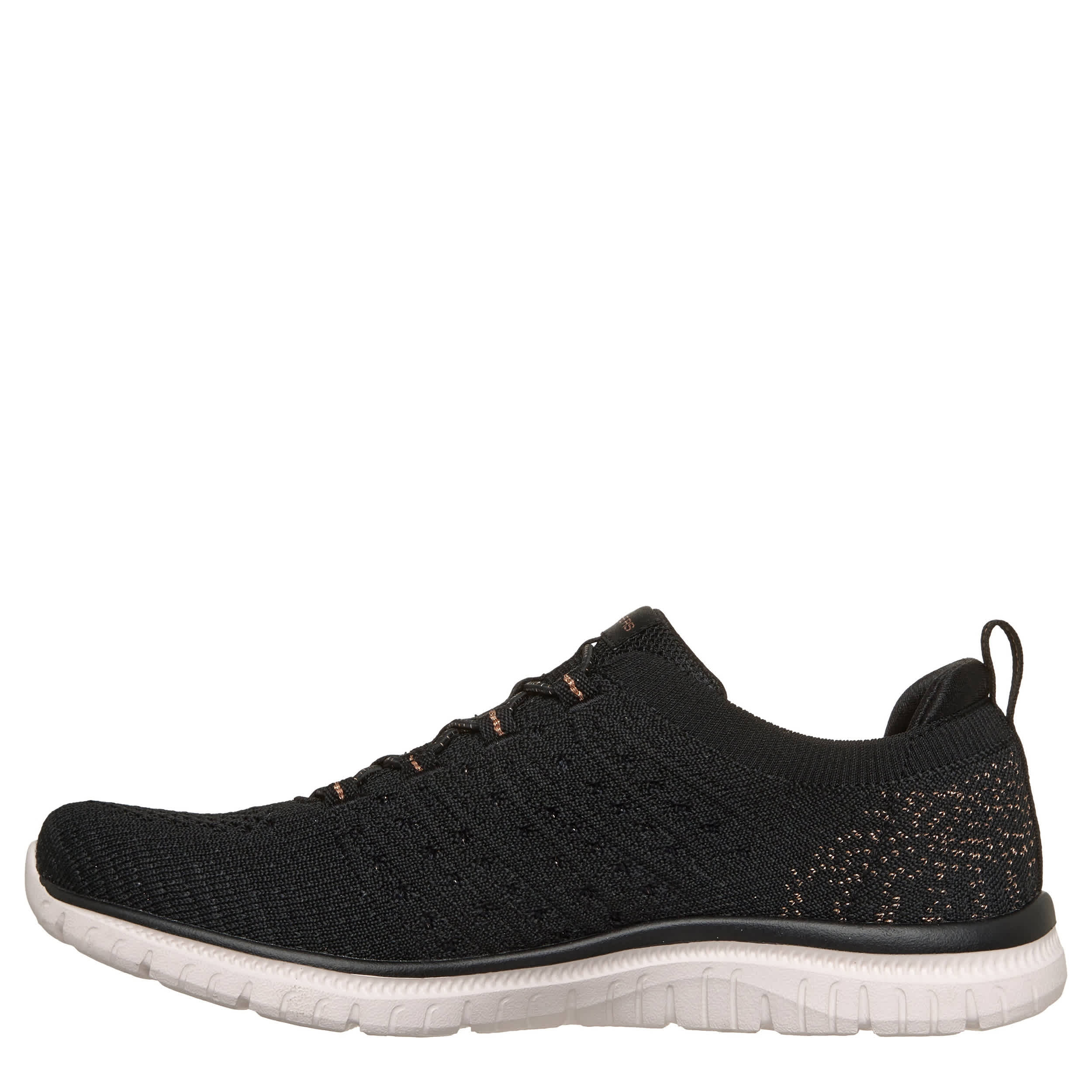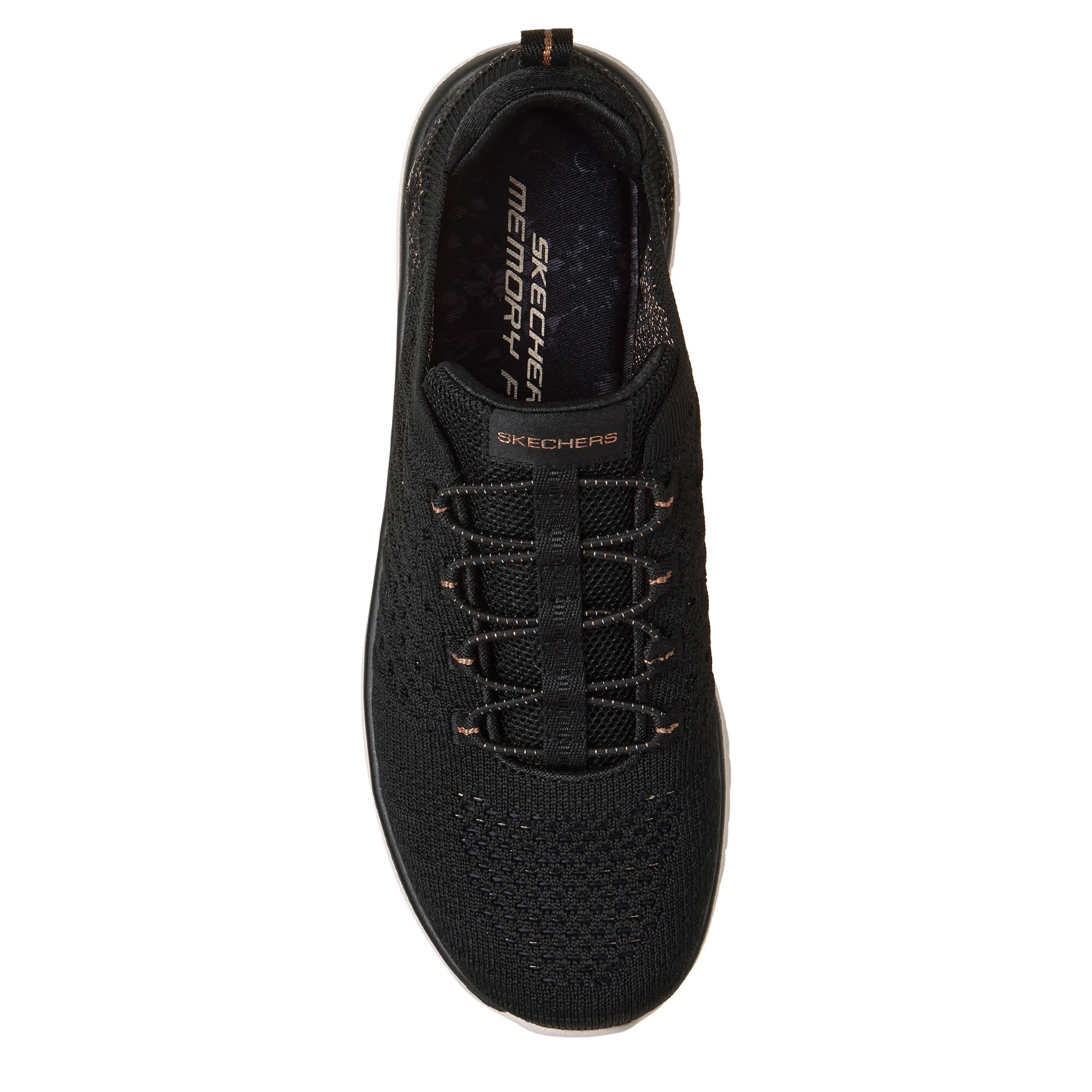 Daily walks are happy walks in the Skechers Virture - Copper Dream slip-on sneaker. Featuring a knit & copper yarn upper with stretch laces, this sneaker also has a padded heel collar for extra comfort. The Skechers Memory Foamâ„¢ insole cushions your feet, while the outsole offers flexible traction.