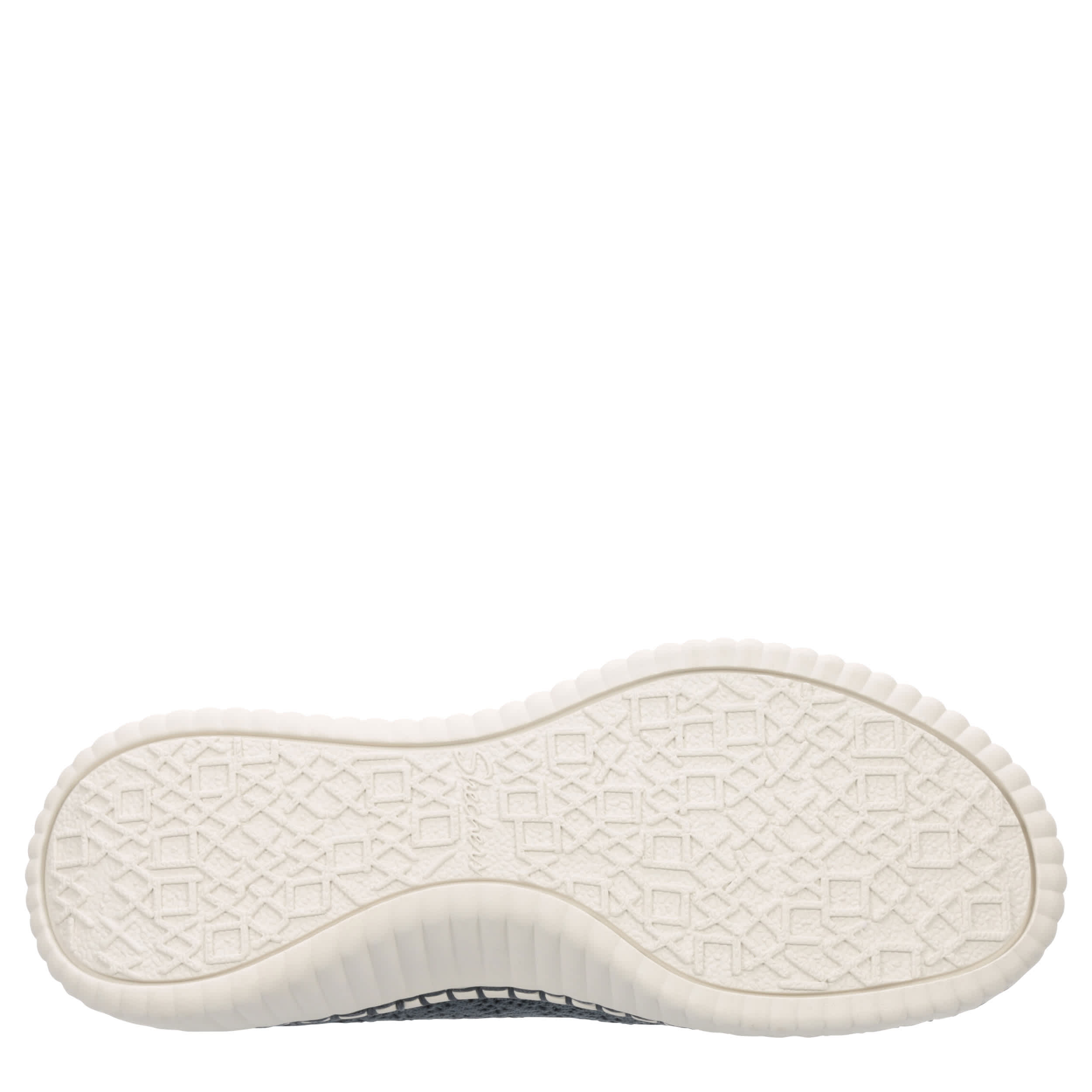 Style through everyday in the Wilshire Blvd women's slip-on sneaker from Skechers. Featuring a Stretch Fit® crochet knit upper with a scalloped trim, this simple shoe is machine washable for easy maintenance. The Skechers Air-Cooled Memory Foam® insole cushions every step while the flat outsole offers flexible traction.