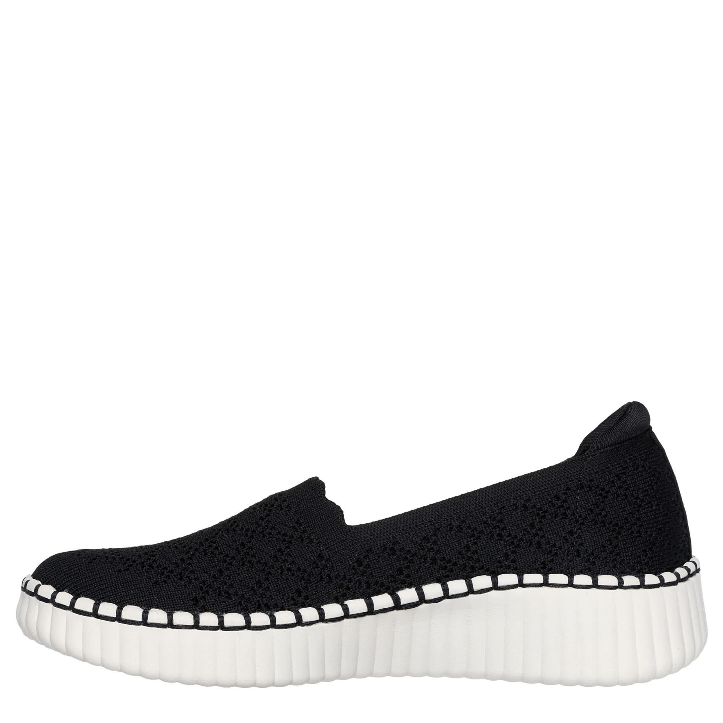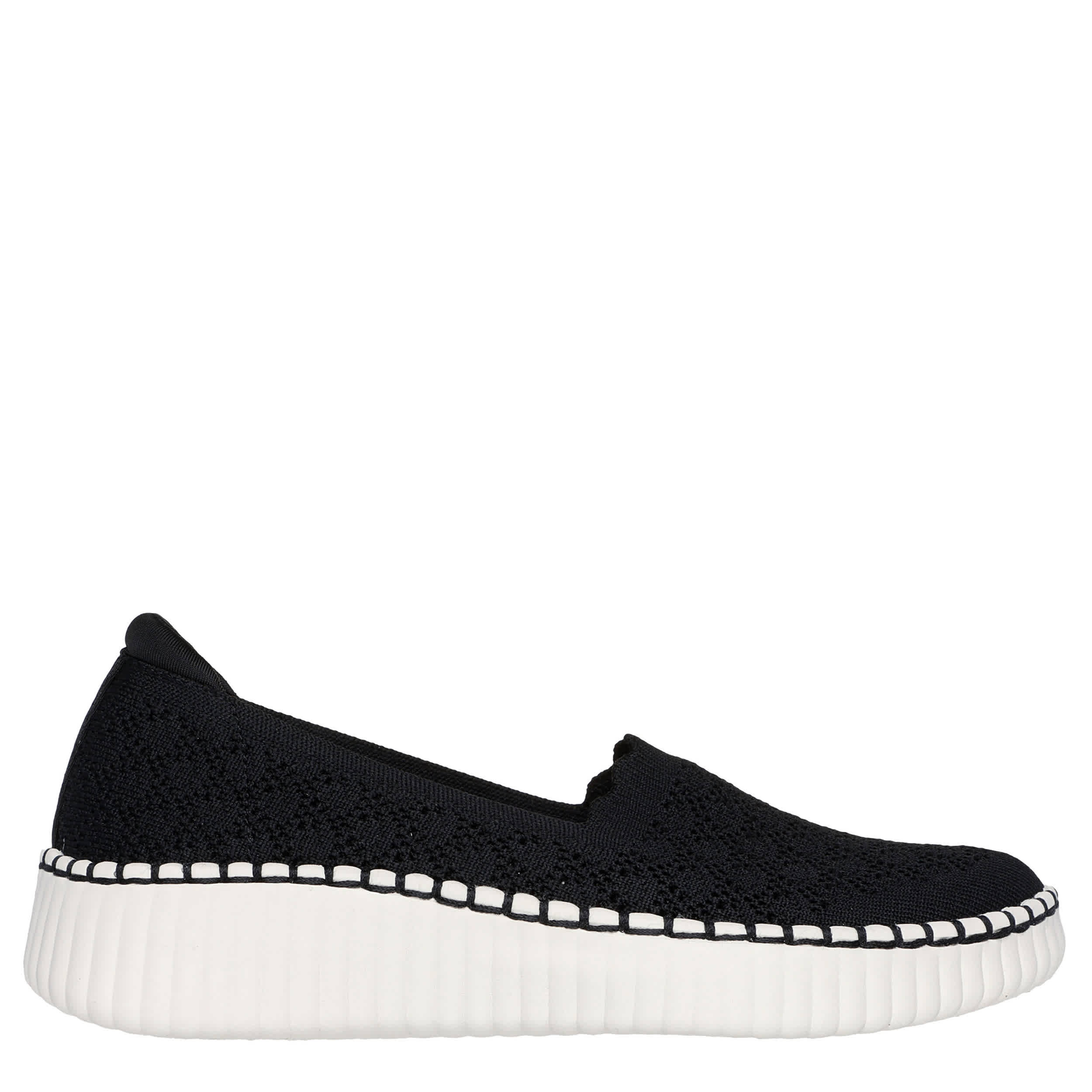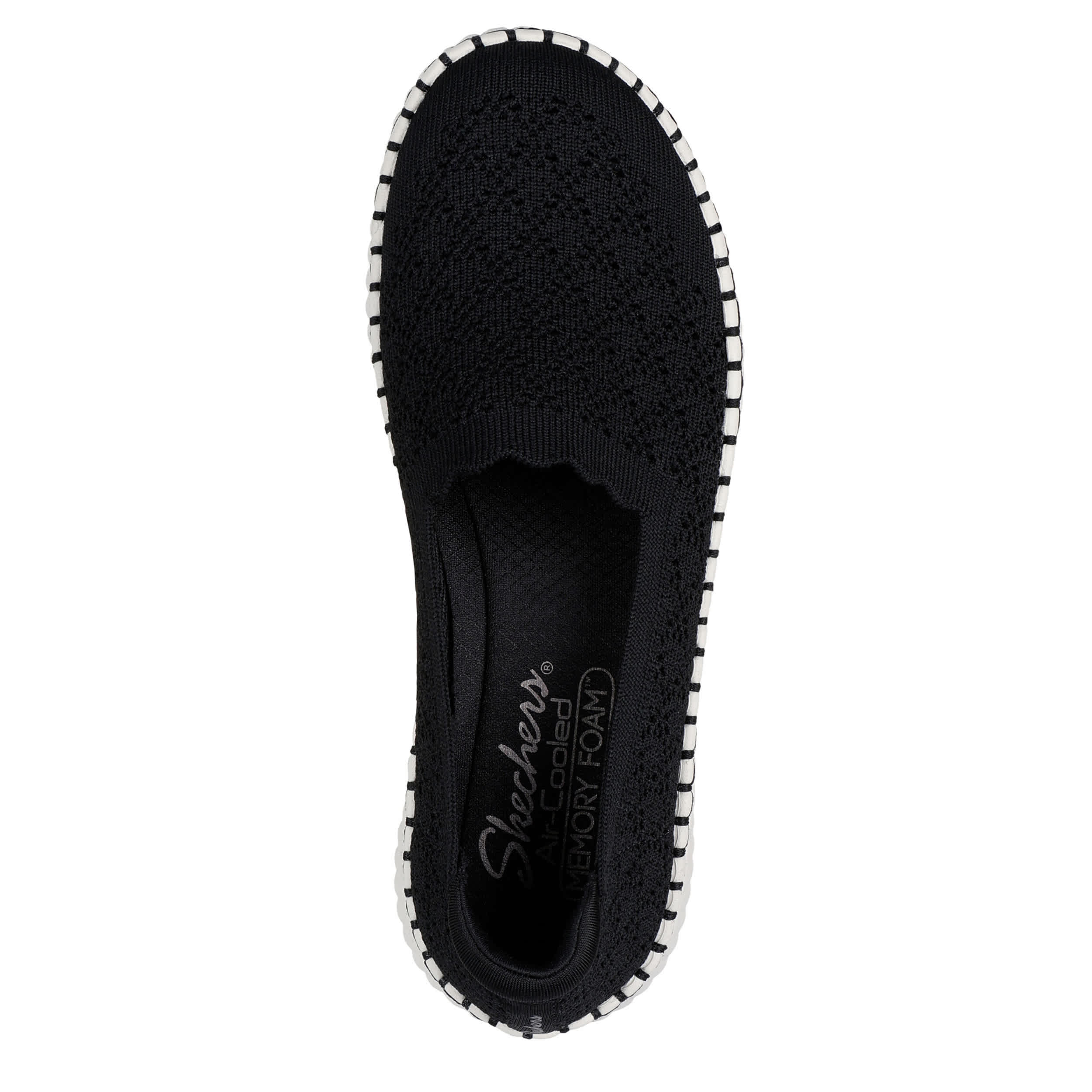 Style through everyday in the Wilshire Blvd women's slip-on sneaker from Skechers. Featuring a Stretch Fit® crochet knit upper with a scalloped trim, this simple shoe is machine washable for easy maintenance. The Skechers Air-Cooled Memory Foam® insole cushions every step while the flat outsole offers flexible traction.