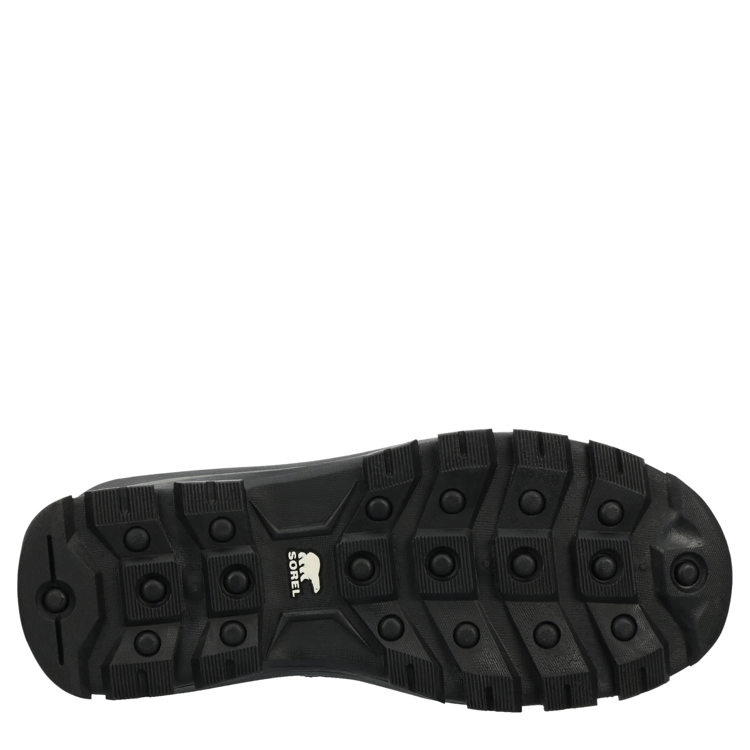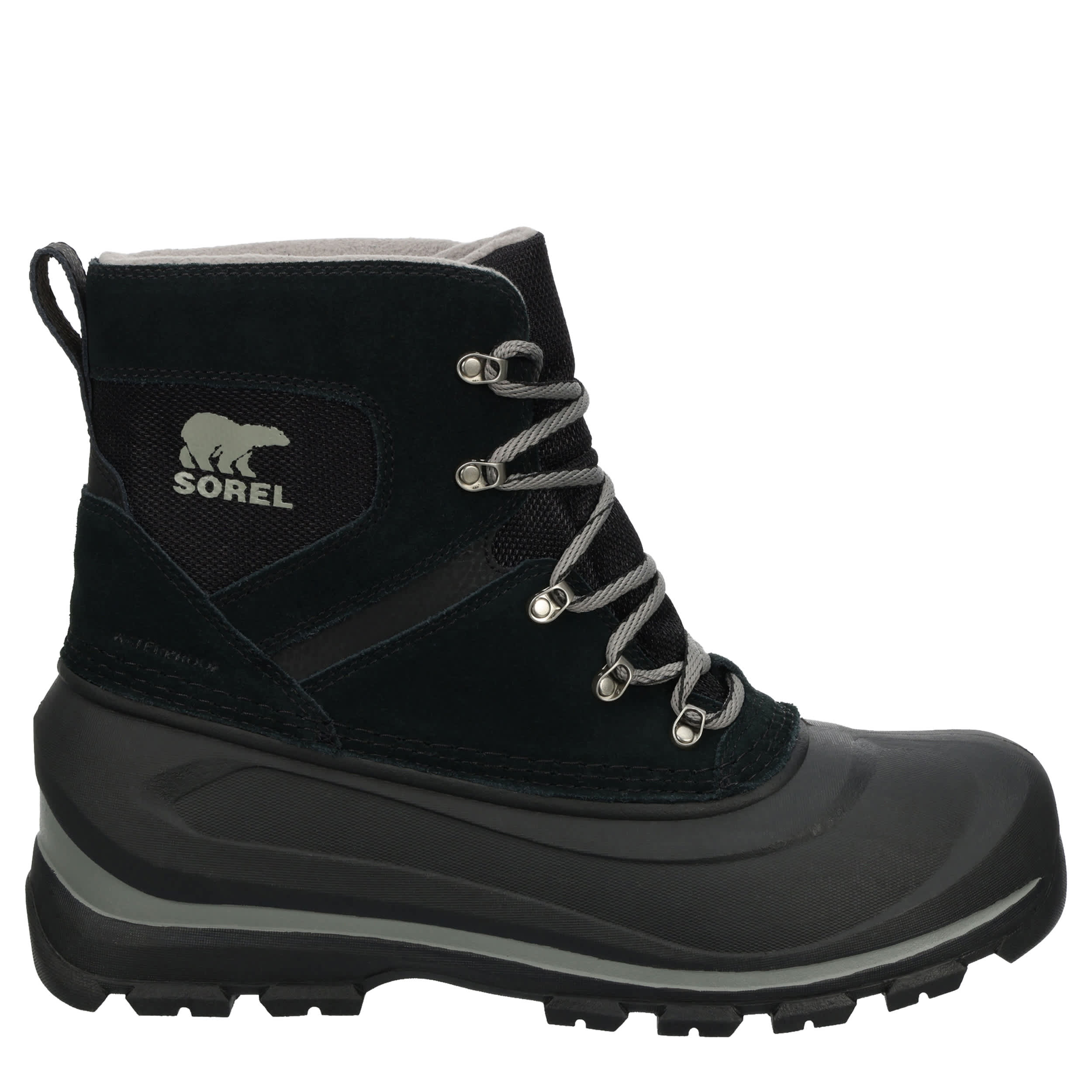 Trudge on in the SOREL BUXTONâ„¢ Lace men's snow boot. With a seam-sealed waterproof suede leather & textile upper featuring a textile lining for extra comfort, this sneaker-style boot is warm with a bonded felt frost plug in the midsole. The insulation protects against the cold while the injection-molded outsole aids with traction.