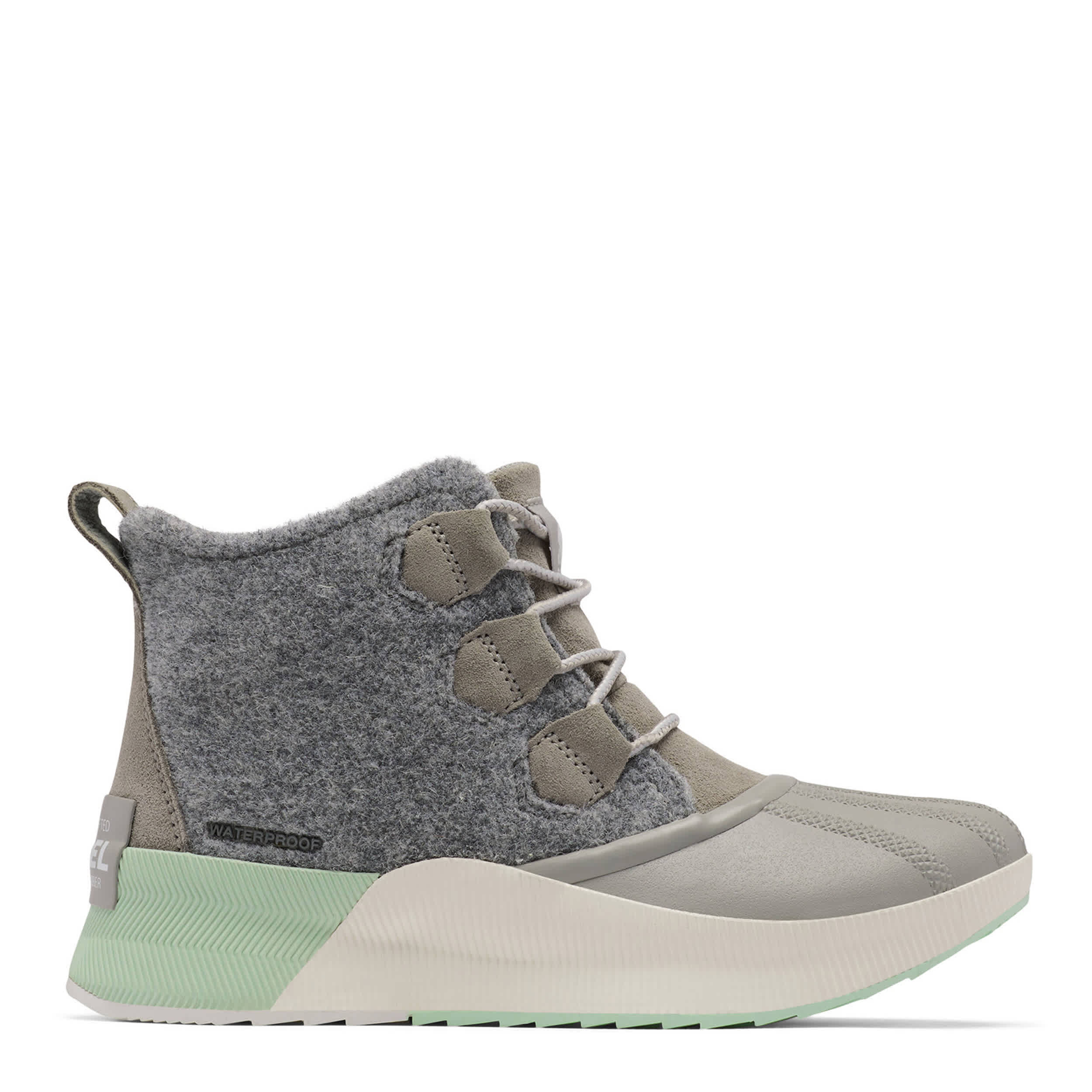 Hop around town feeling well-equipped for the weather in the Out N About III Classic women's boot from Sorel. Its waterproof suede, leather or felt combination instantly feels cozy, with easy on-off laces and the explore all-day comfort of an EVA footbed. A thicker sole with enhanced traction delivers extra grip on wet surfaces and its beautiful design with neutral colors matches any winter or rain jacket you pair it with.
