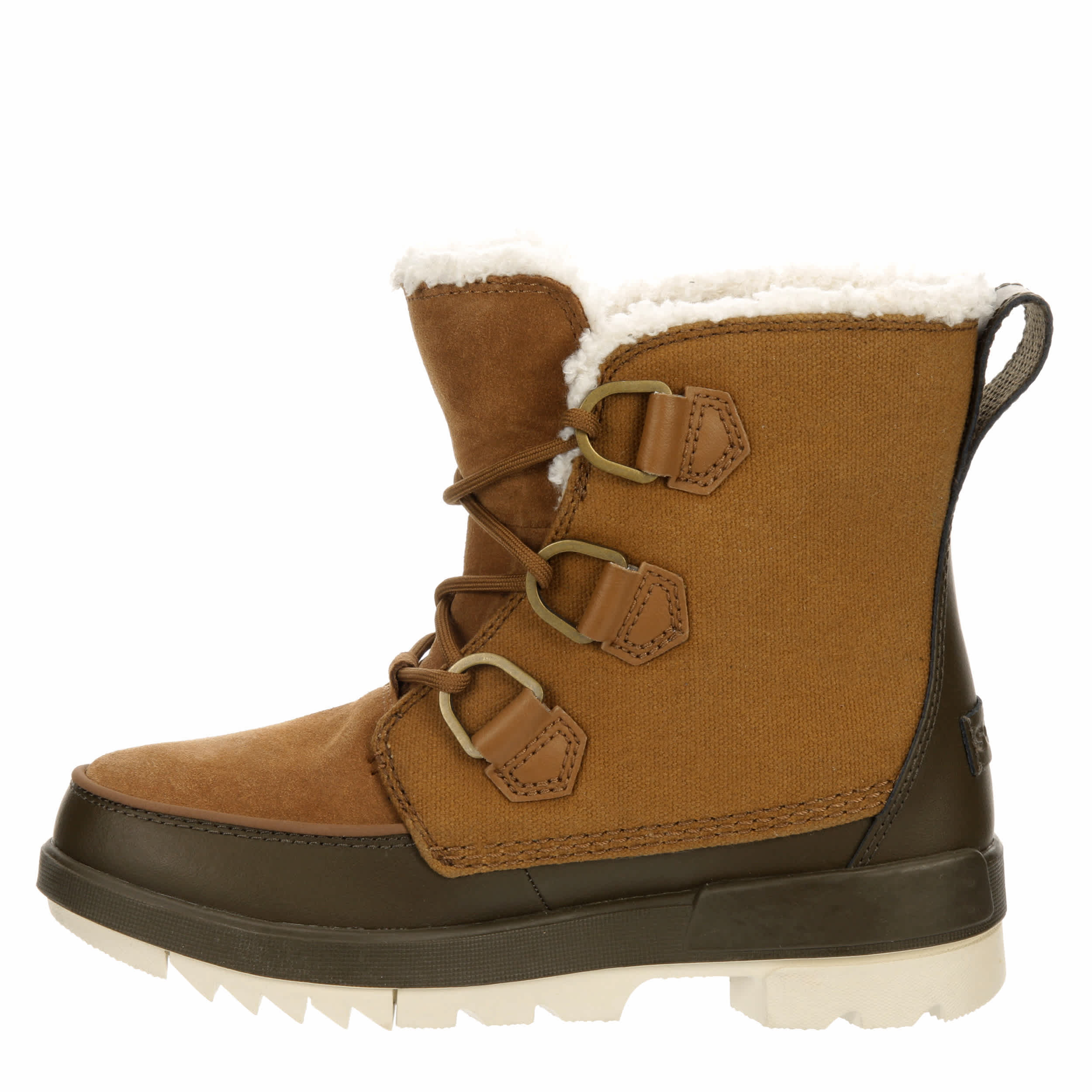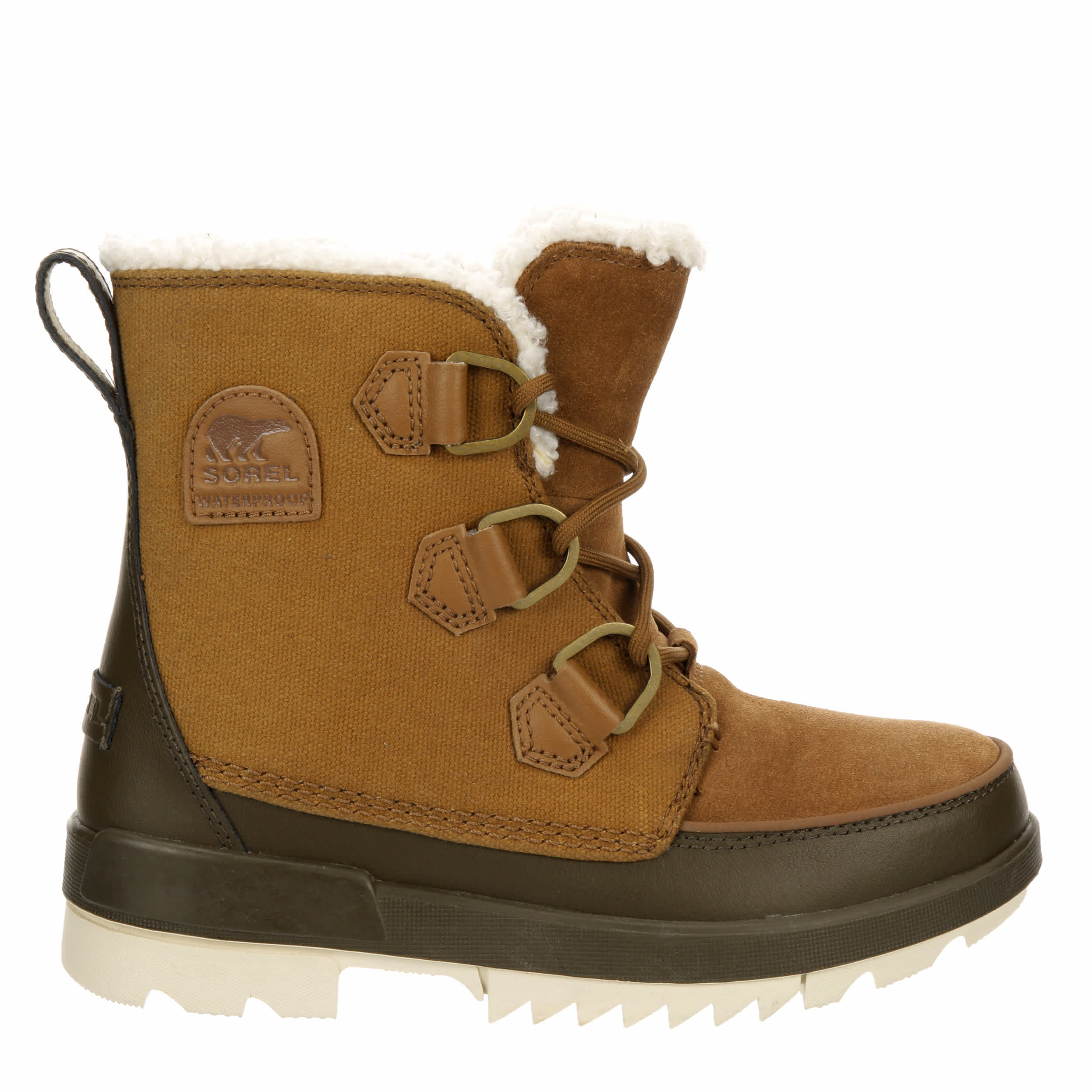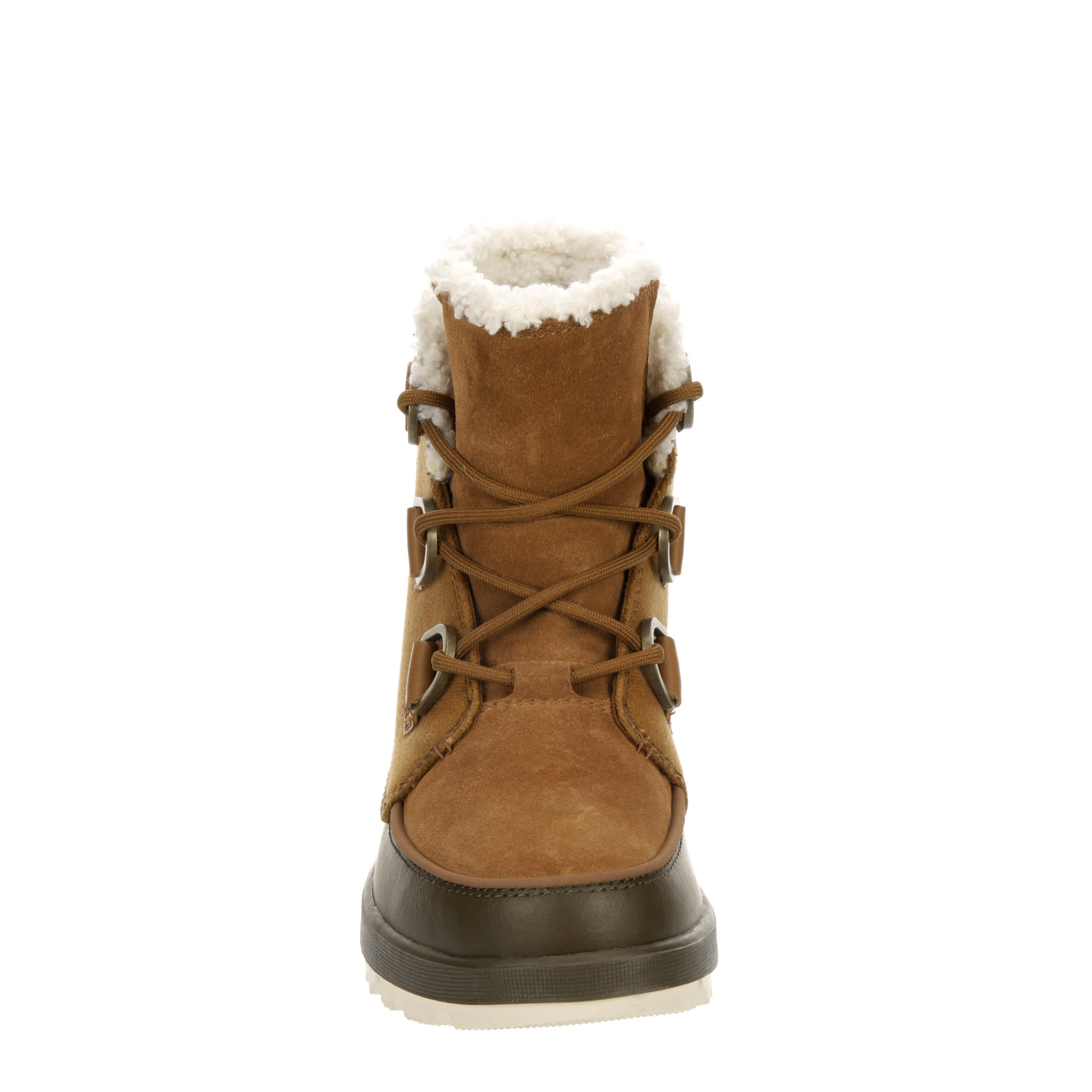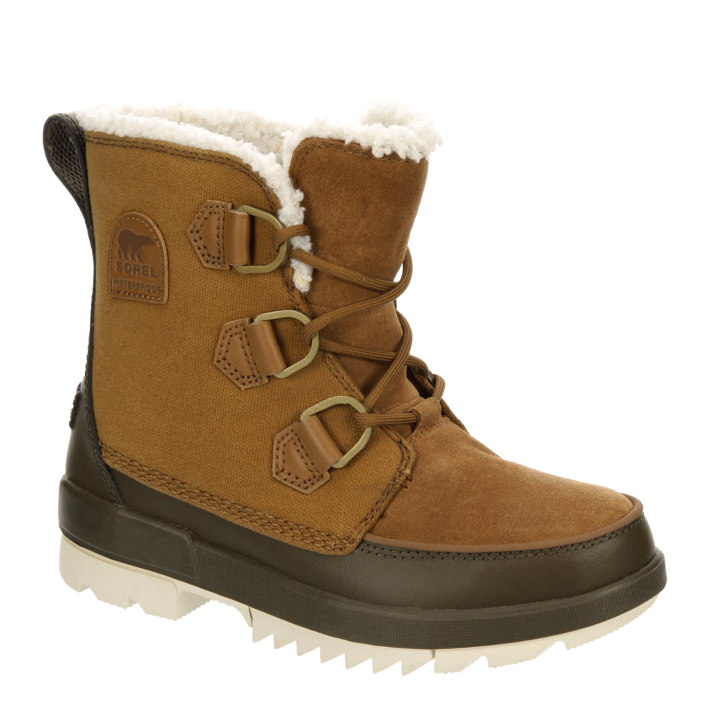 You, too, will become a fan of the Tivoli IV women's winter boot from Sorel. With an OutDry wateproof suede & synthetic coated leather upper featuring a faux fur or faux shearling cuff for extra warmth, this D-ring laced boot also has a slight platform for added leverage in the snow. The EVA footbed cushions while the rubber outsole helps during those treks through the snow when you'd rather be home already.