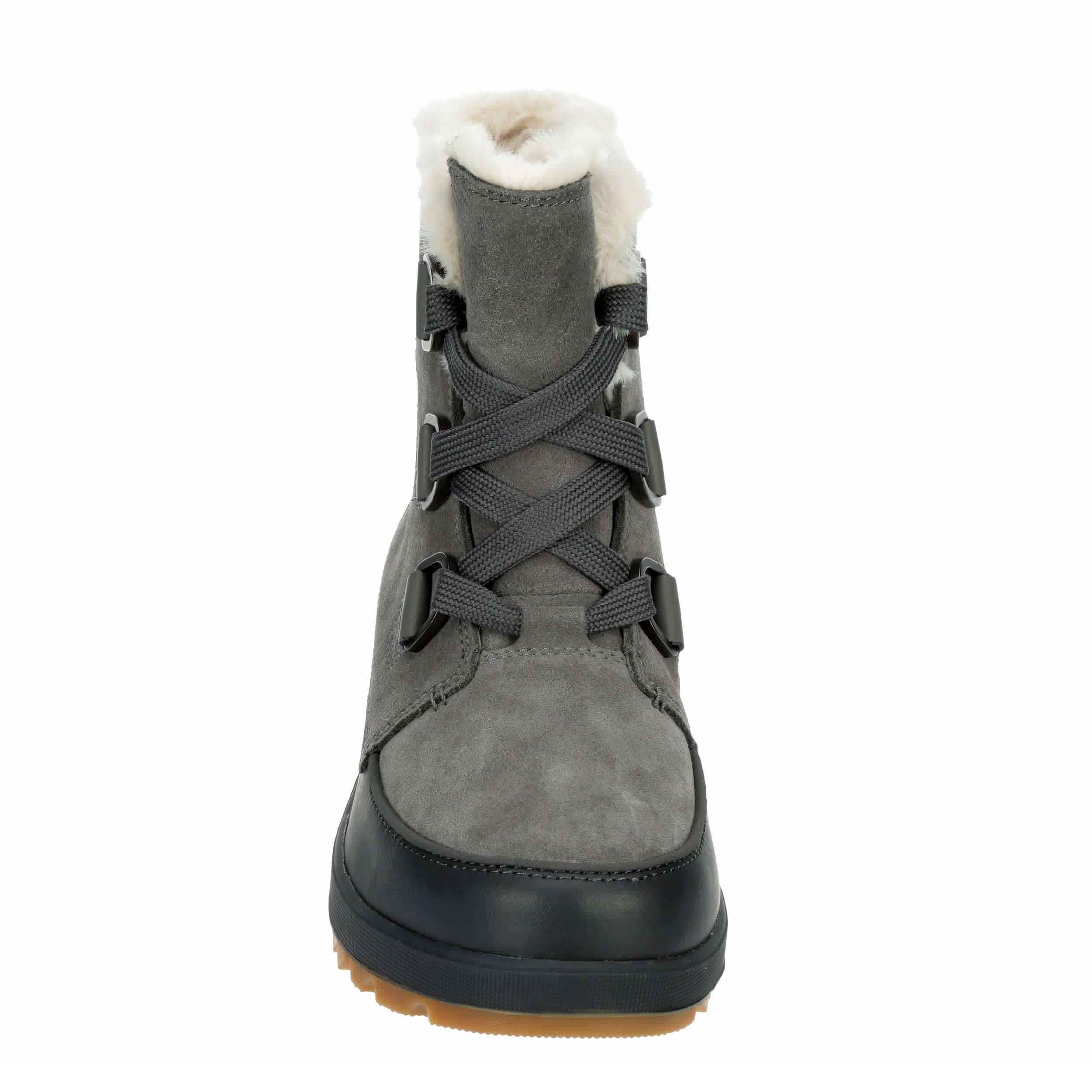 You, too, will become a fan of the Tivoli IV women's winter boot from SOREL. With an OutDry waterproof suede & synthetic coated leather upper featuring a fauxshearling cuff for extra warmth, this D-ring laced boot also has a slight platform for added leverage in the snow. The EVA footbed cushions while the rubber outsole helps during those treks through the snow when you'd rather be home already.