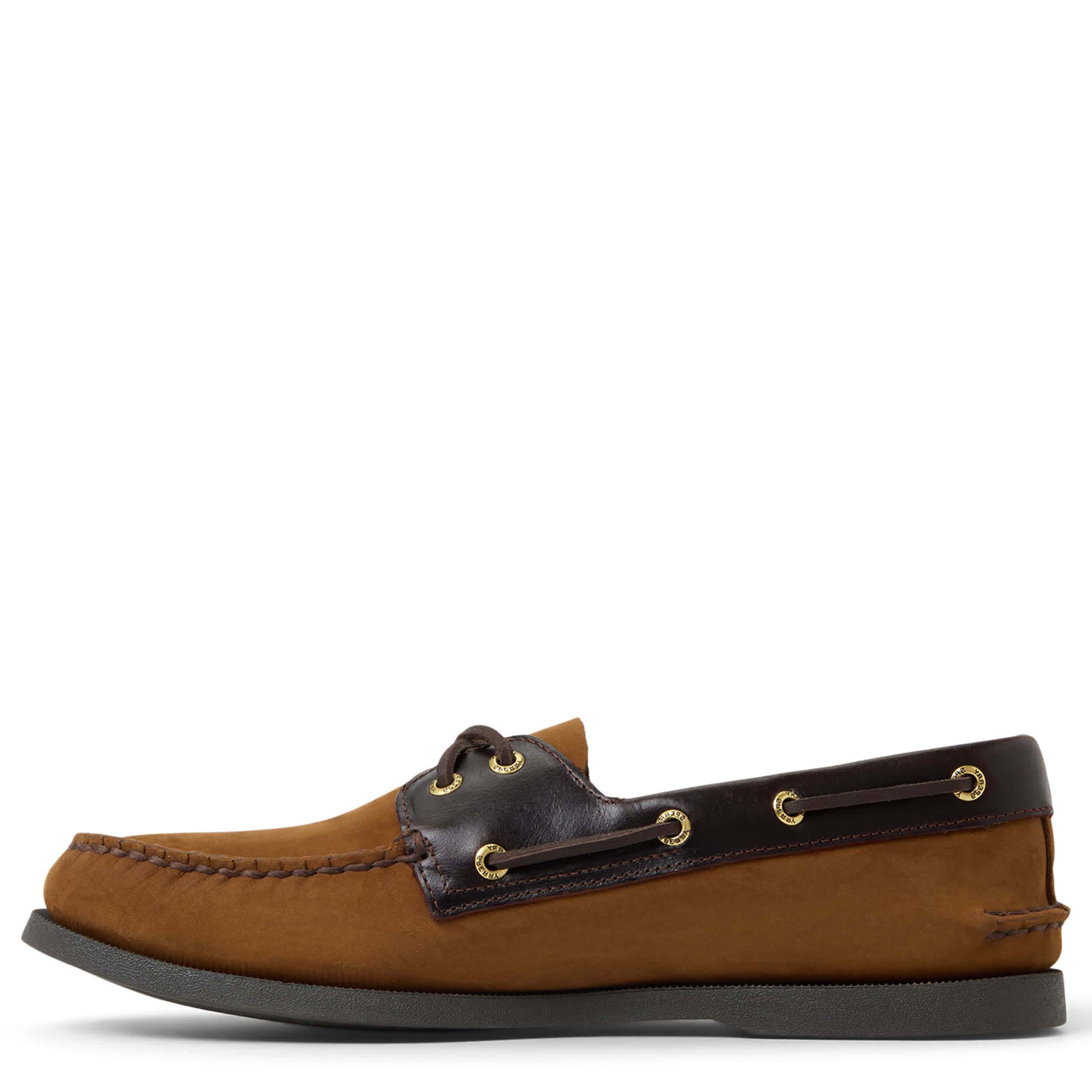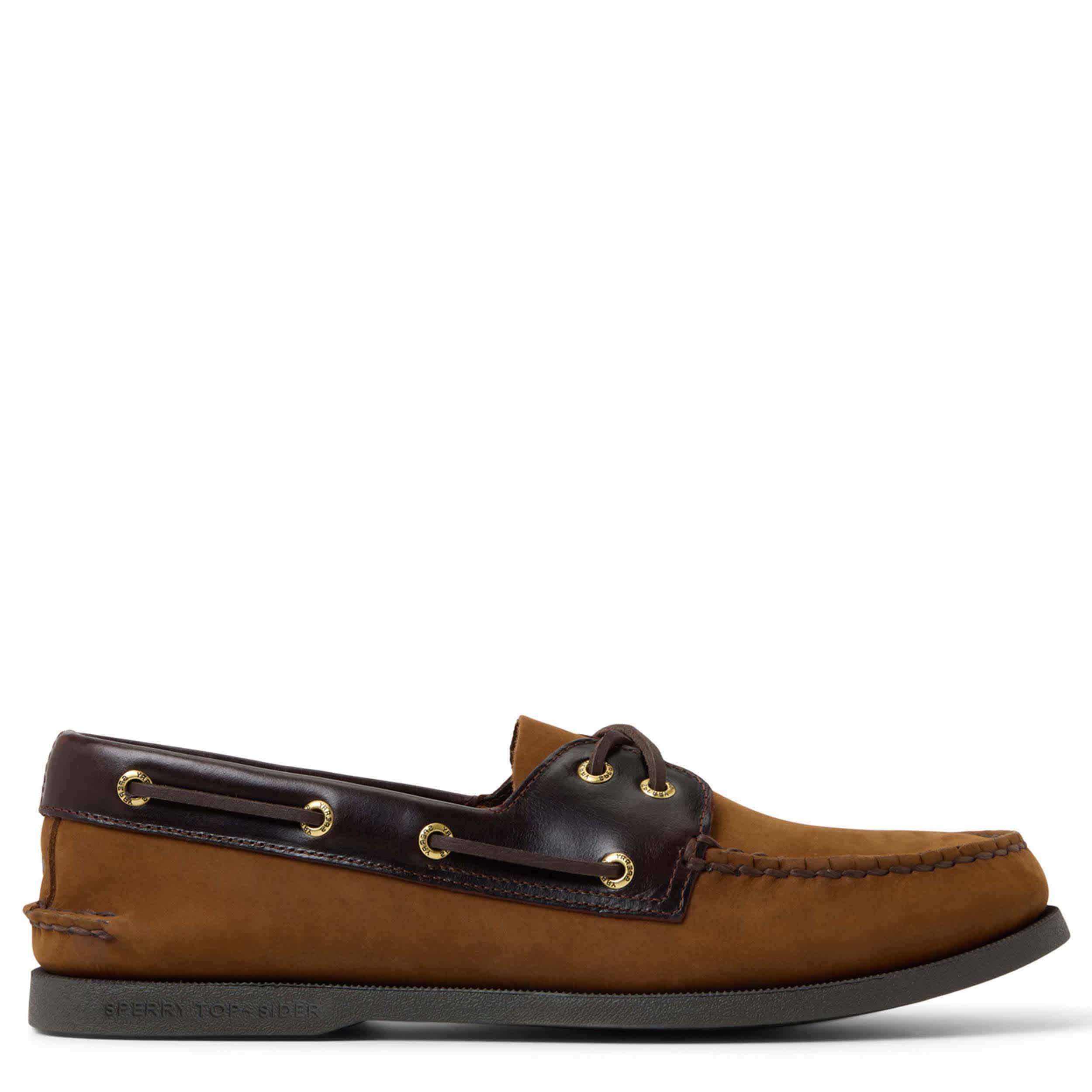 Sail away in style with the Sperry A/O 2-Eye men's boat shoe. Featuring a leather upper with a 360° lacing system, this shoe offers a preppy, yet casual look. The footbed provides all-day comfort, while the non-marking outsole keeps you grounded for adventure.