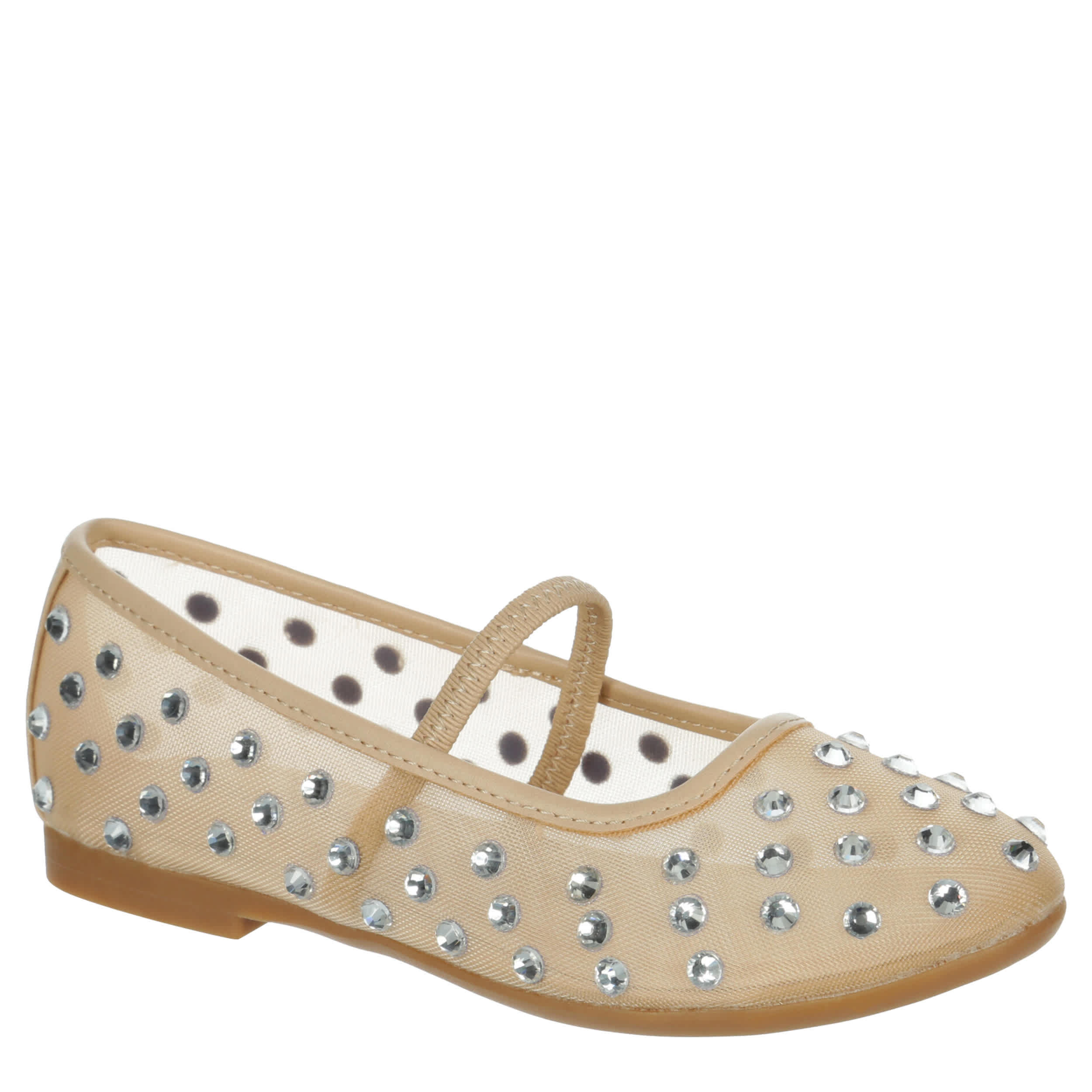 Add a little bling to her look with the Steve Madden Jbellina girls' sandal. Featuring a sheer upper with allover rhinestone detailing, this ballet flat makes all her outfits sparkle. The footbed soothes, while the durable outsole supports her all day long.