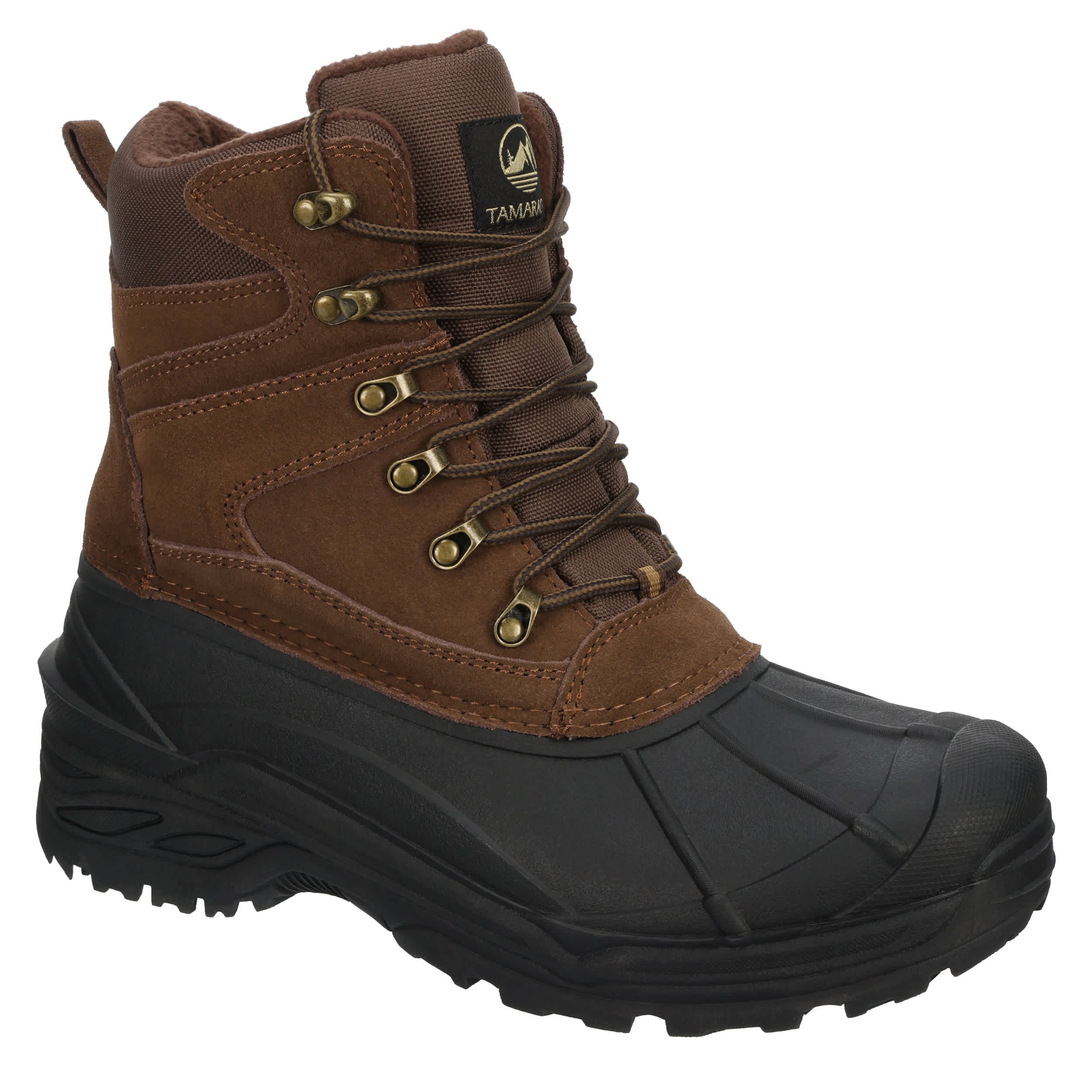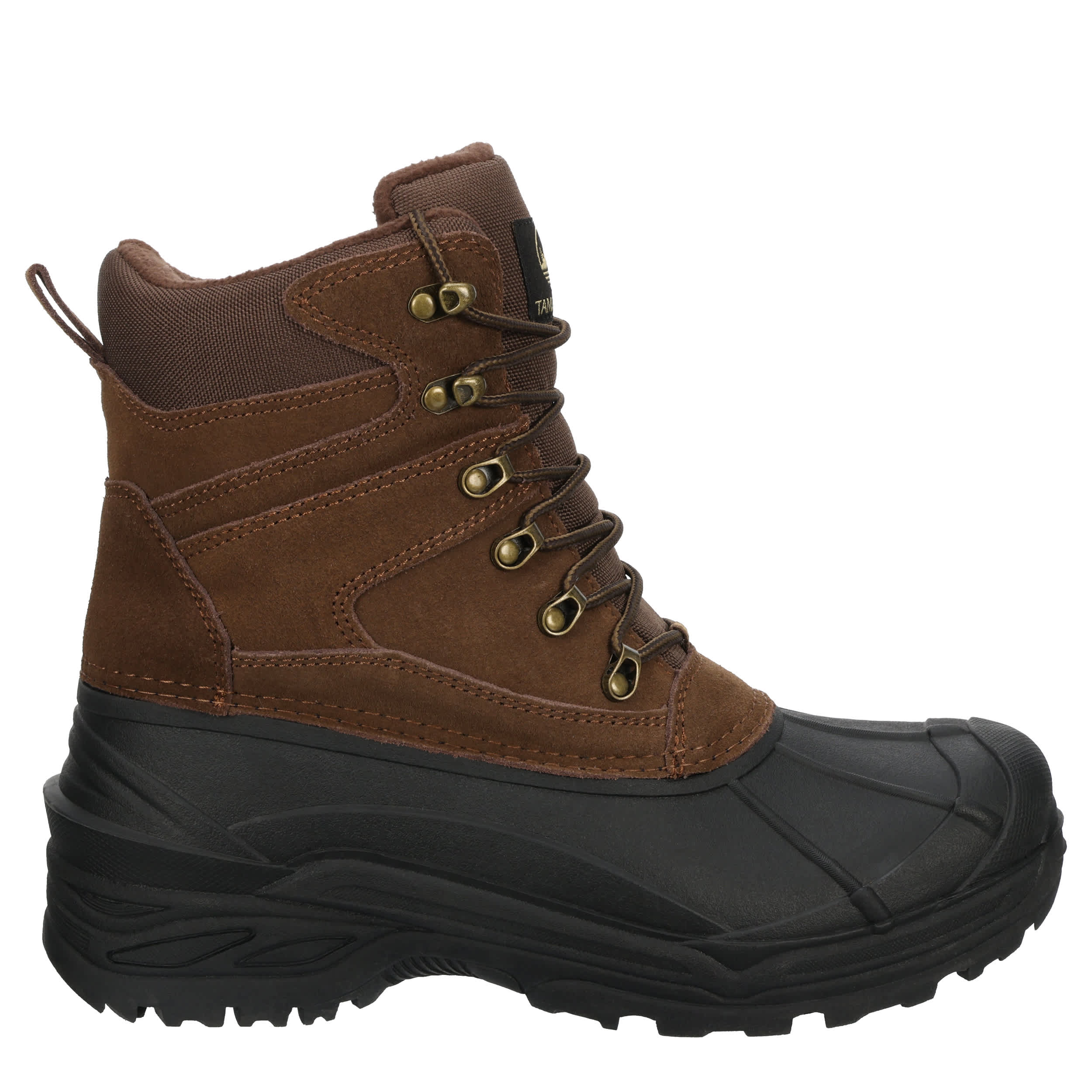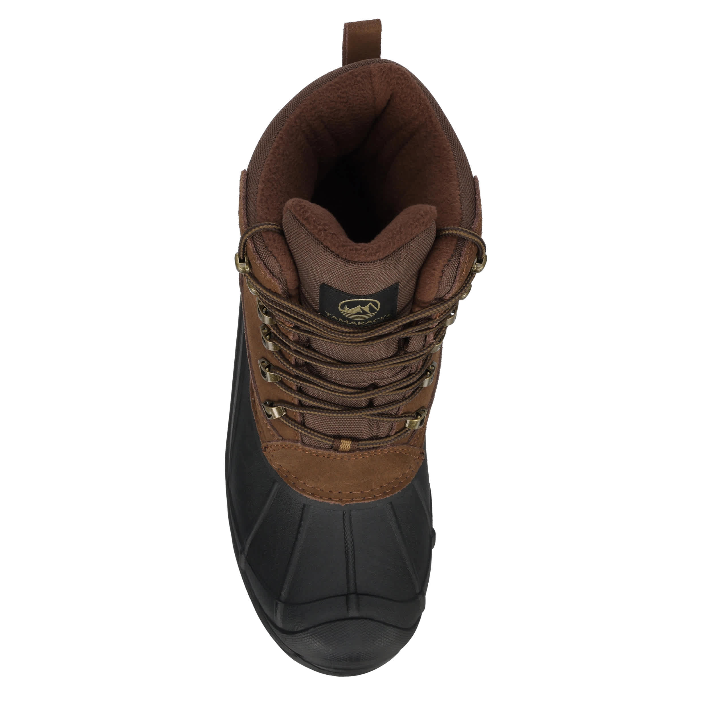 Prepare for what winter brings in the Pac men's snow boot from Tamarack®. Featuring a faux leather upper with a rear pull tab for easy entry, this versatile boot also has 200G Thinsulate insulation to keep you warm. The solid construction and a textured outsole promise durable wear with great grip during slippery conditions.