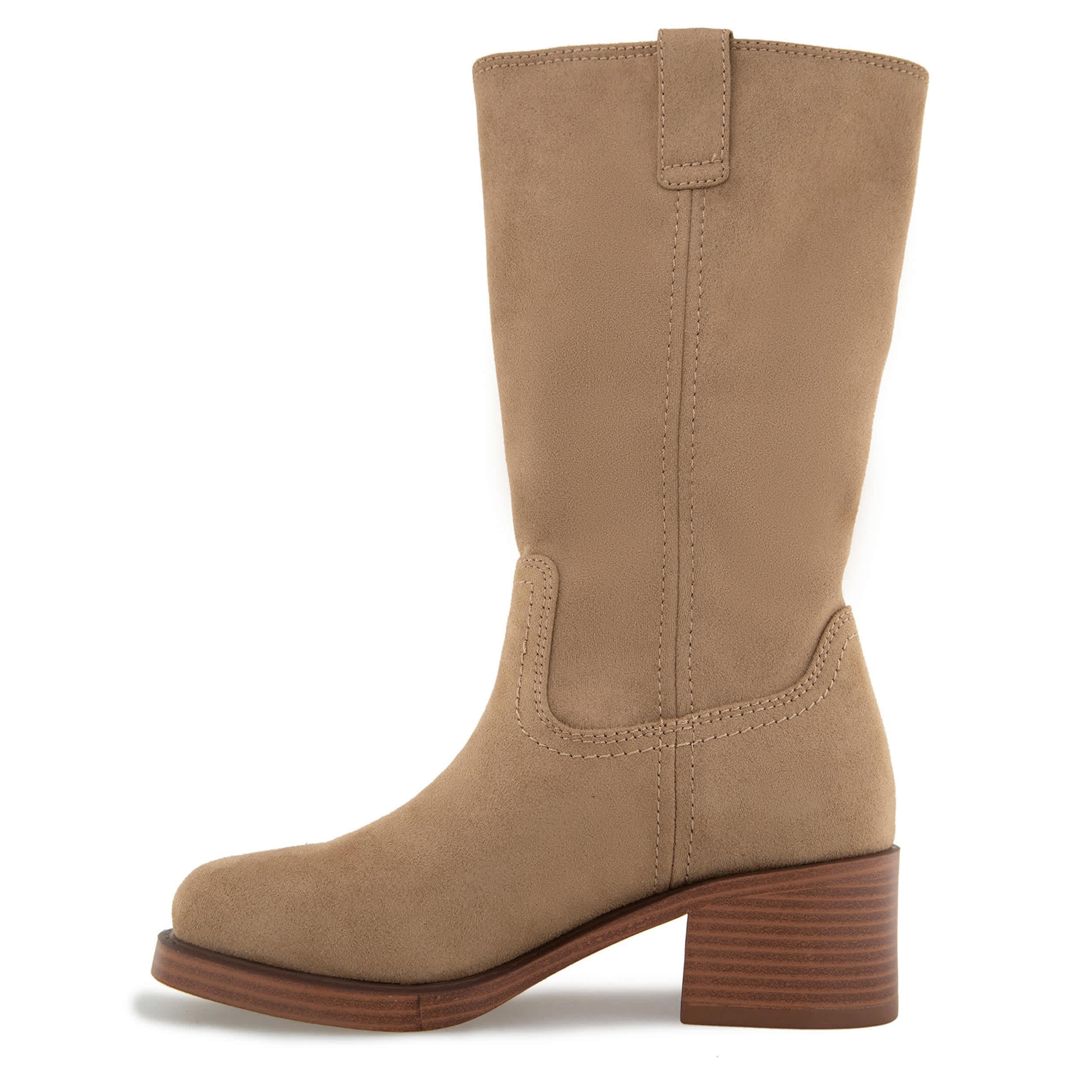 Travel through fall in the UNIONBAY Maude women's knee high boot. With a soft faux suede upper featuring side pull tabs for easy entry, this mid-calf boot is stylish day or night. The footbed cushions you foot while the sturdy heel offers stability.