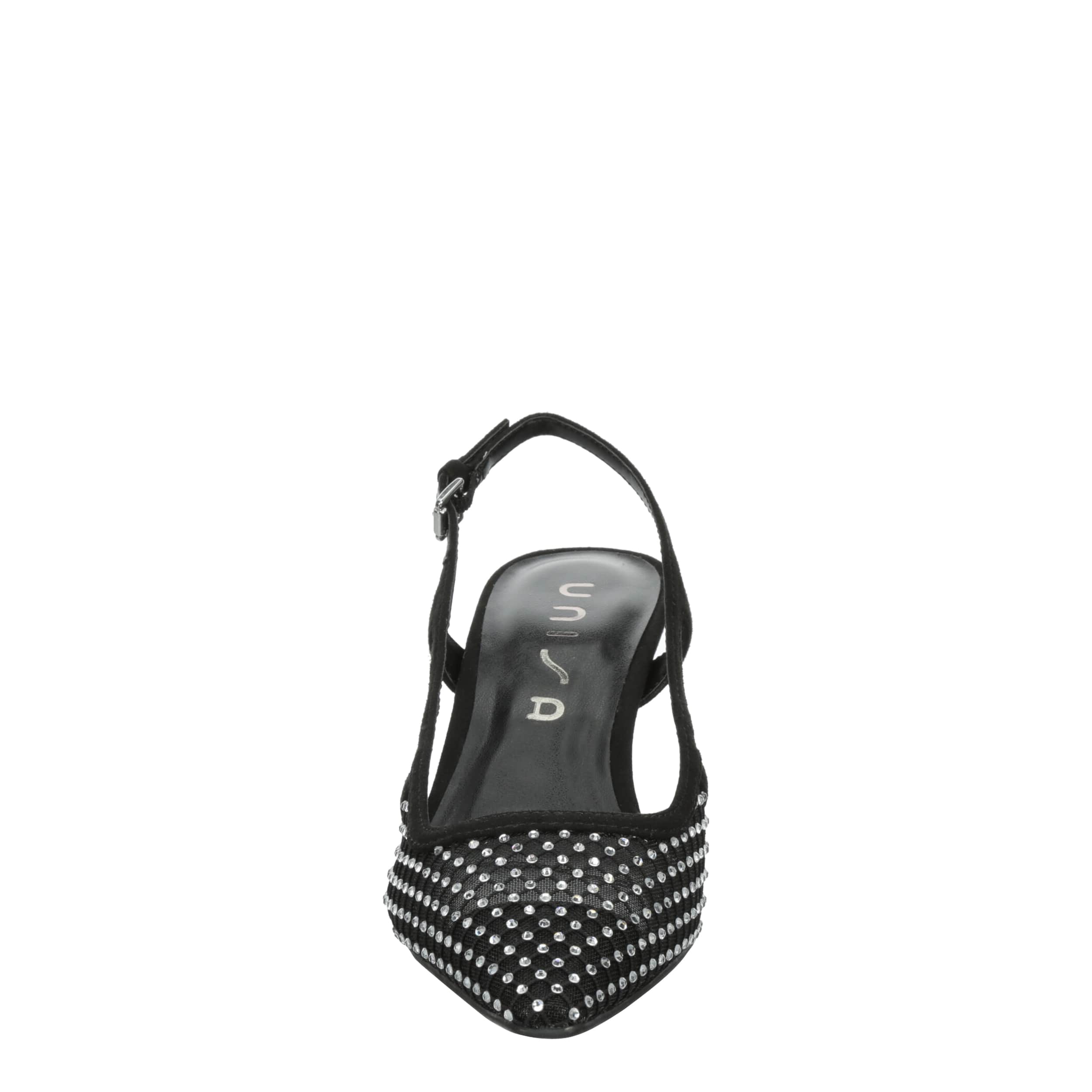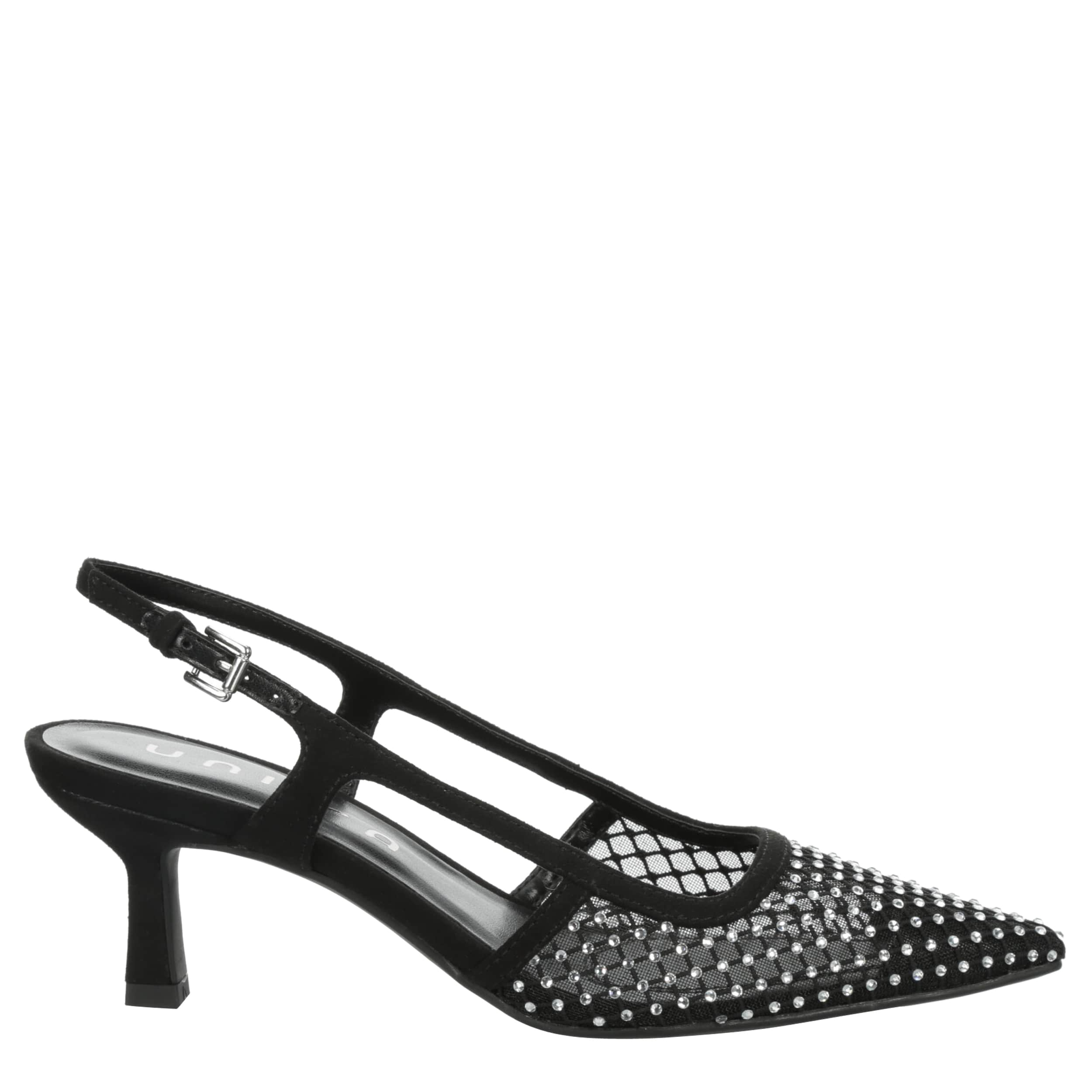 Stylish and unique in the Unisa Jaklin pump. Featuring a mesh & synthetic upper with rhinestone detailing, this shoe also has extra covering over the toe. The insole soothes, while low heel adds enough lift.