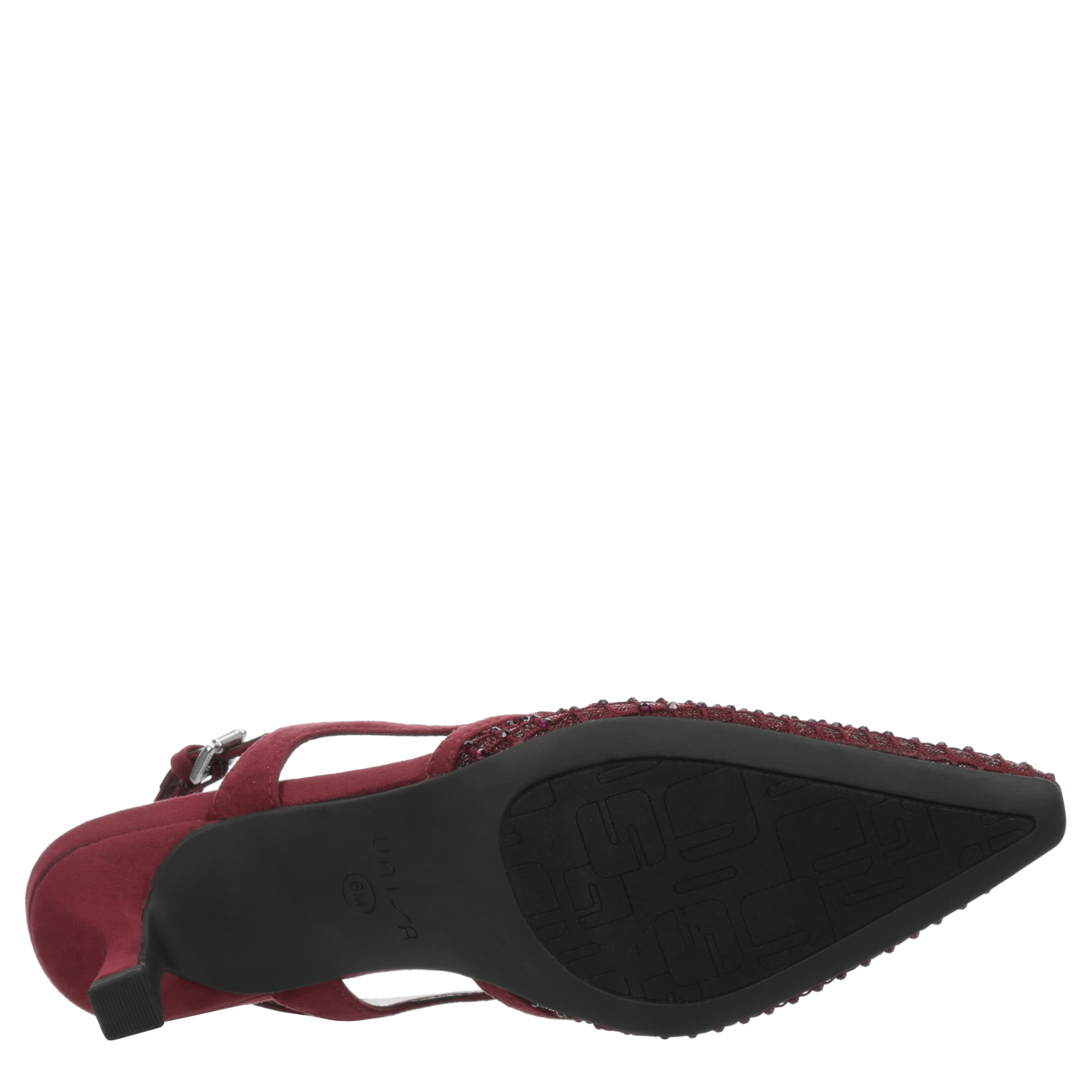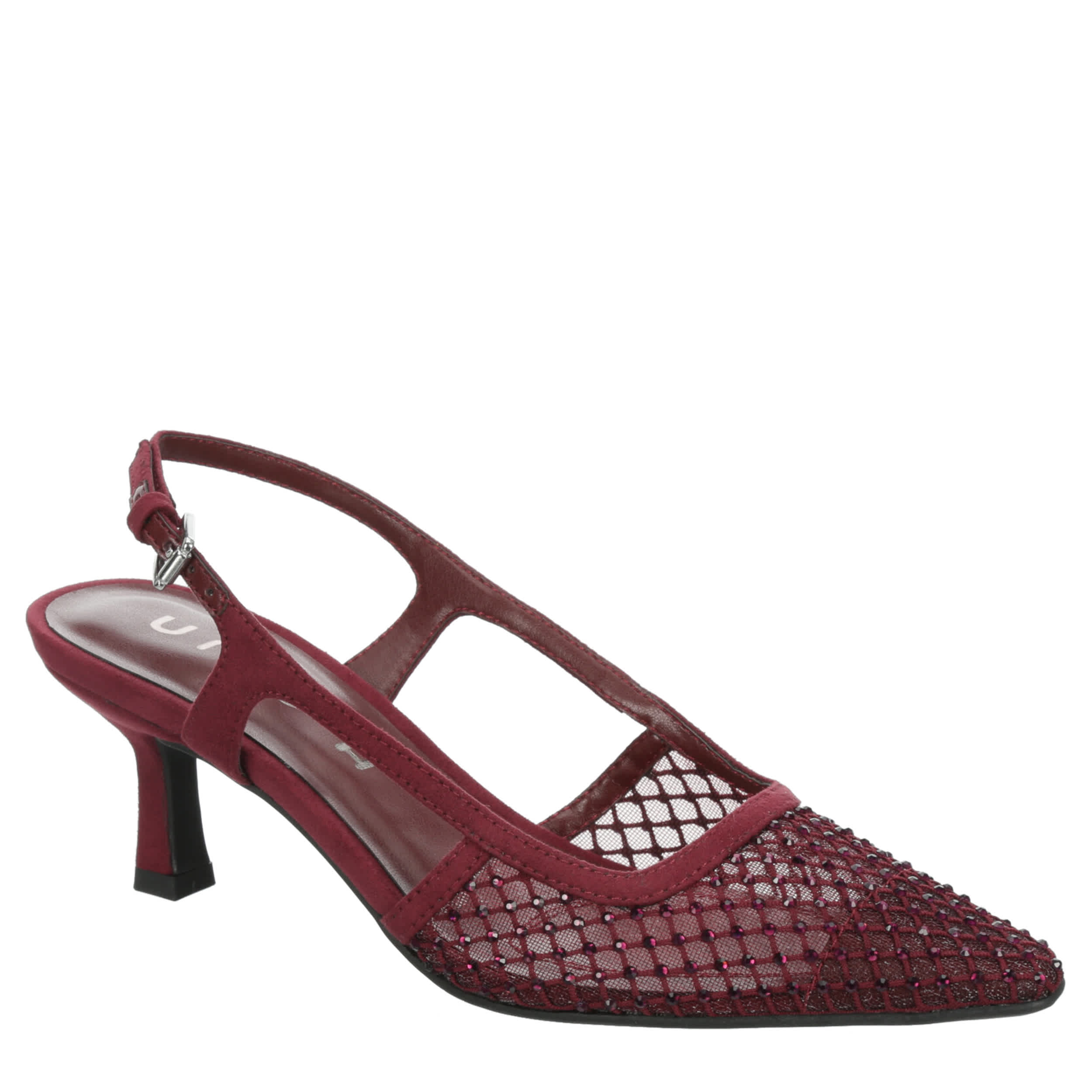 Stylish and unique in the Unisa Jaklin pump. Featuring a mesh & synthetic upper with rhinestone detailing, this shoe also has extra covering over the toe. The insole soothes, while low heel adds enough lift.