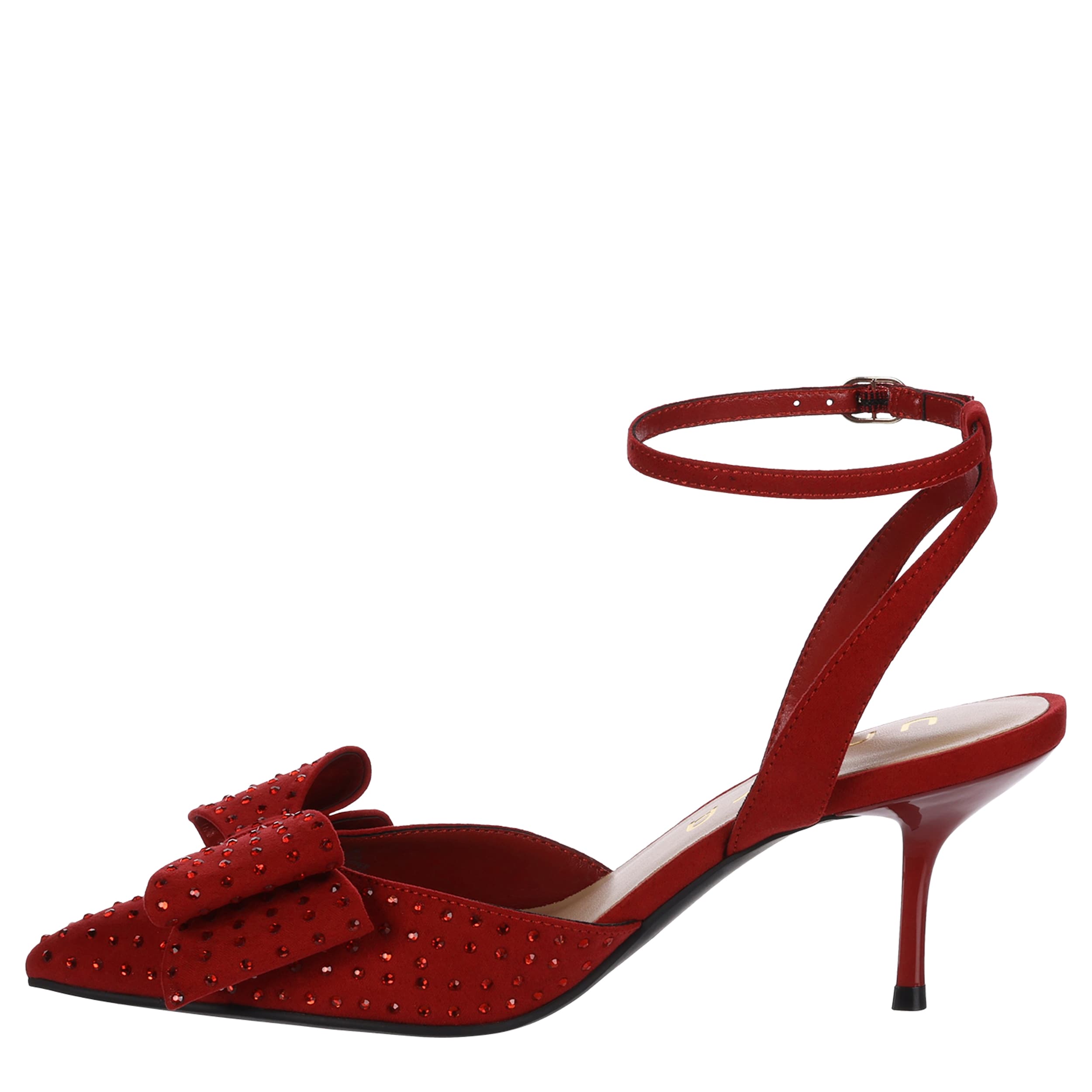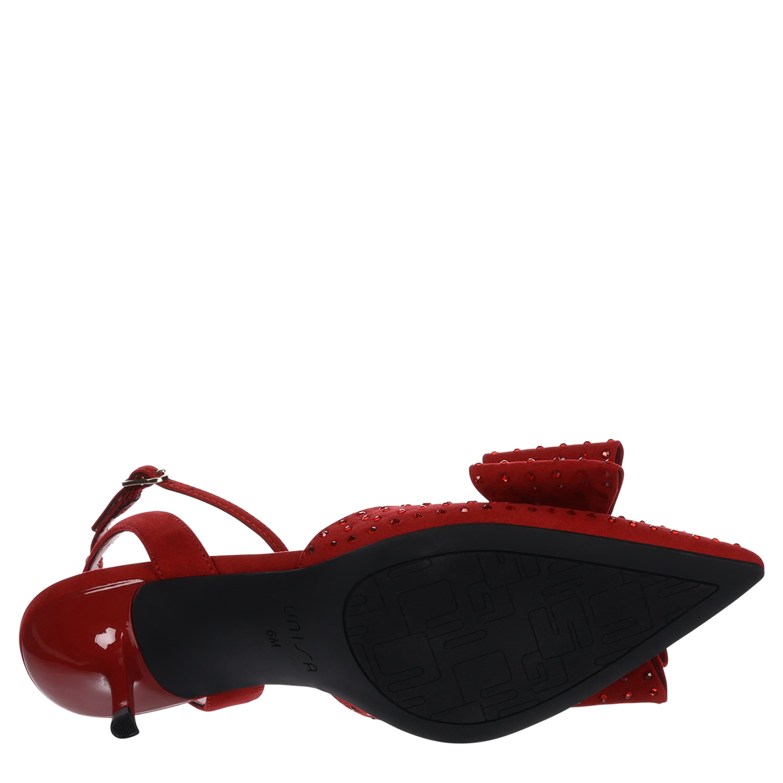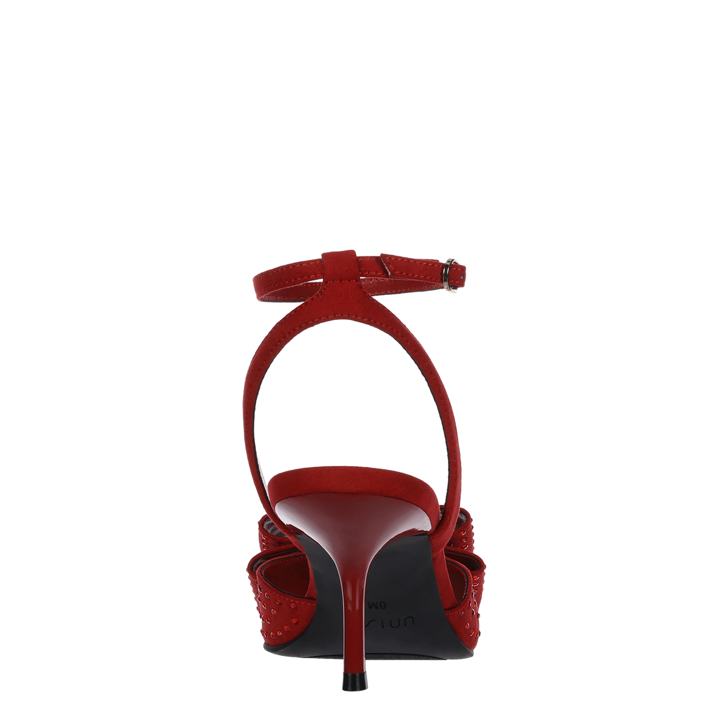 Spark conversation and shine in the Unisa Tilia pump. Featuring a faux suede upper with rhinestone detailing and a large bow on the vamp, this shoe has a sleek pointed toe and a deilcate halo strap for extra style. The insole soothes, while the heel adds just enough lift.