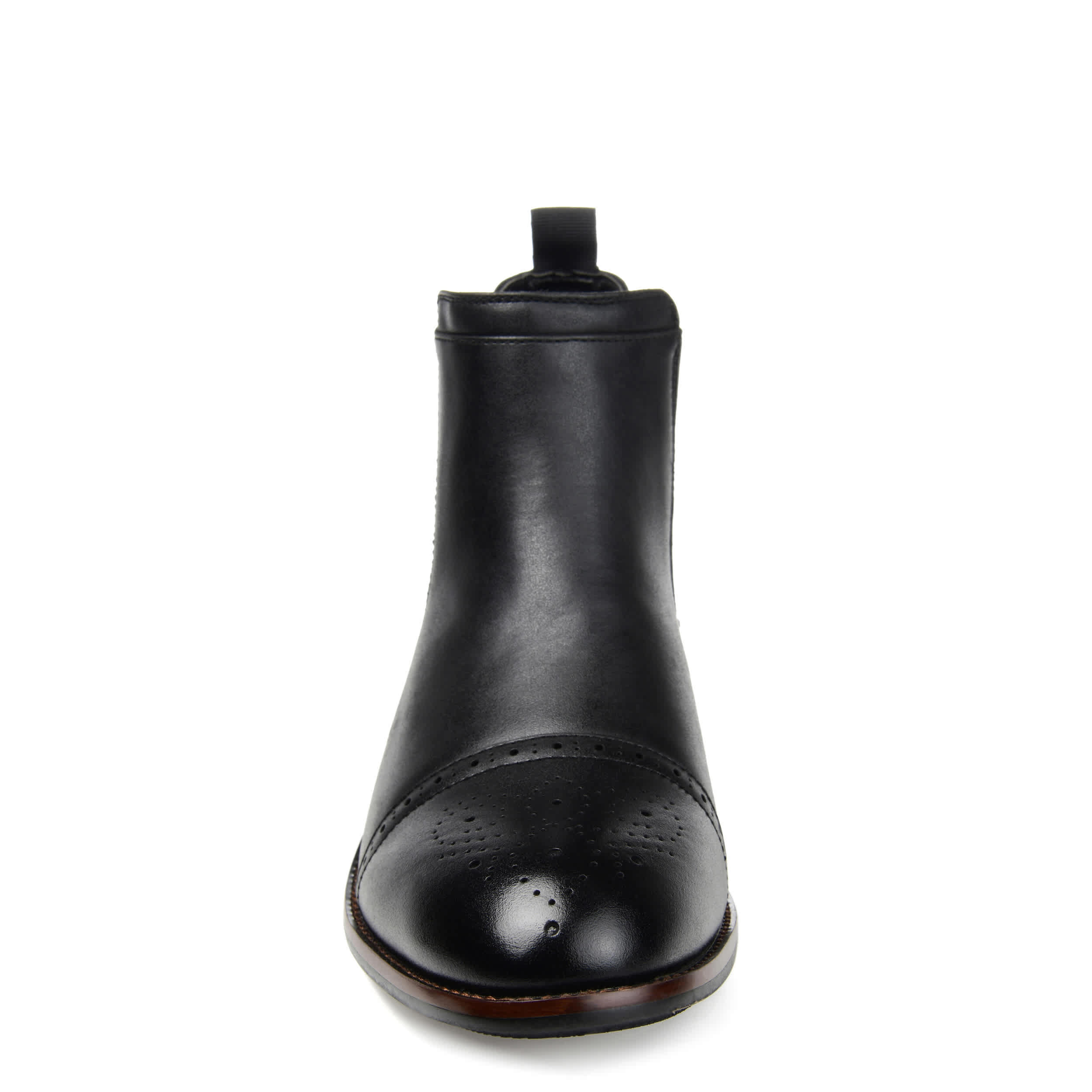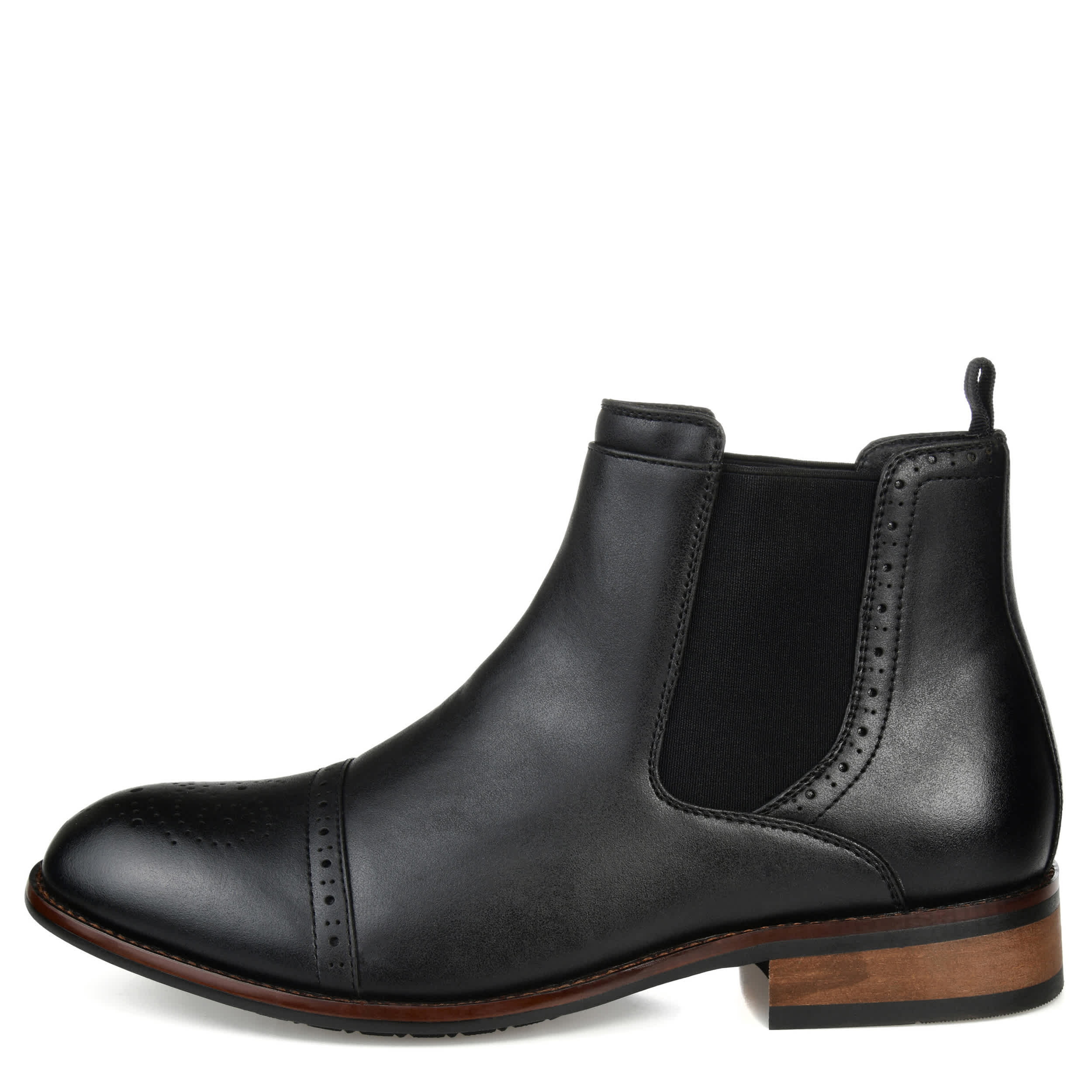 Finish off his ensemble with the Garrett Wide Widthmen's boot by Vance Co. Featuring a vegan leather upper with brogue detailing and a medallion cap toe, this Chelsea-inspired boot lends a refined appeal that's perfect for almost any occasion. The Tru Comfort Foamâ„¢footbed soothes his feet, while the rubber outsole keeps him grounded in style.