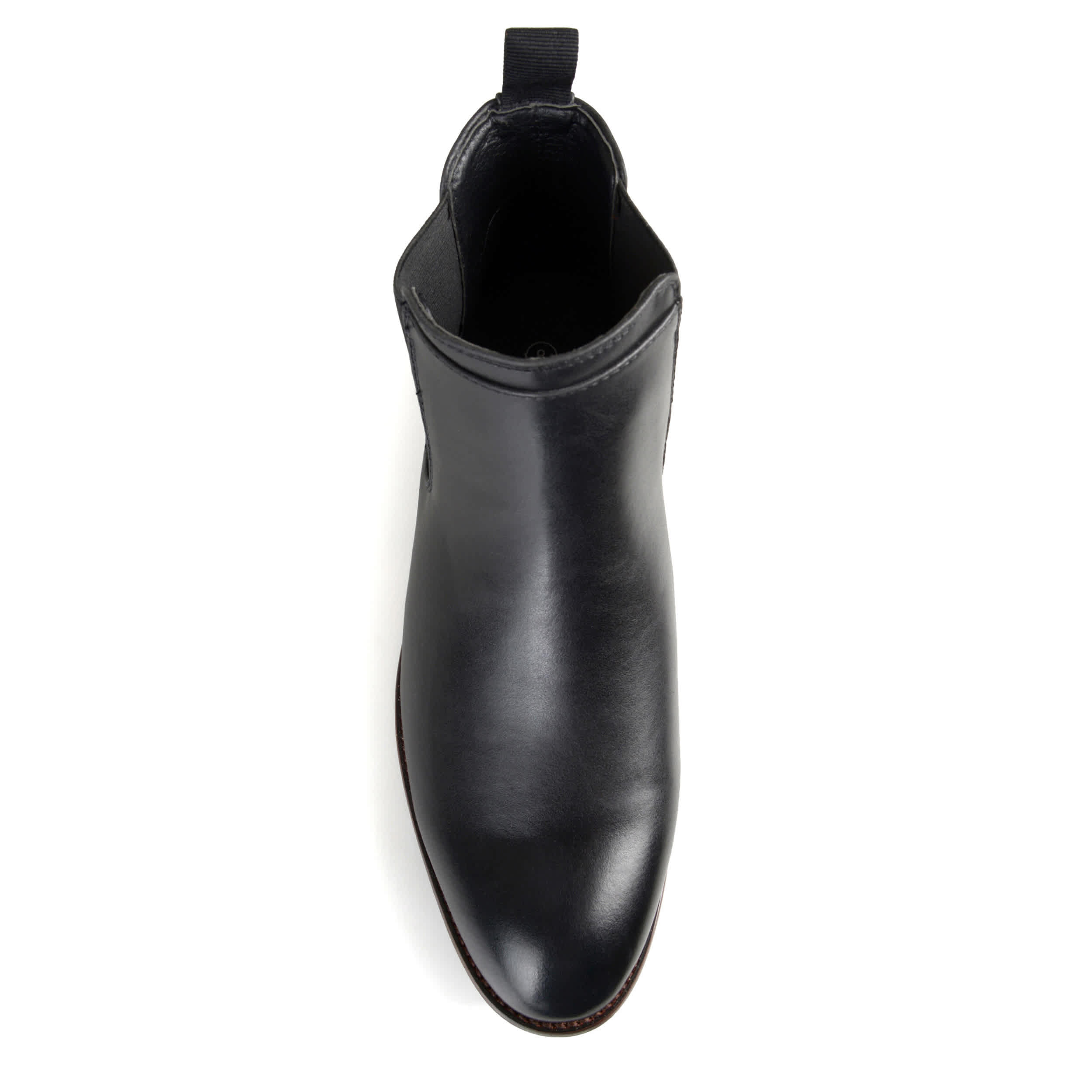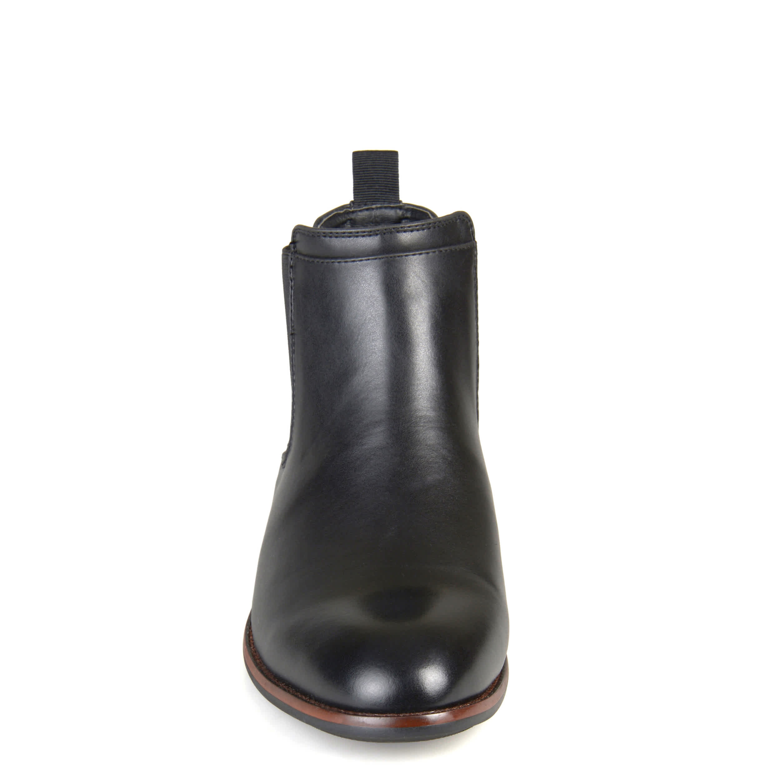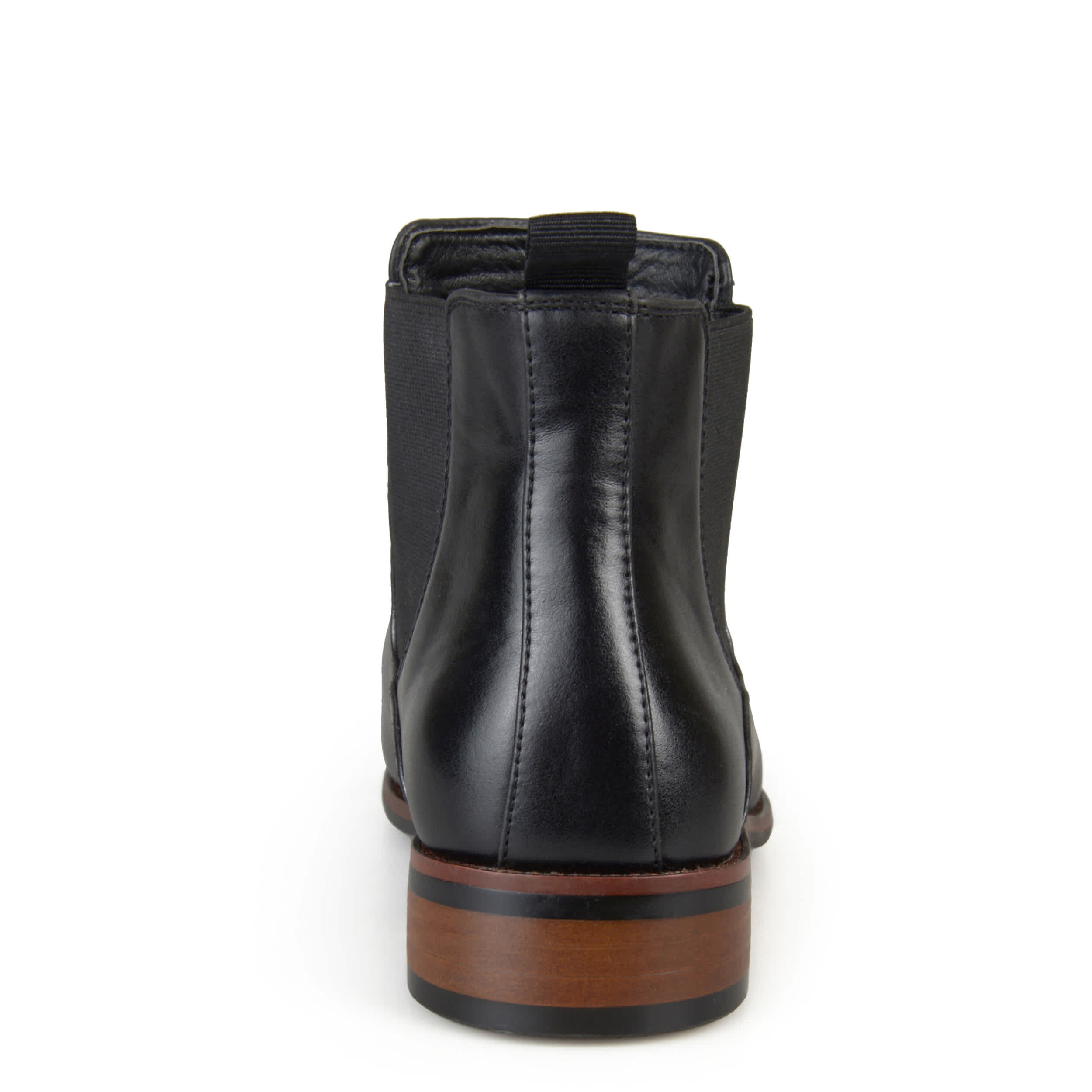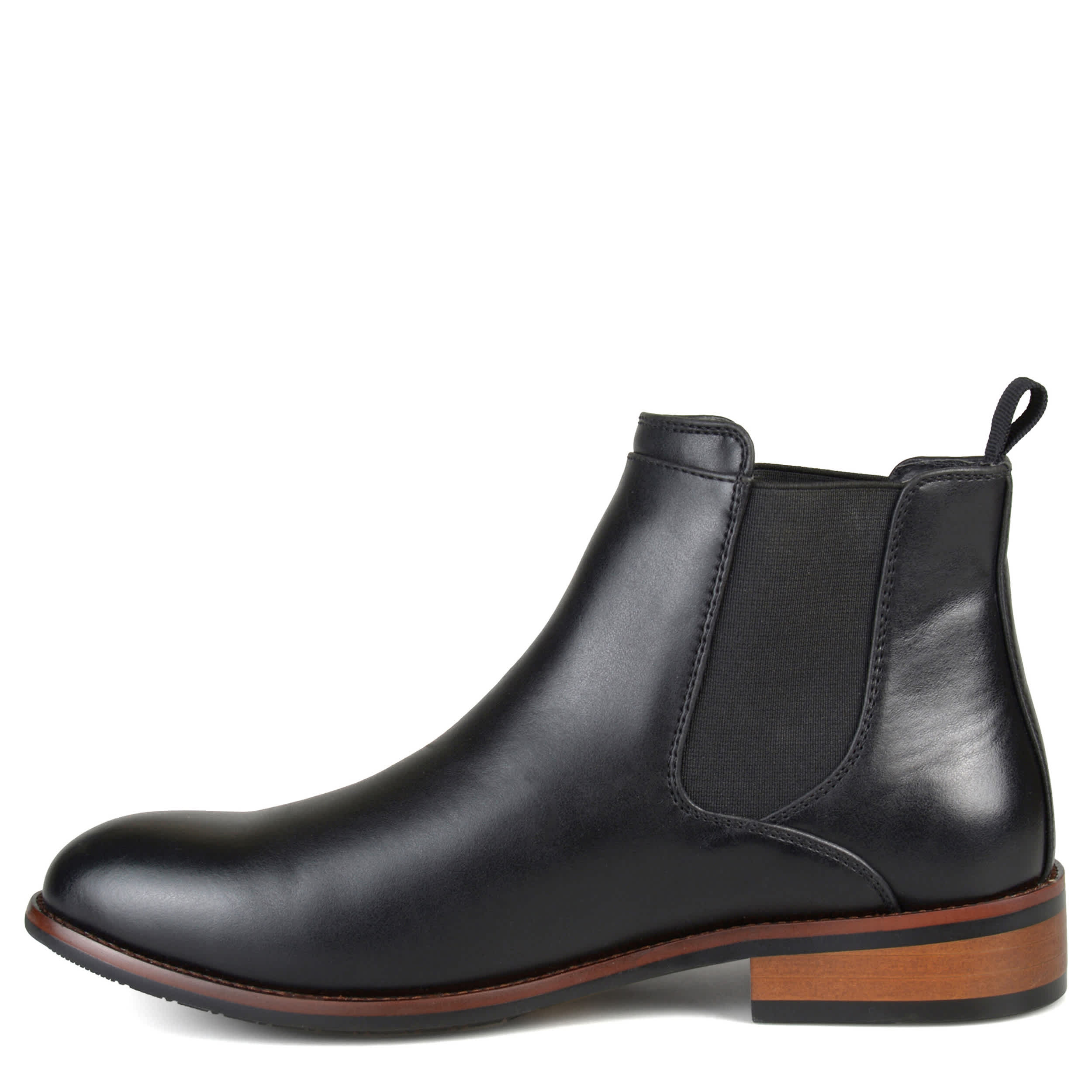 Step out confidently in the Landon Wide Width men's boot by Vance Co. Featuring a vegan leather upper with a burnished round toe, this Chelsea-inspired boot has dual elastic gores to enable an easy pull-on fit. The Tru Comfort Foamâ„¢ footbed supports your feet, while the rubber outsole provides a durable grip.