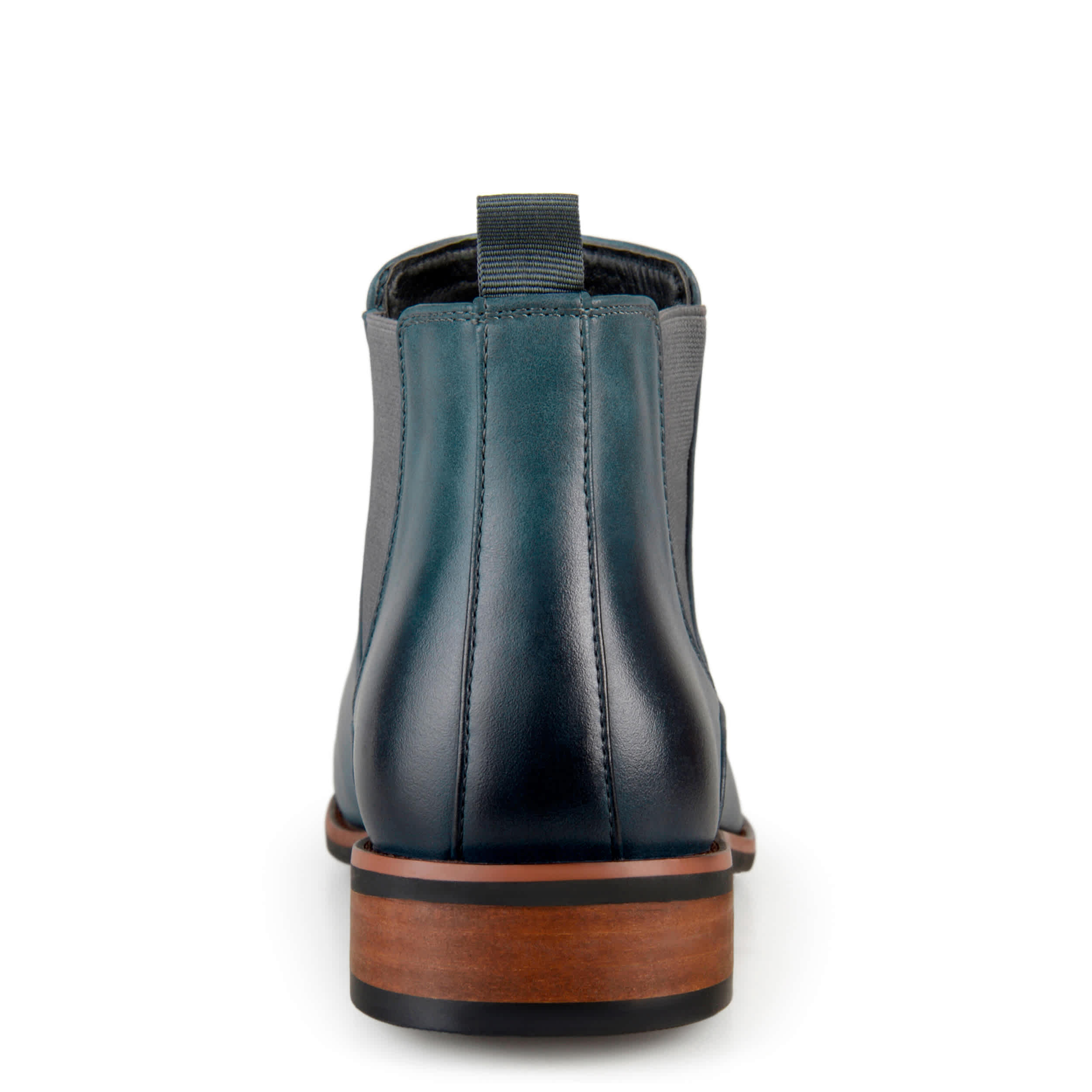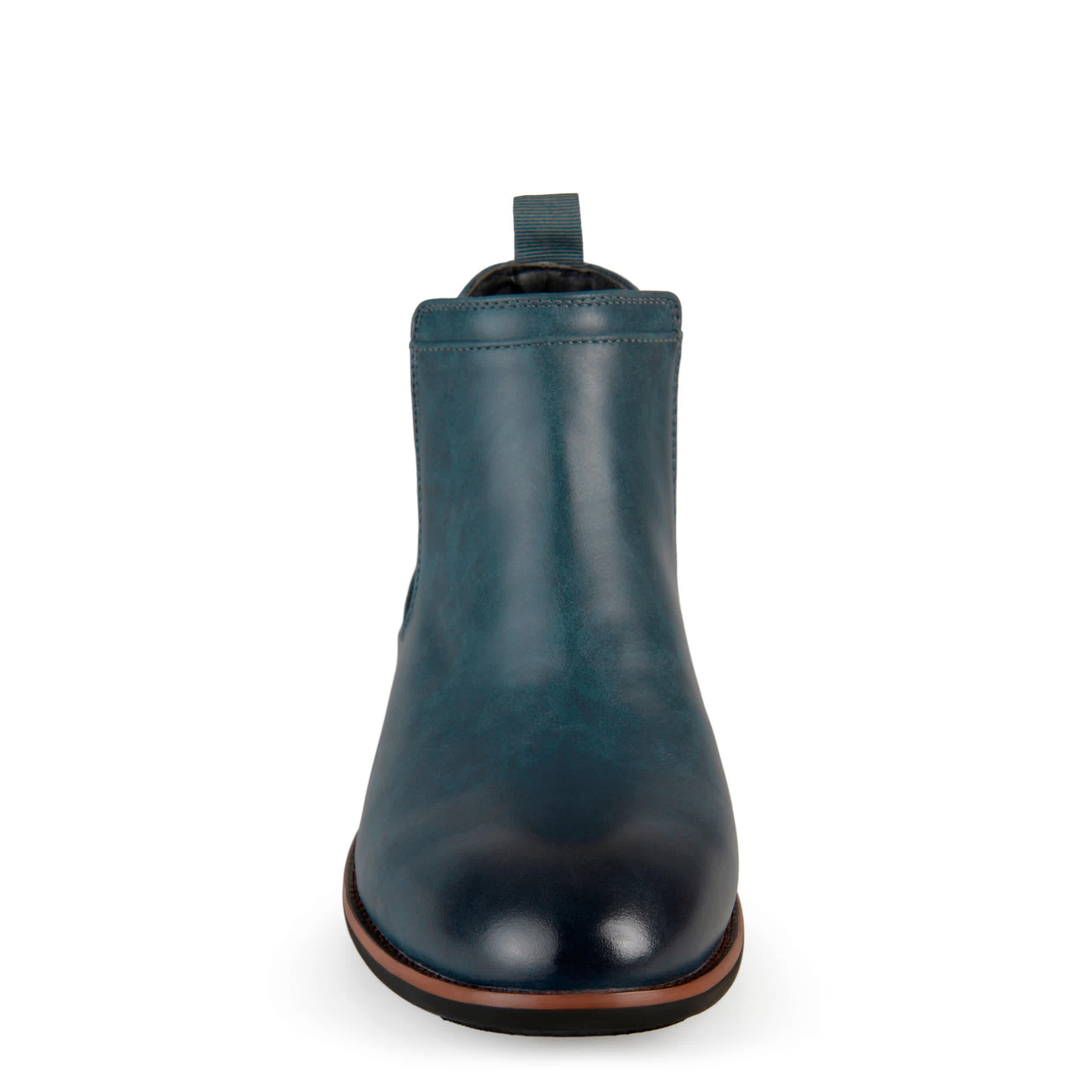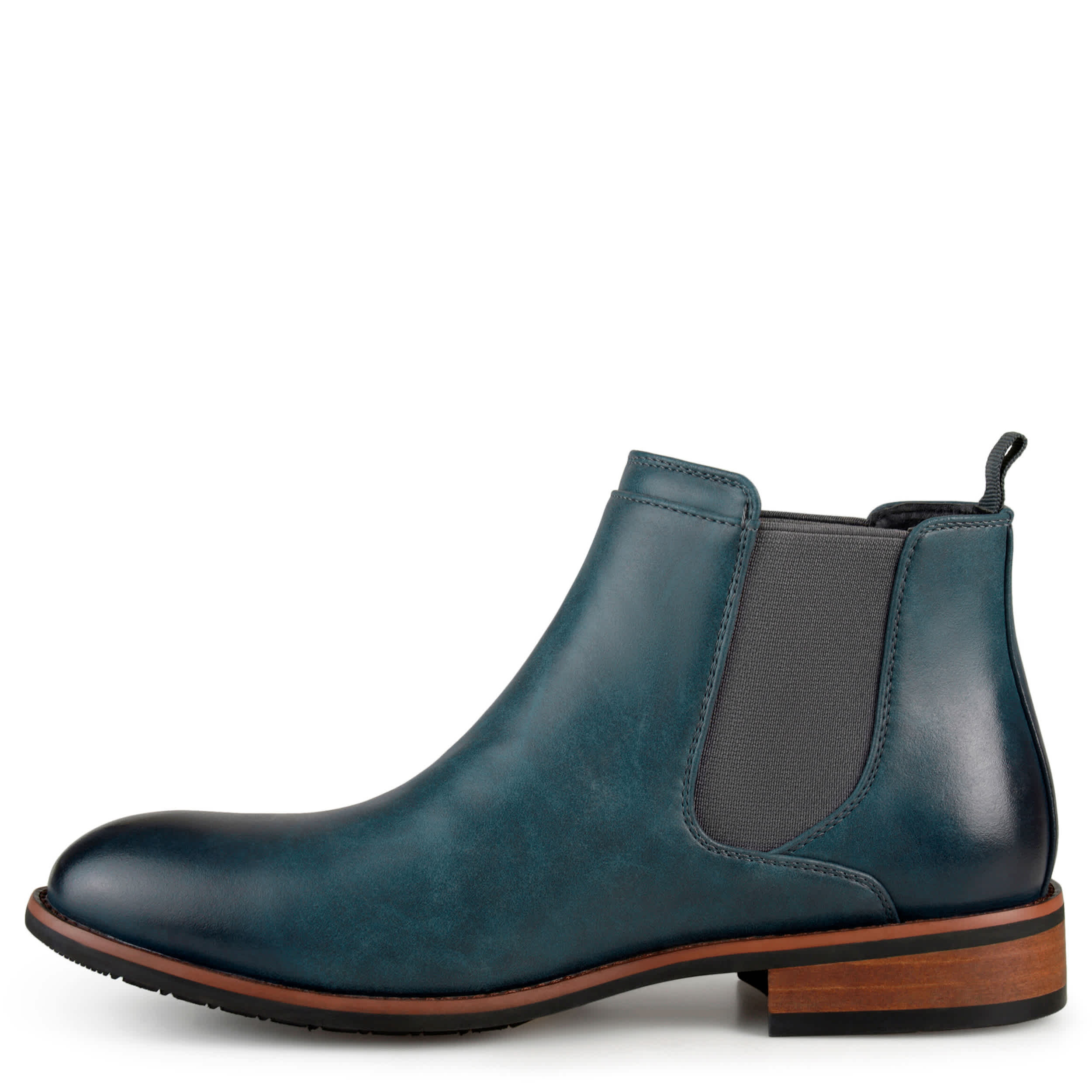 Step out confidently in the Landon Wide Width men's boot by Vance Co. Featuring a vegan leather upper with a burnished round toe, this Chelsea-inspired boot has dual elastic gores to enable an easy pull-on fit. The Tru Comfort Foamâ„¢ footbed supports your feet, while the rubber outsole provides a durable grip.