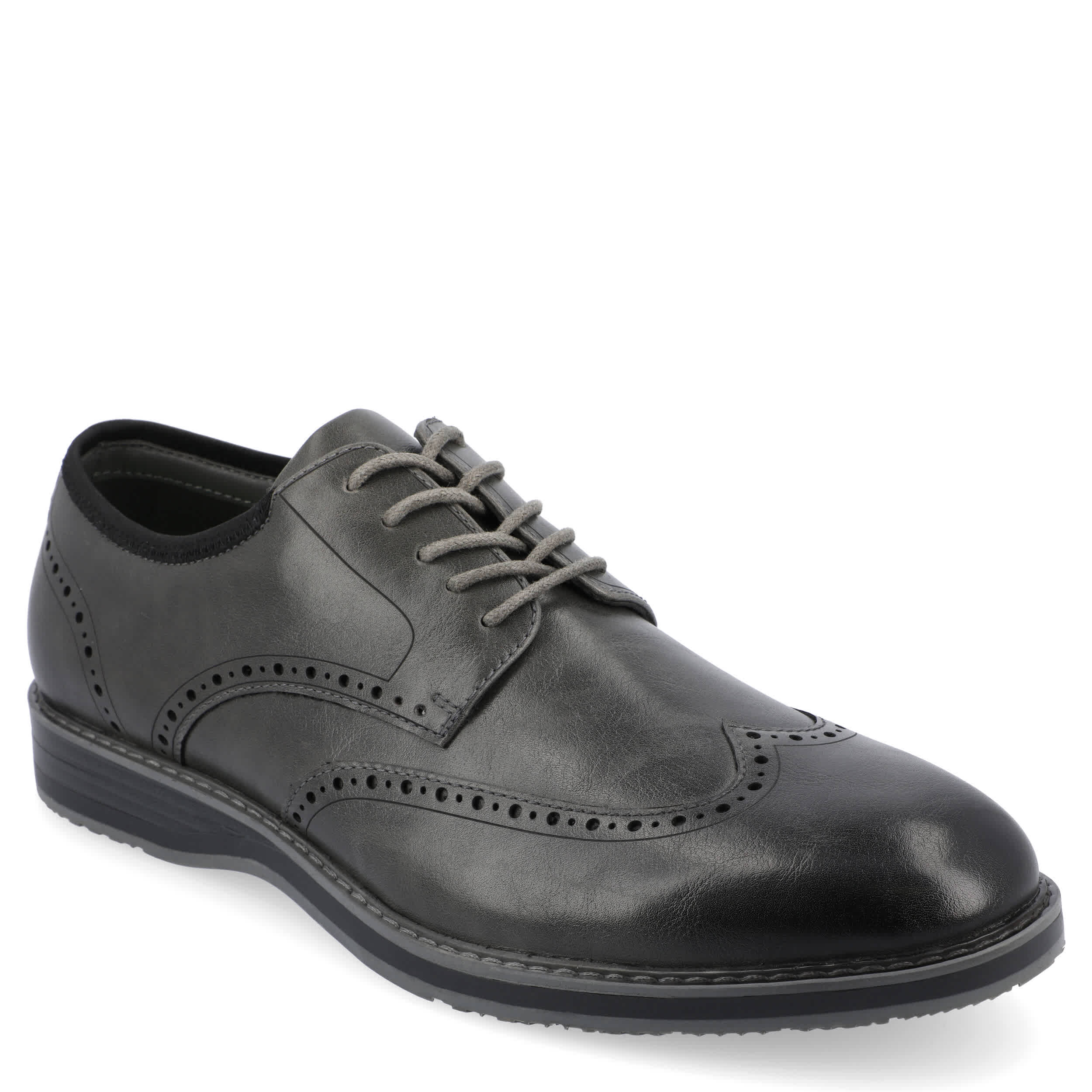 Versatility is the name of the game with the Ozzy men's shoe from Vance Co. Featuring a faux leather upper with a brogue wingtip design and Lycra collar for extra style, wear this derby to the office or on a date. The Tru Comfort insole cushions while the outsole durably supports you whatever the occasion.