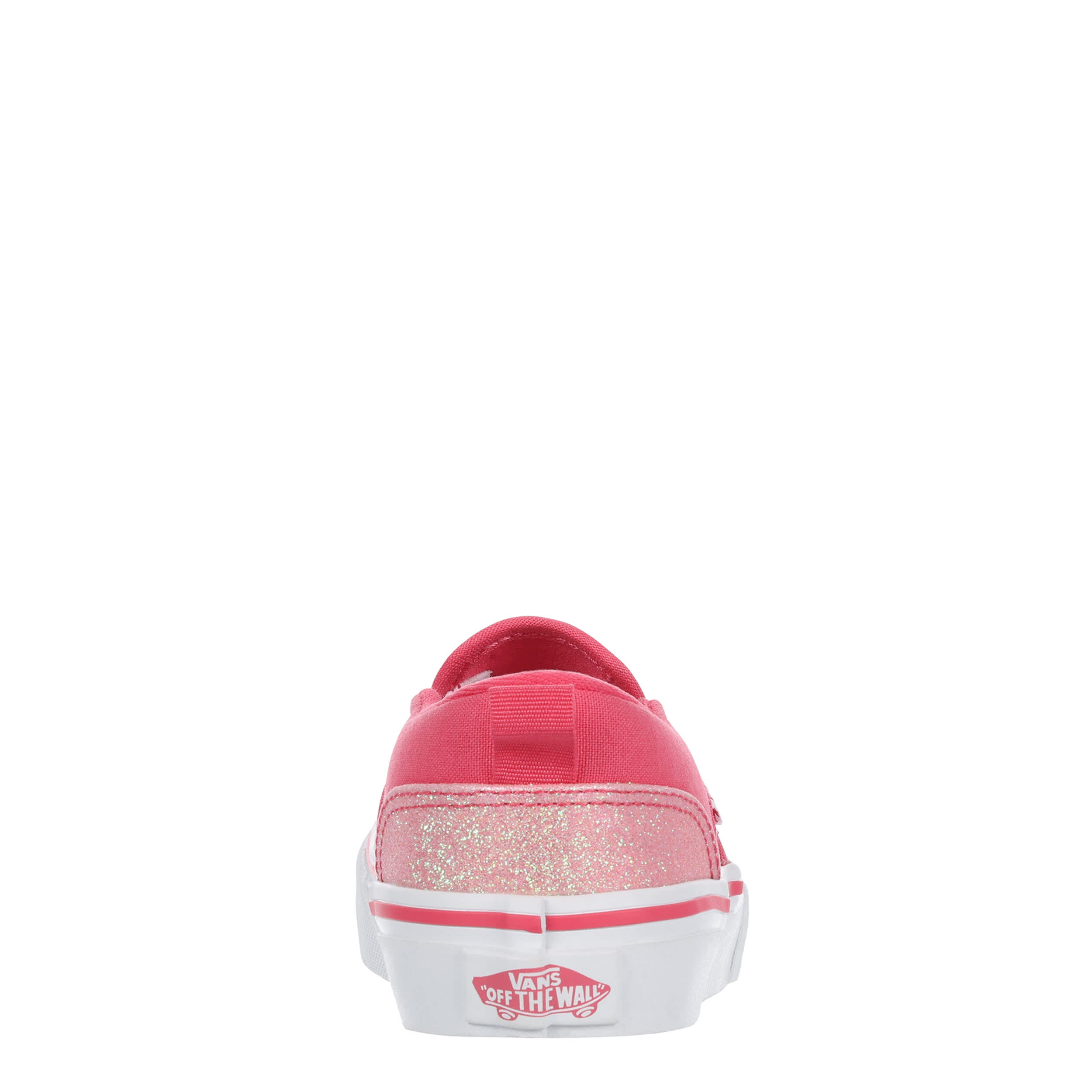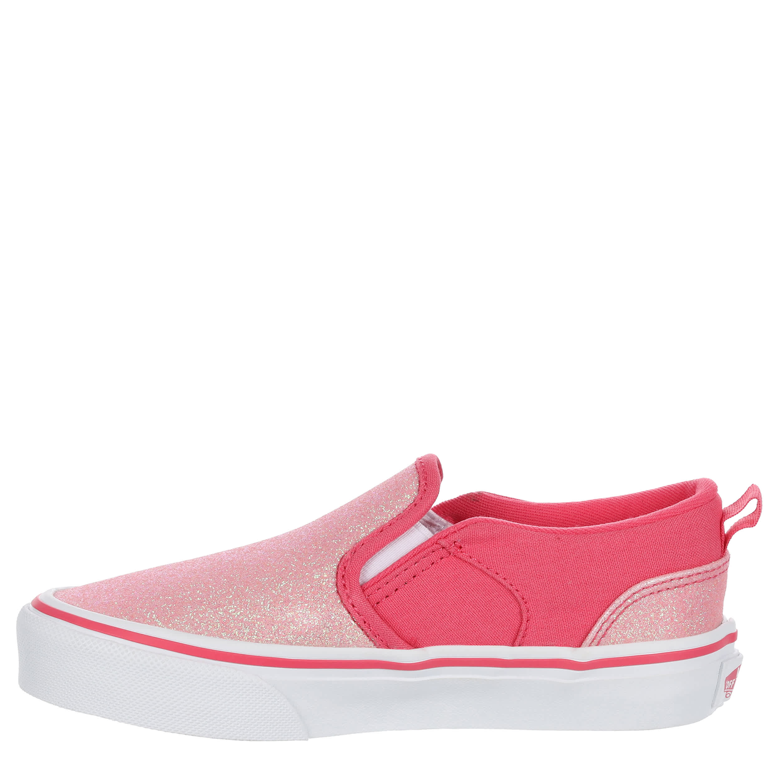 From its streamlined, slip-on design to the cool glittery design, the Asher girls' slip-on sneaker, inspired by the Vans Classic Slip-On, is laid-back and authentically cool. The breathable upper won't weigh her down when she's trying new tricks on the board.