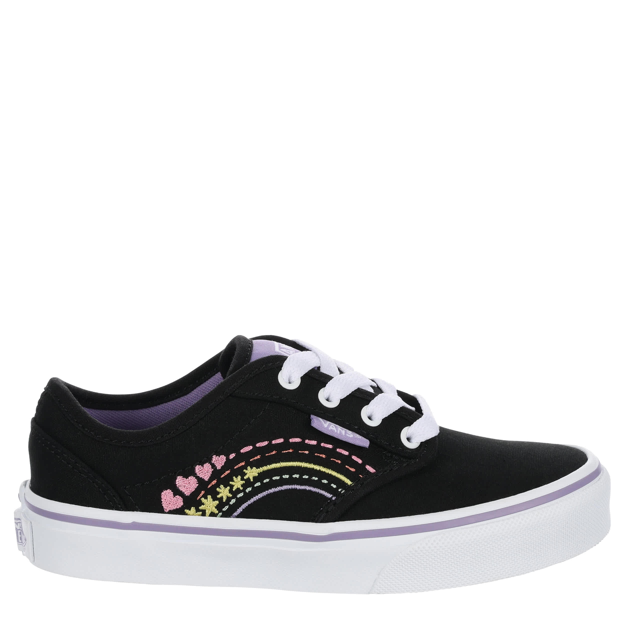 Signal your kid's sense of cool in the Atwood girls' sneaker from Vans. Featuring a canvas upper with a colorful design, this lace-up sneaker looks great with jeans or shorts. The footbed adds comfort while the Original Waffle outsole provides durable traction.