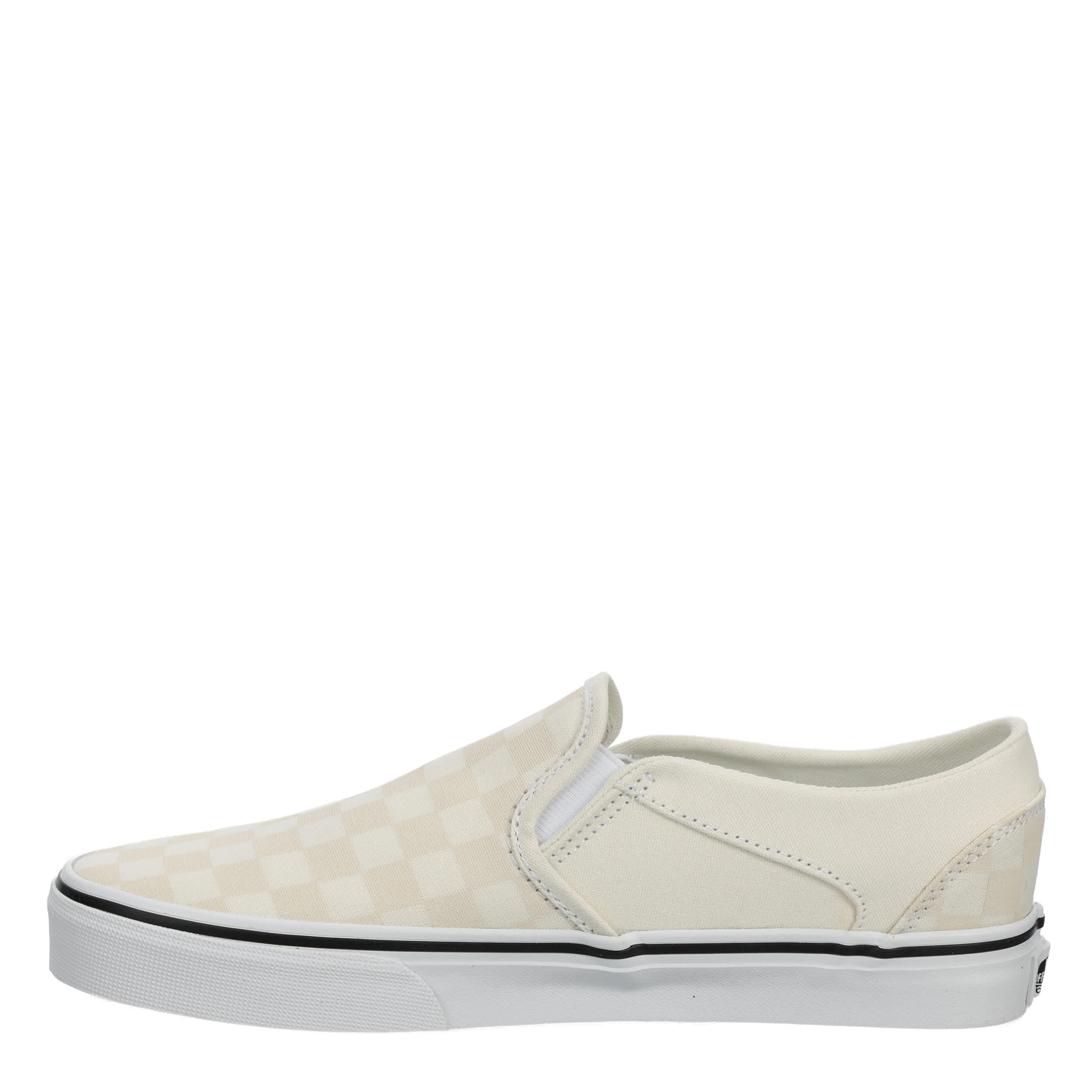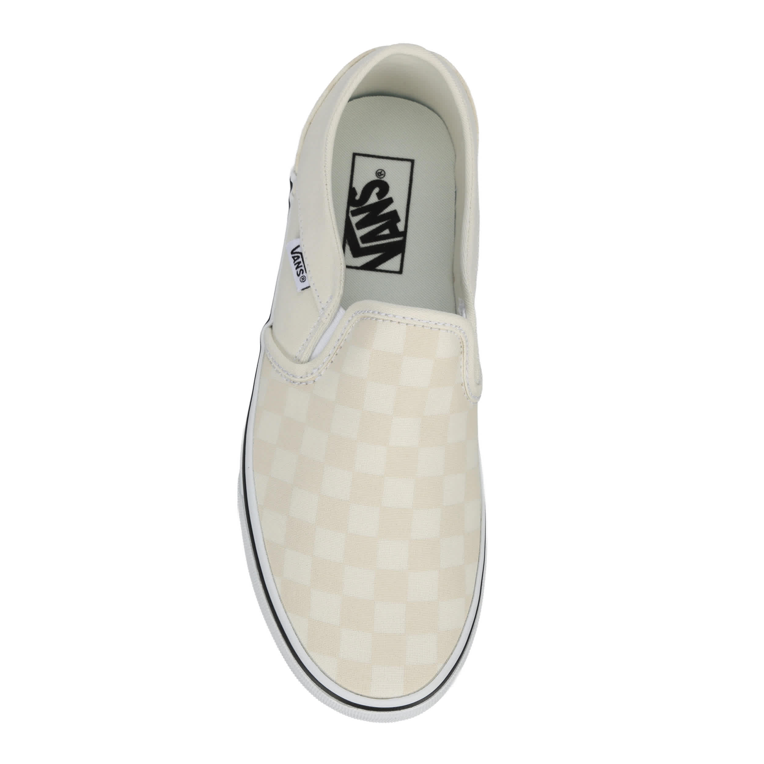 From its streamlined, slip-on design to the checkerboard patterned canvas upper, the Asher women's slip-on sneaker, inspired by the Vans Classic Slip-On sneaker, is laid back and authentically cool.