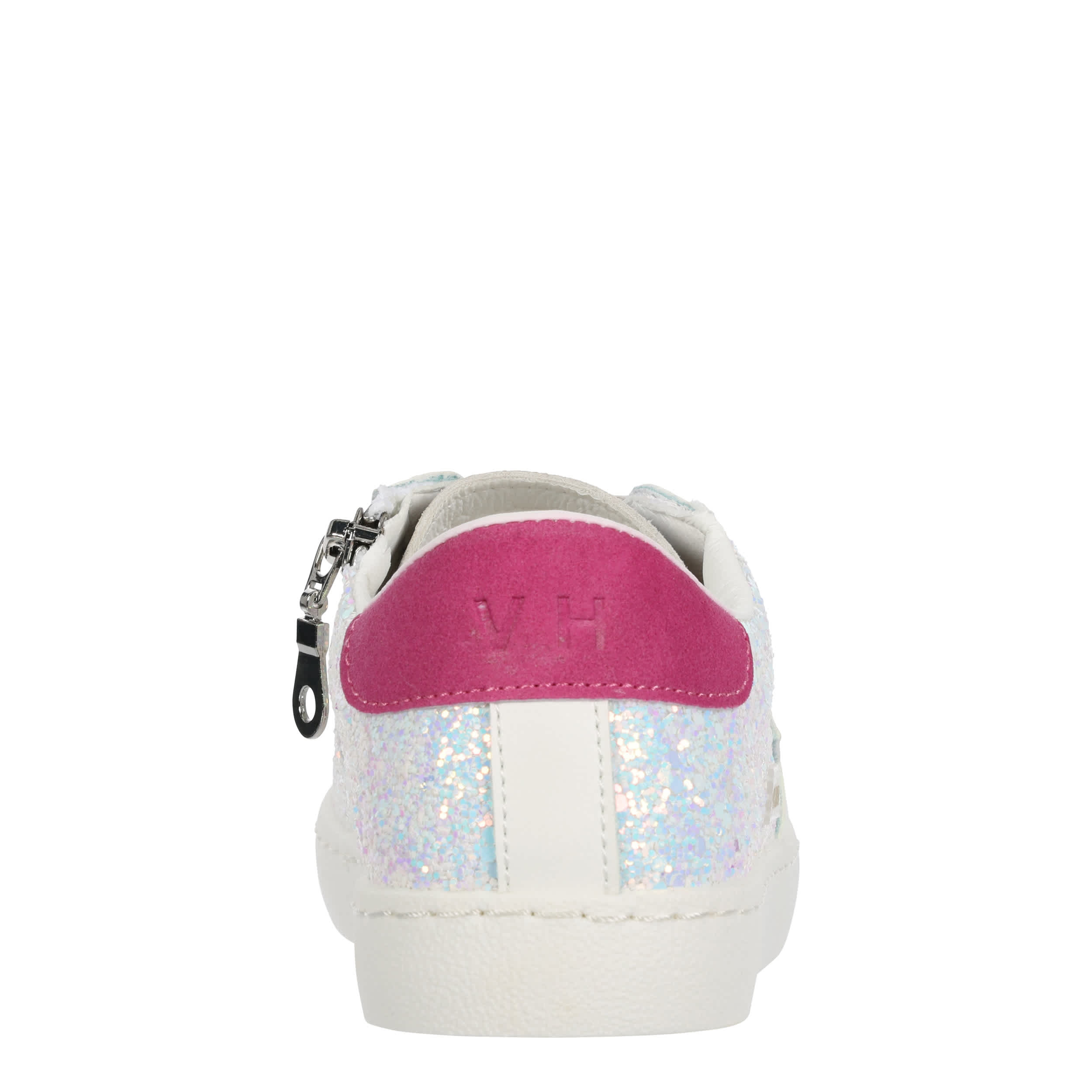 Make sure she sparkles in the Vintage Havana Dora girls' sneaker. Featuring glitter panels on the sides and a contrast heel collar along with colorblocking on the toe & tongue for extra style, this low-profile shoe is a star. Explore in cushioned comfort with a textured outsole that adds a bit of bounce to her steps.