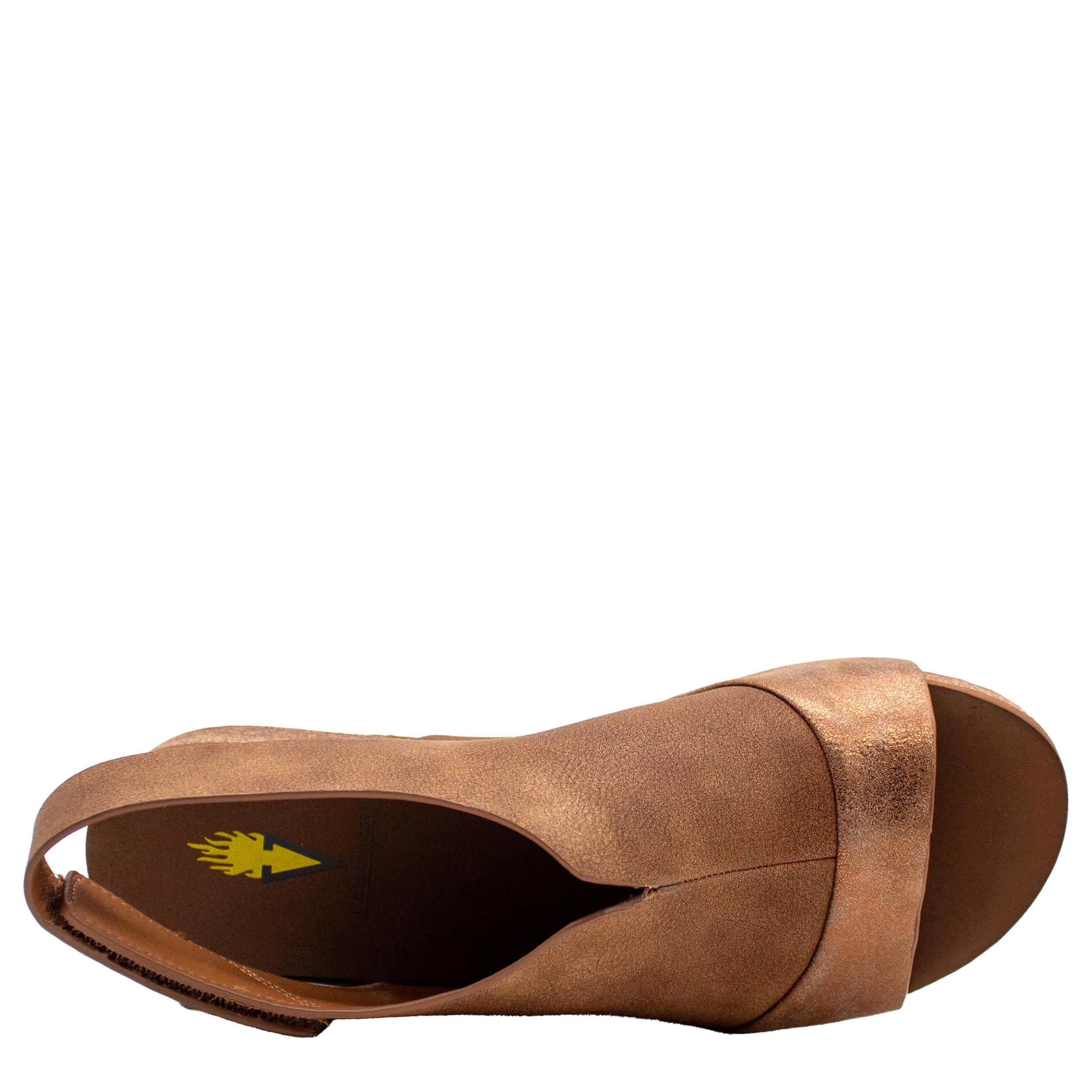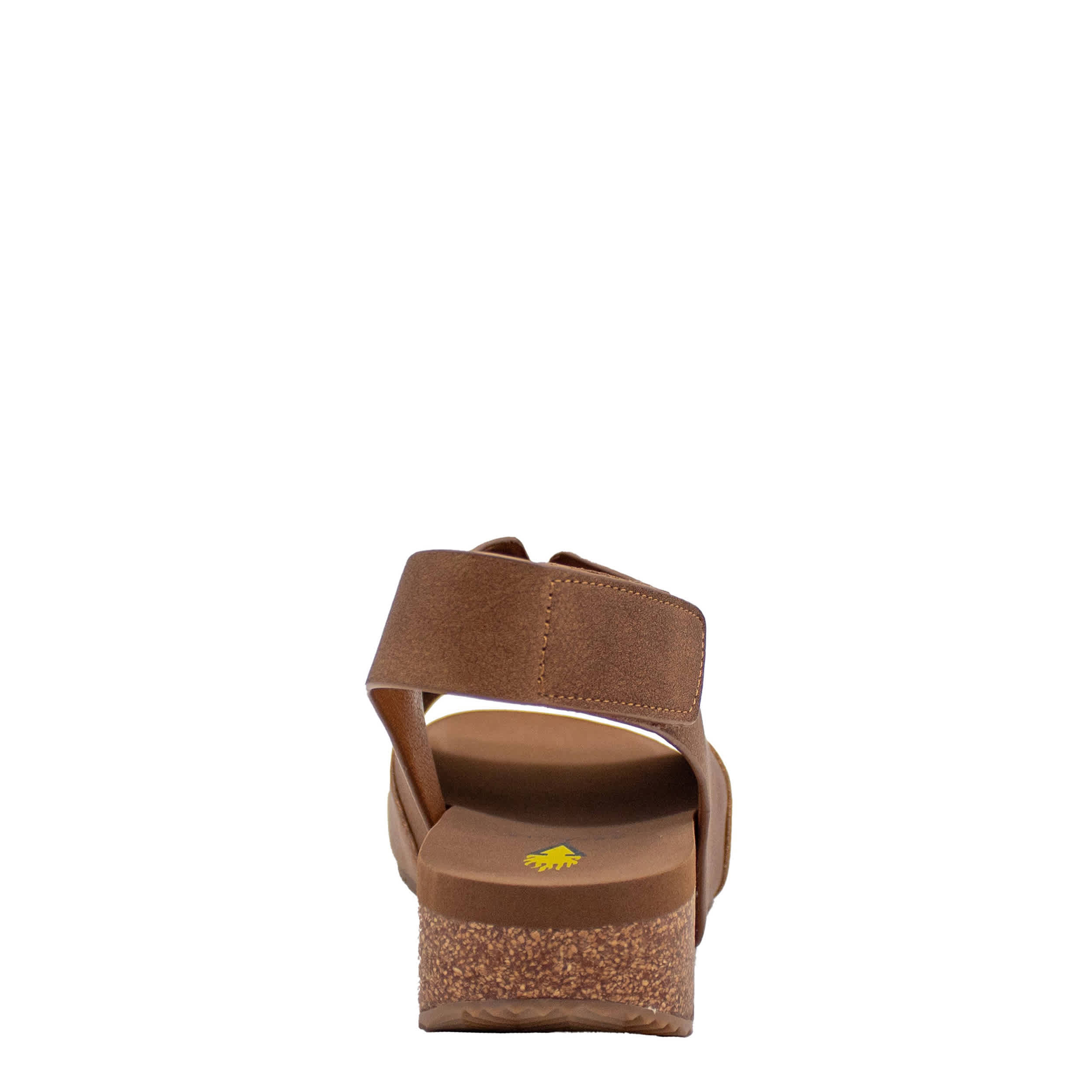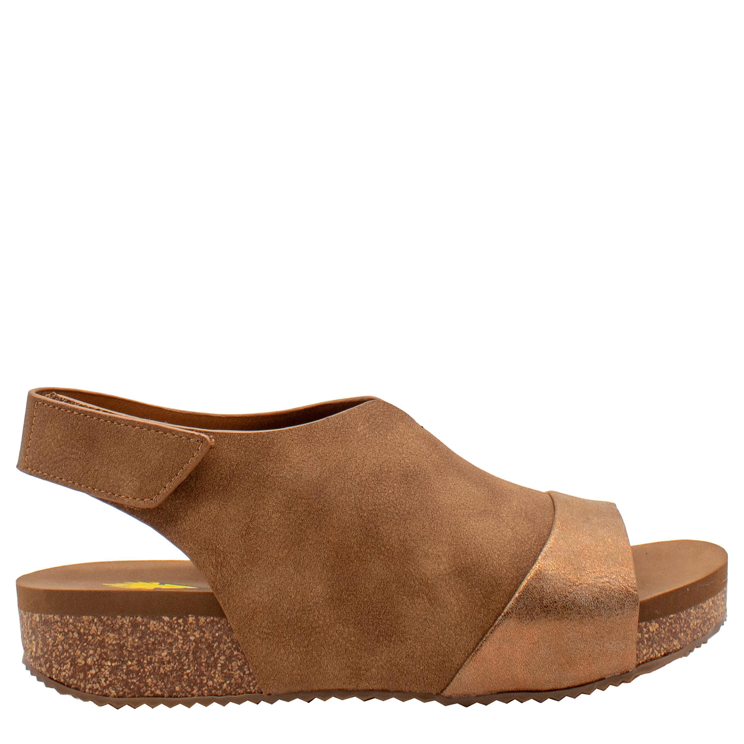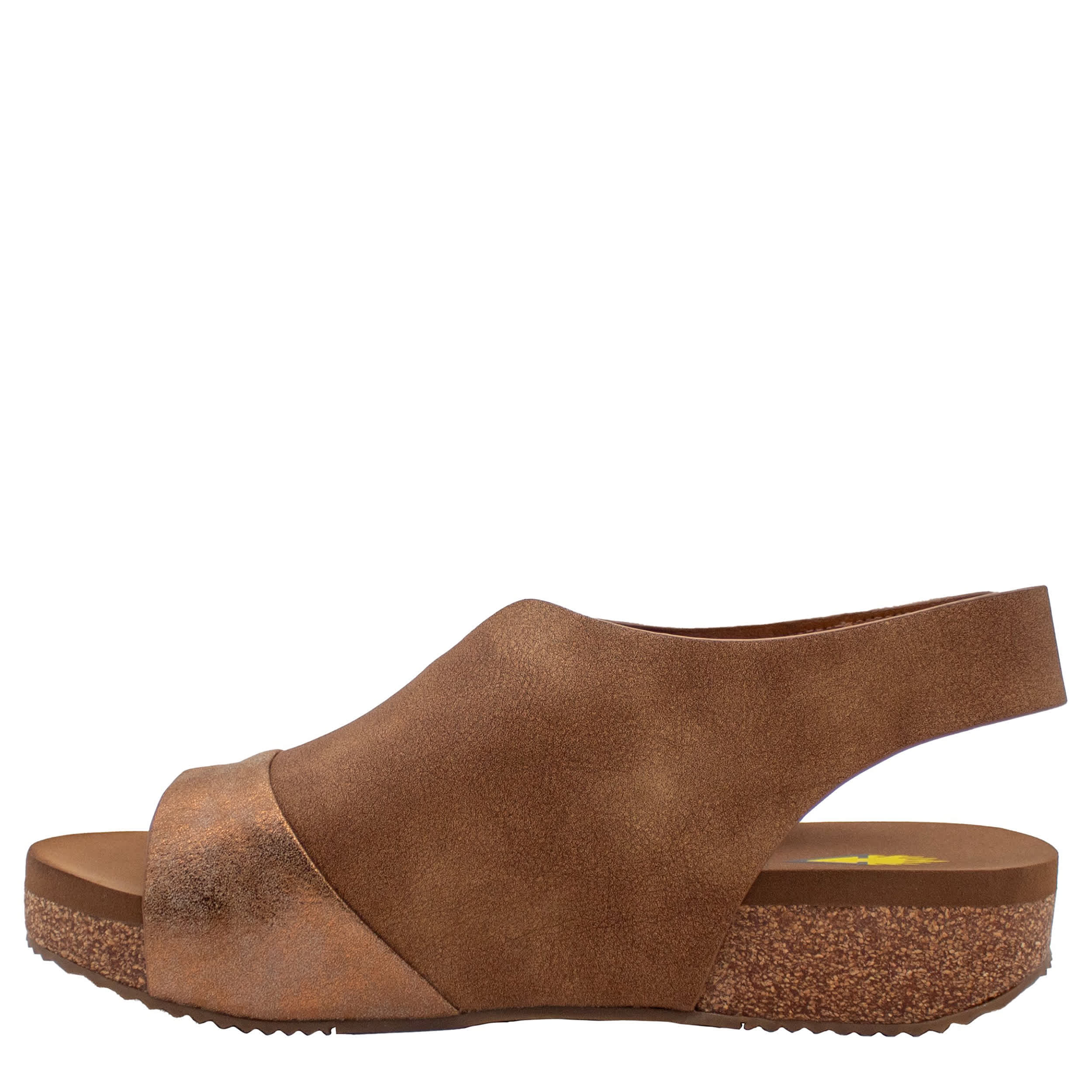 Leave town or explore a side you're not familiar with in the Volatile Aurelia sandal. Featuring a two-tone faux leather upper with hook-and-loop slingback strap for a secure fit, this shoe has a peep toe and rubber traction outsole to keep you comfortable. The insole cushions your steps, while the platform gives stable lift.