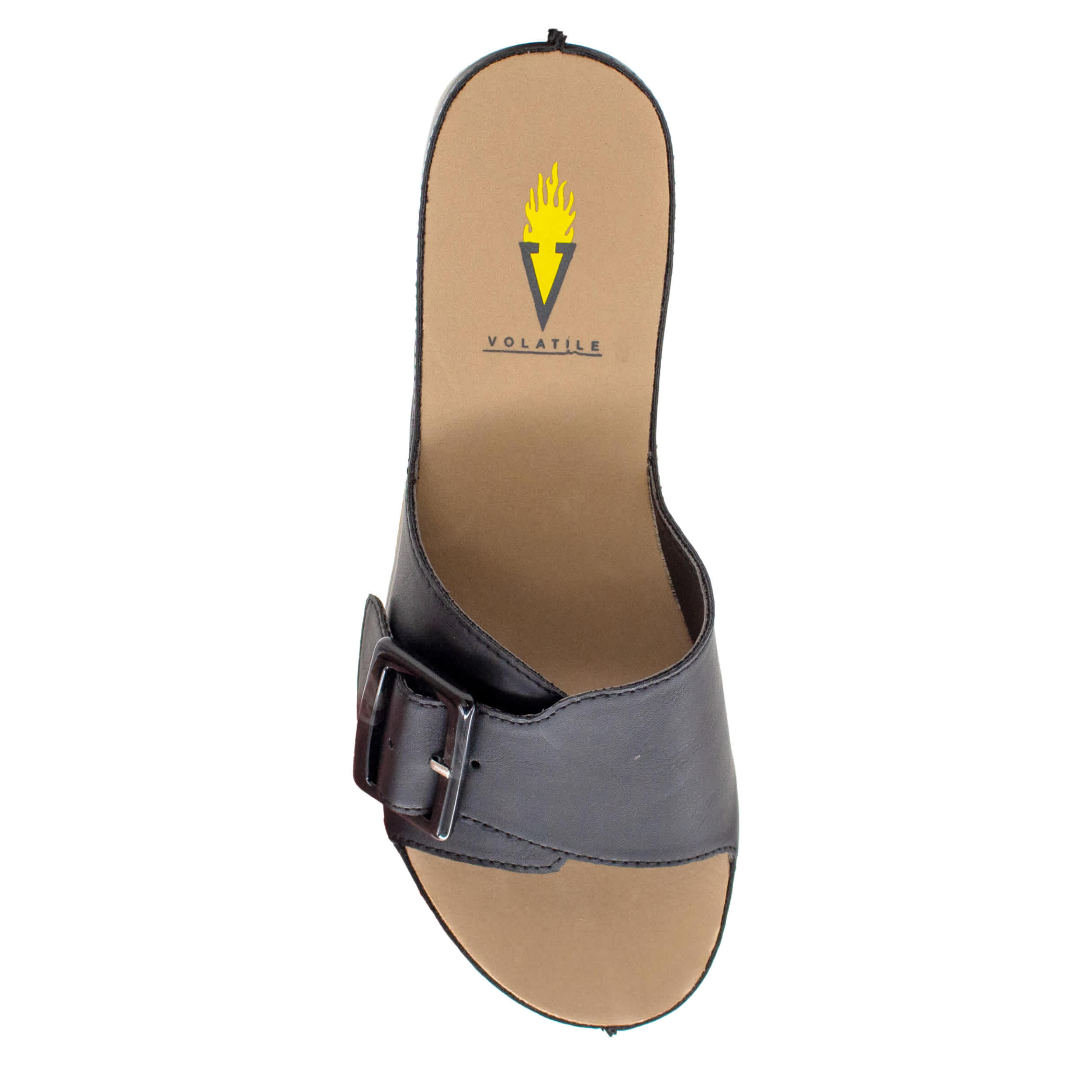 Try something distinctive with the Volatile Bertha slide sandal. Featuring a faux leather upper with a tortoiseshell buckle for extra style, this wedge is made for laidback days and a cozy sundress. The signature insole and rubber outsole offer long-lasting comfort for casual walks.
