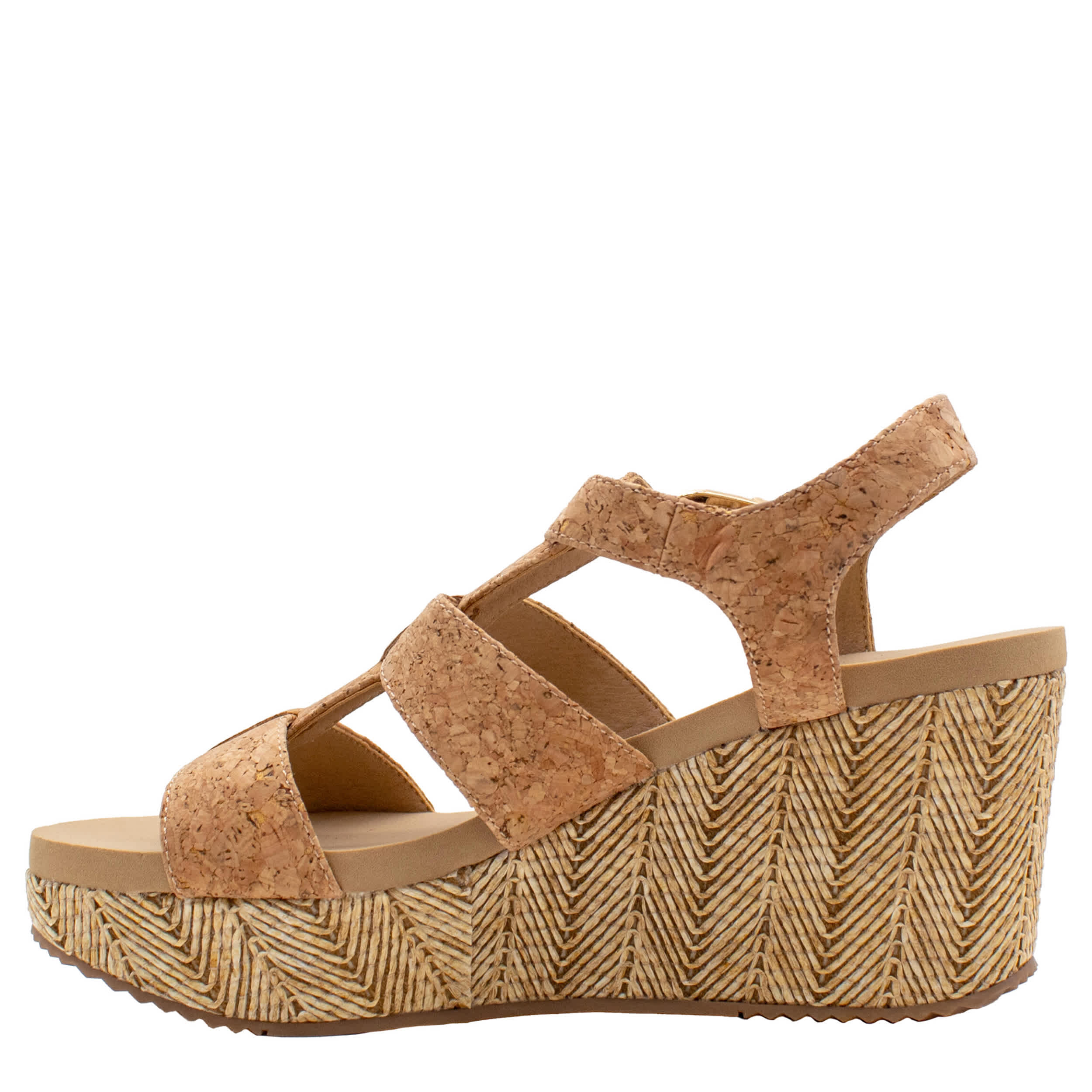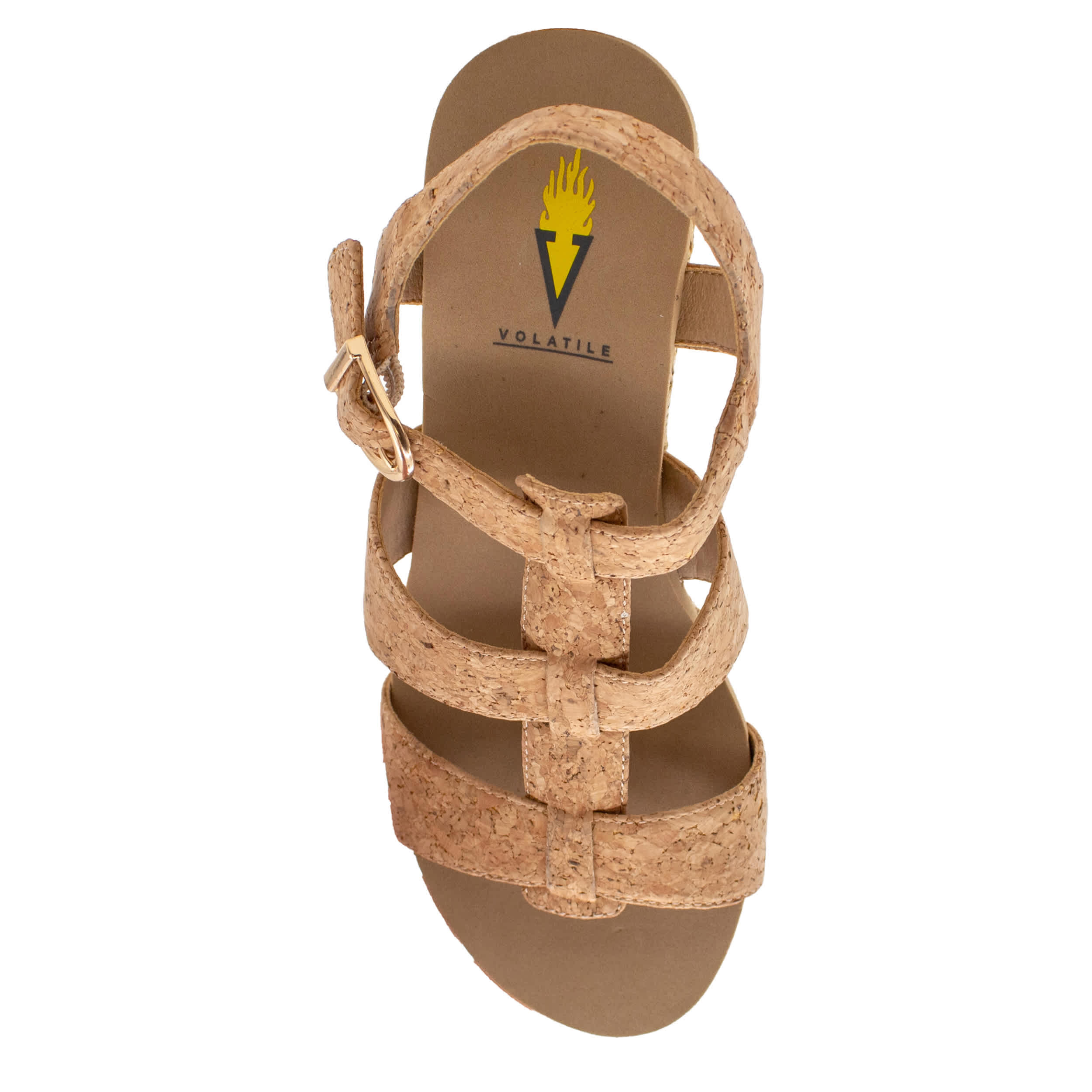 Get the natural, effortless look this summer with the Volatile Crimini platform sandal. With a cork upper, this shoe offers all-day comfort with its signature EVA insole and ensures endless style with its versatile silhouette. The rubber outsole supports every step, while the cork wedge heel gives a trendy yet stable lift.