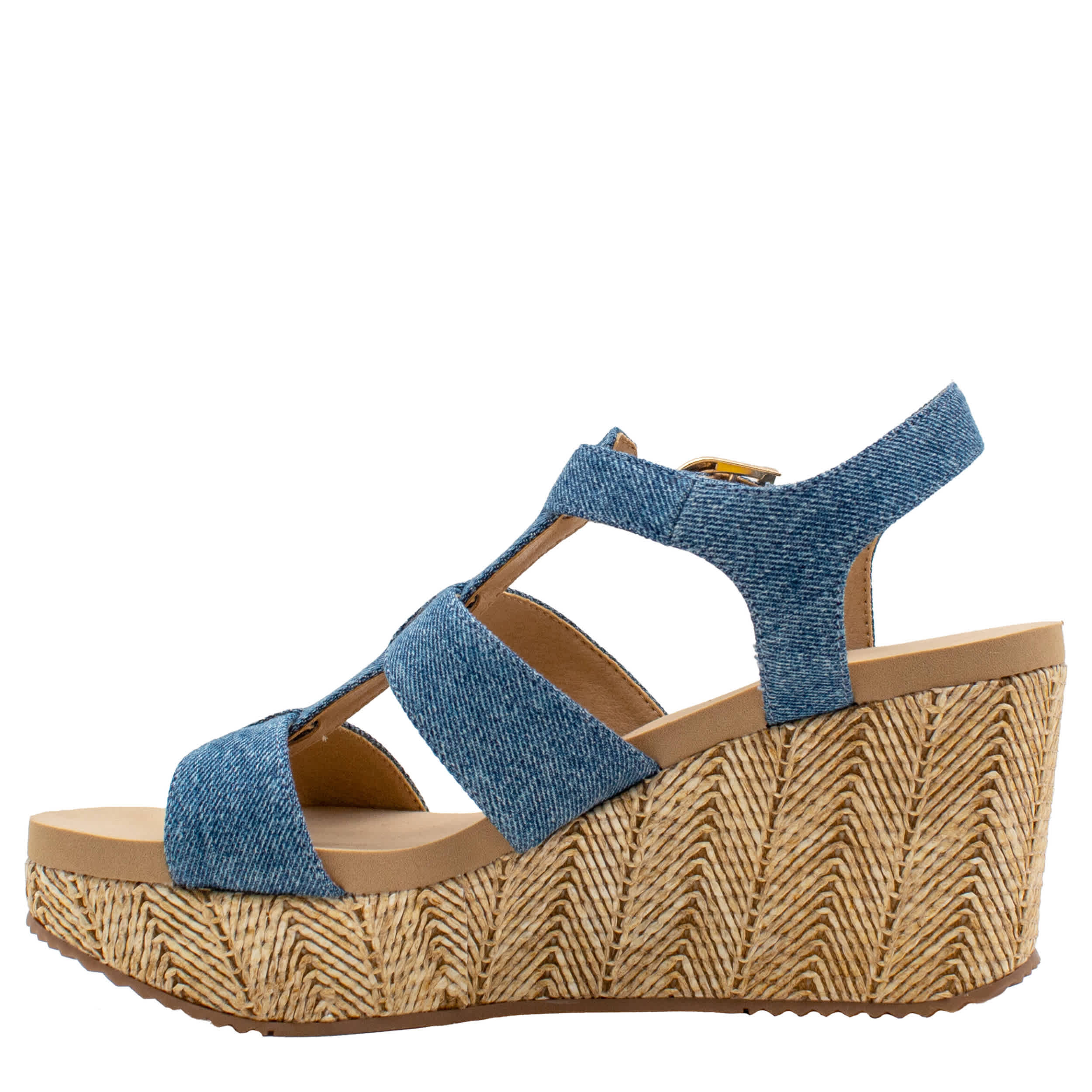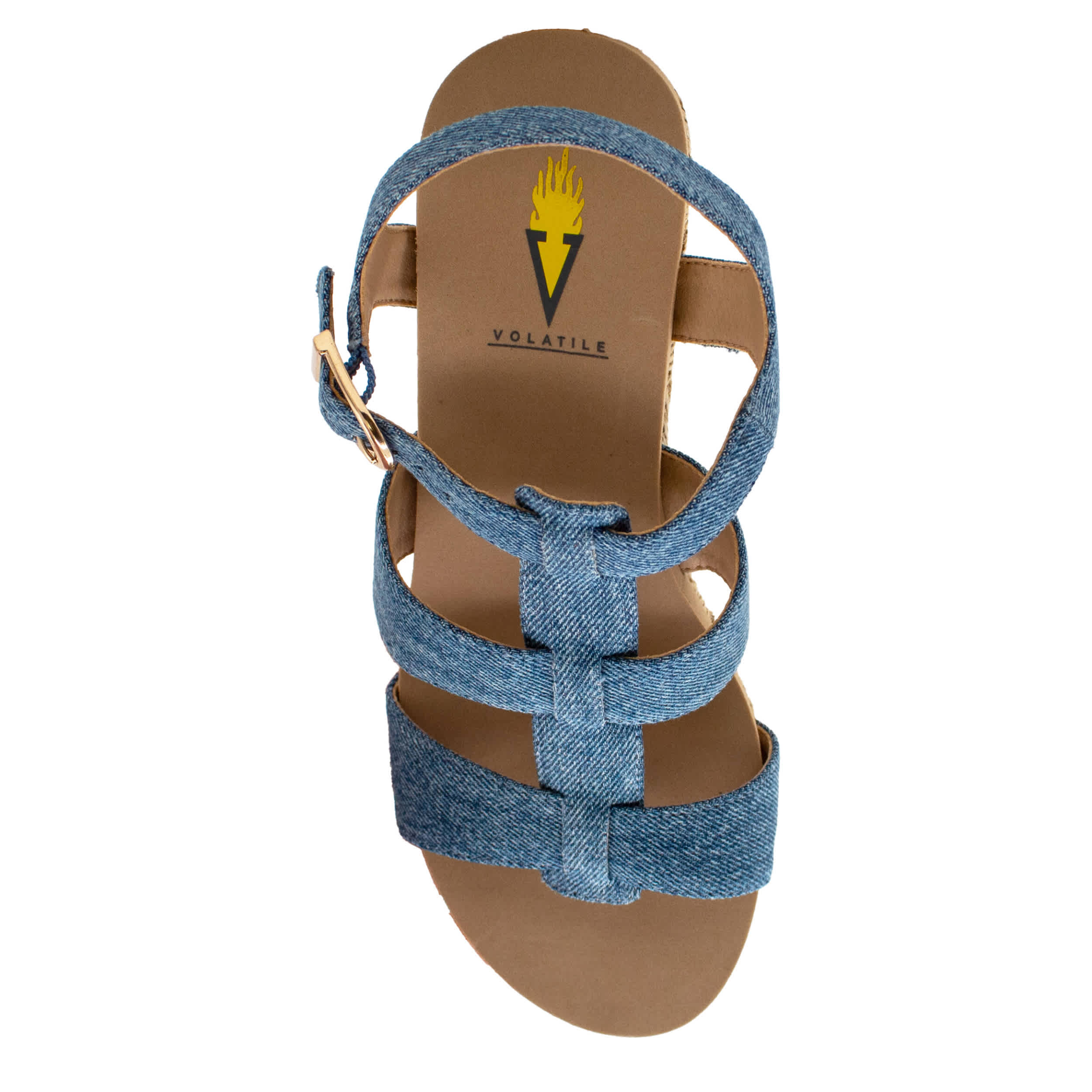 Get the natural, effortless look this summer with the Volatile Crimini platform sandal. With a denim upper, this shoe offers all-day comfort with its signature EVA insole and ensures endless style with its versatile silhouette. The rubber outsole supports every step, while the cork wedge heel gives a trendy yet stable lift.