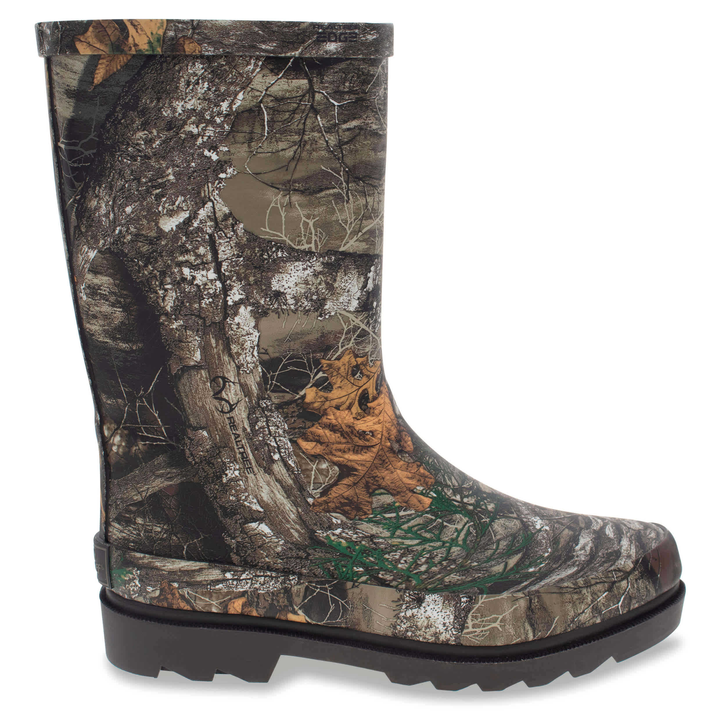 He'll love that his boots look just like Daddy's in the Western Chief Youth Realtree Mid infant boys' rain boot. With a waterproof rubber upper, made from natural rubber, featuring a Realtree camo print, this pull-on boot keeps little toes dry. The textile lining soothes his foot for a content time enjoying his time outdoors.