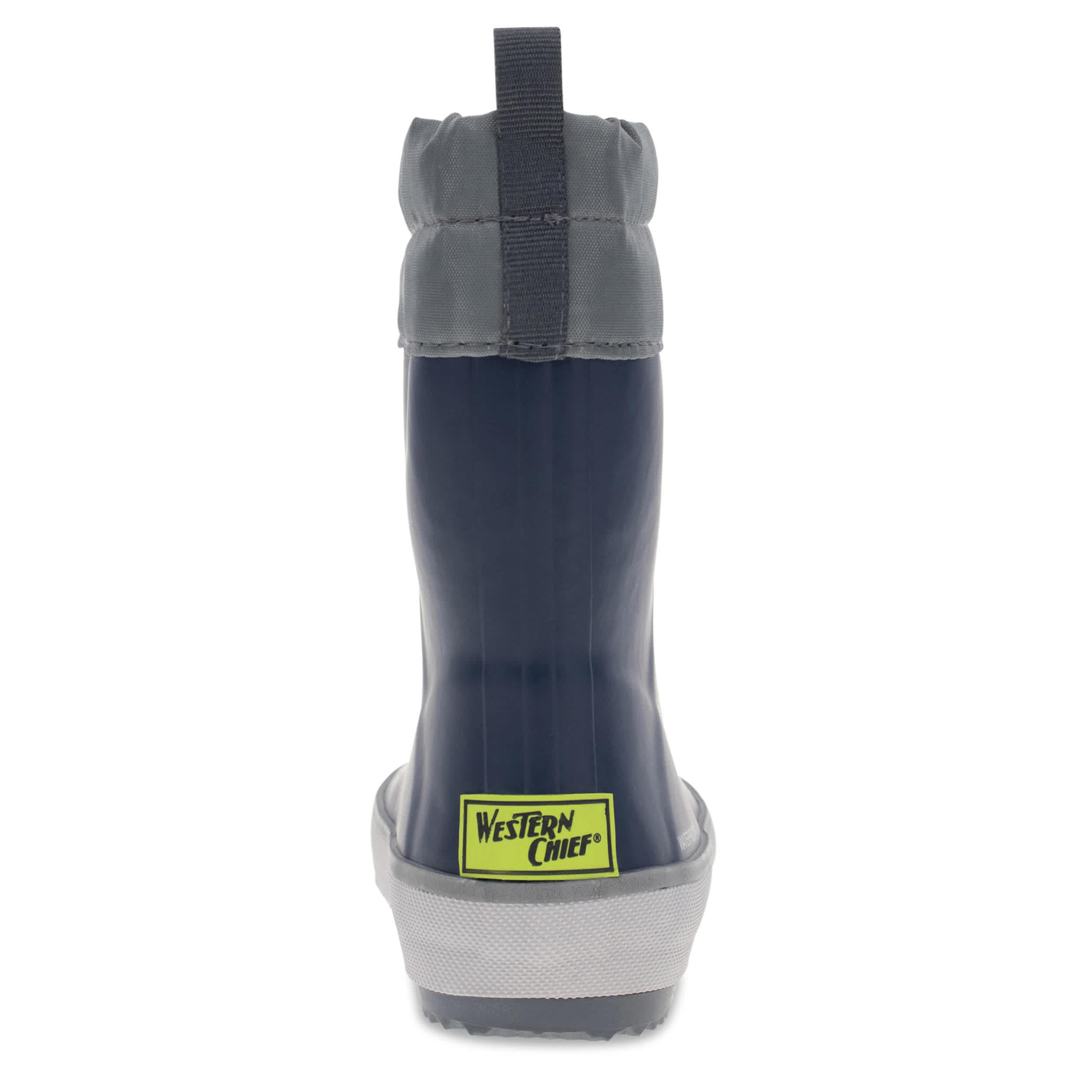 Make sure he stays safe in the Western Chief Element boys' rain boot. With a waterproof natural rubber upper featuring a nylon collar with drawcord closure, this pull-on rain boot also uses reflective components for extra protection. The fleece lining adds warmth, while the durable outsole offers traction for a content time enjoying the weather.